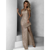 Zlaté dlouhé flitrované šaty WILBERTO přes jedno rameno