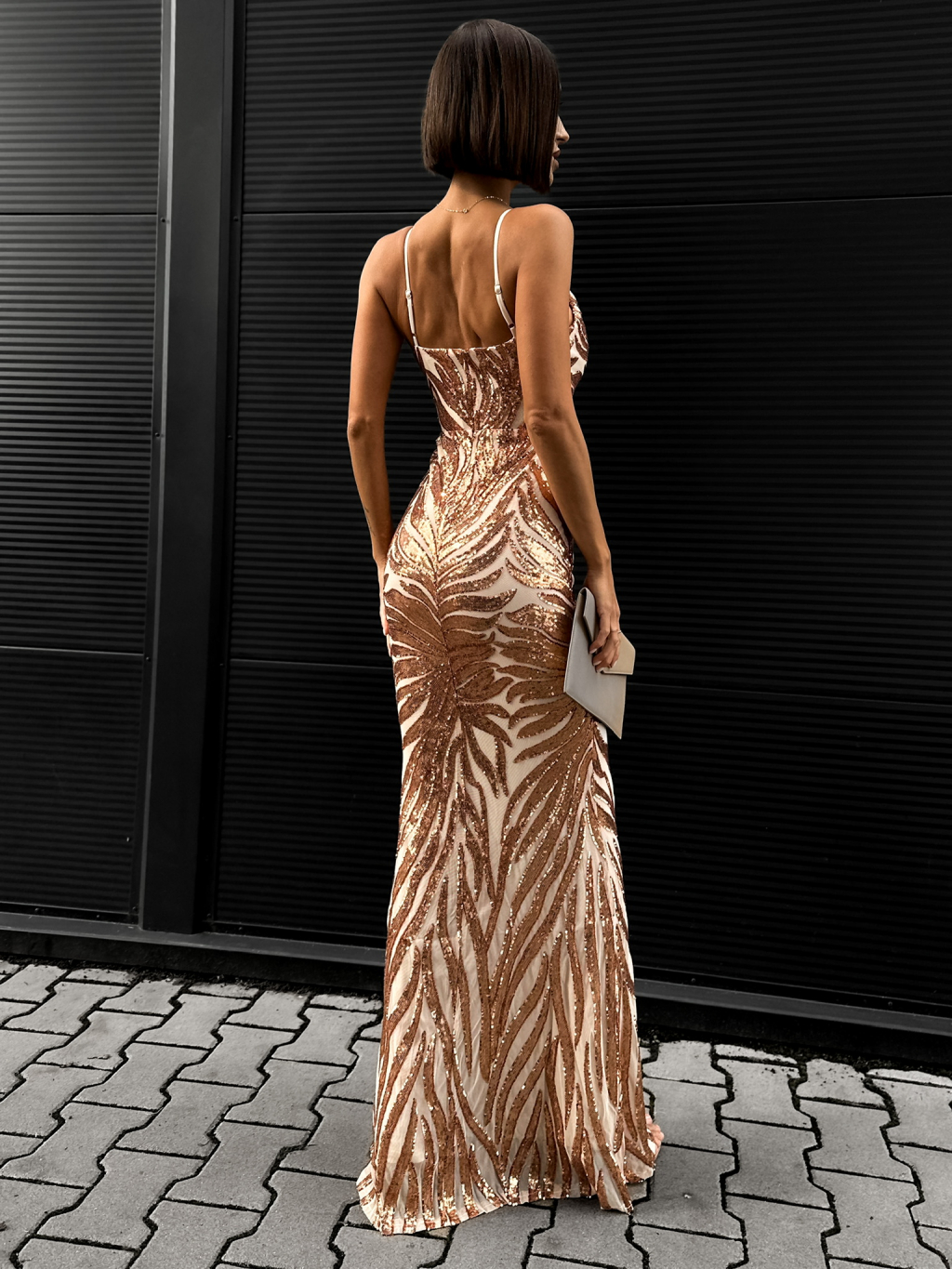 Zlaté dlouhé společenské šaty ETOLY s flitry