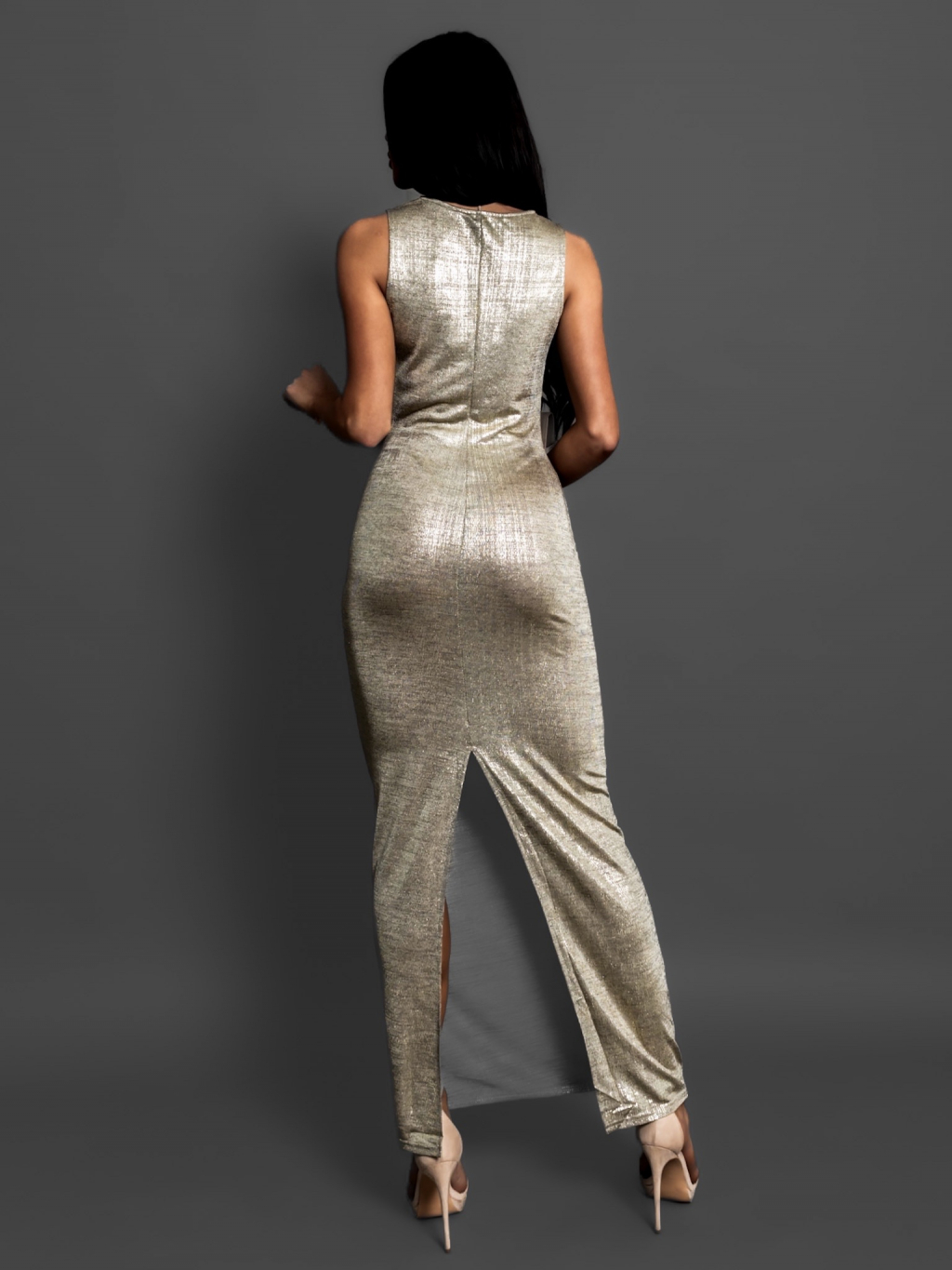 Zlaté elegantní šaty PHOBUS s výstřihem