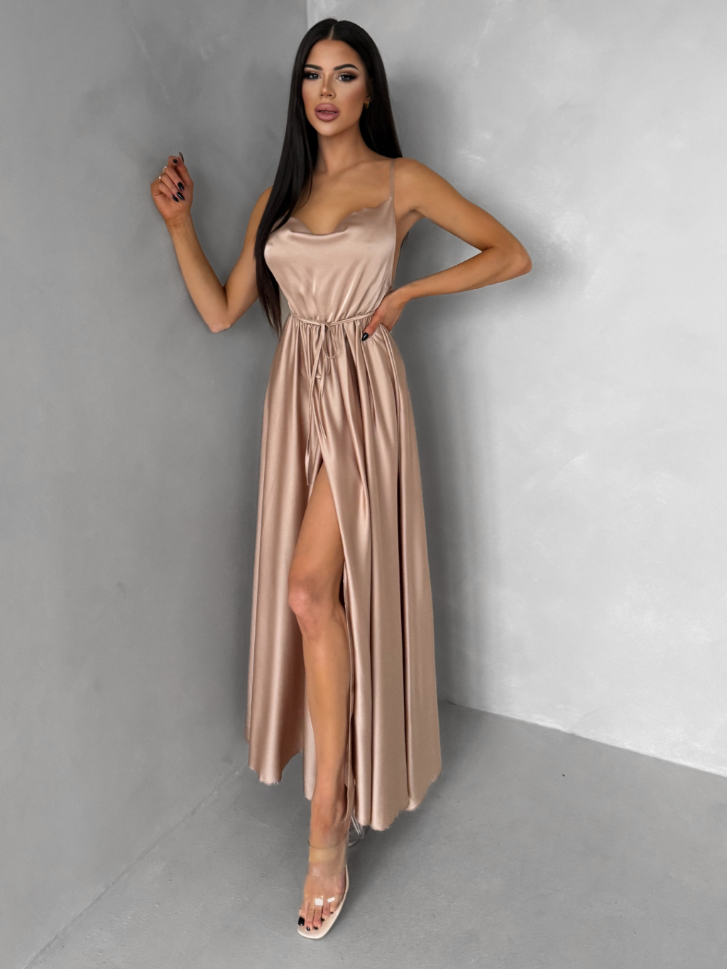 Zlaté saténové elegantní šaty YASMINE s rozparkem