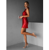 Červené krátké flitrované šaty FJODOR s odhalenými zády