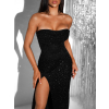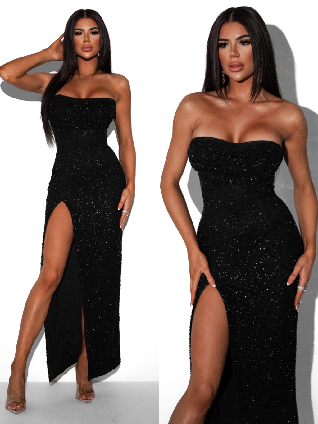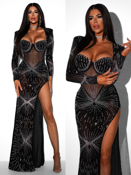 Černé luxusní večerní třpytivé šaty SEDOK s rozparkem