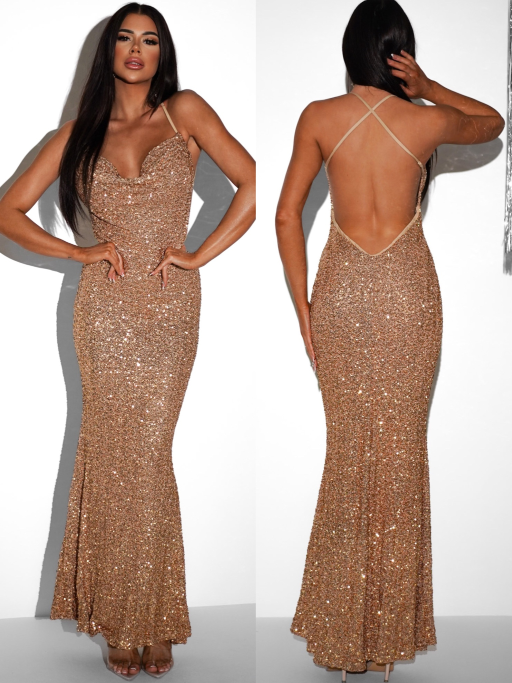 Zlaté flitrové večerní šaty MAVEN s holými zády