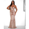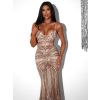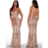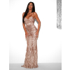 Zlaté plesové dlouhé třpytivé šaty LAJSA s výstřihem