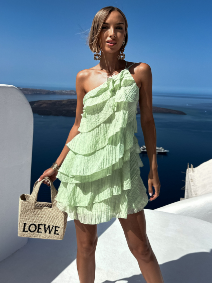 Světle zelené boho krátké šaty RANGE s výstřihem