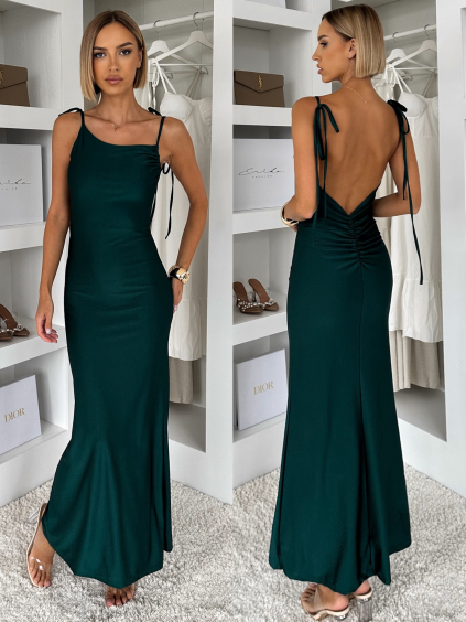 Smaragdové dlouhé saténové šaty UNUTA s odhalenými zády