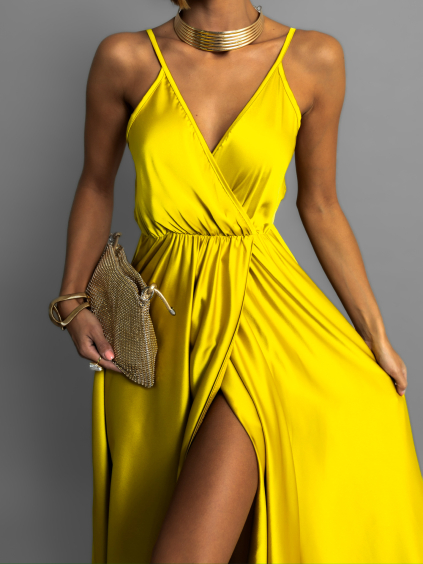 Žluté dlouhé lesklé šaty PERFECTLY