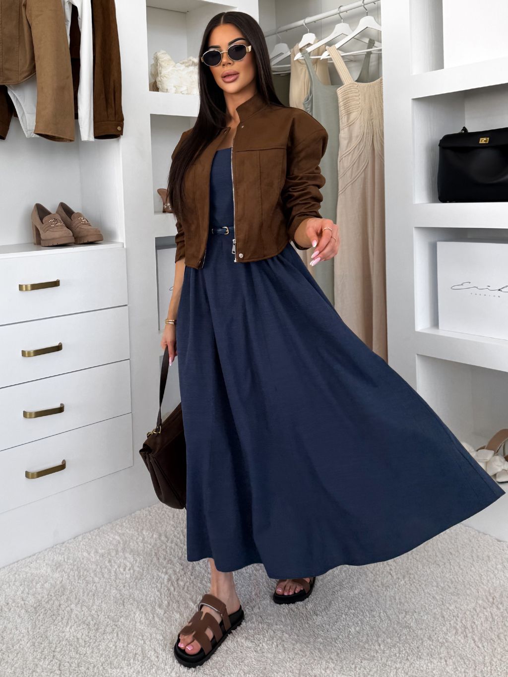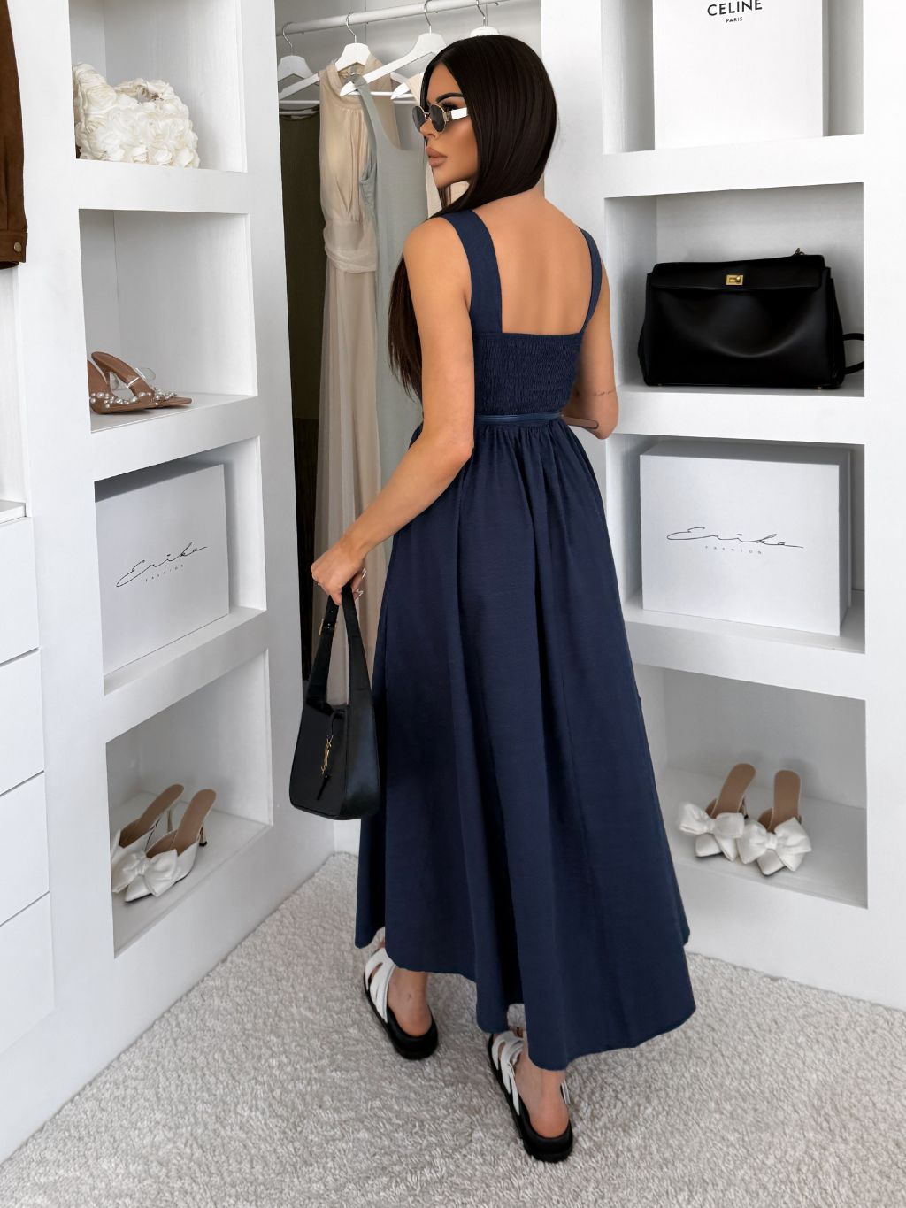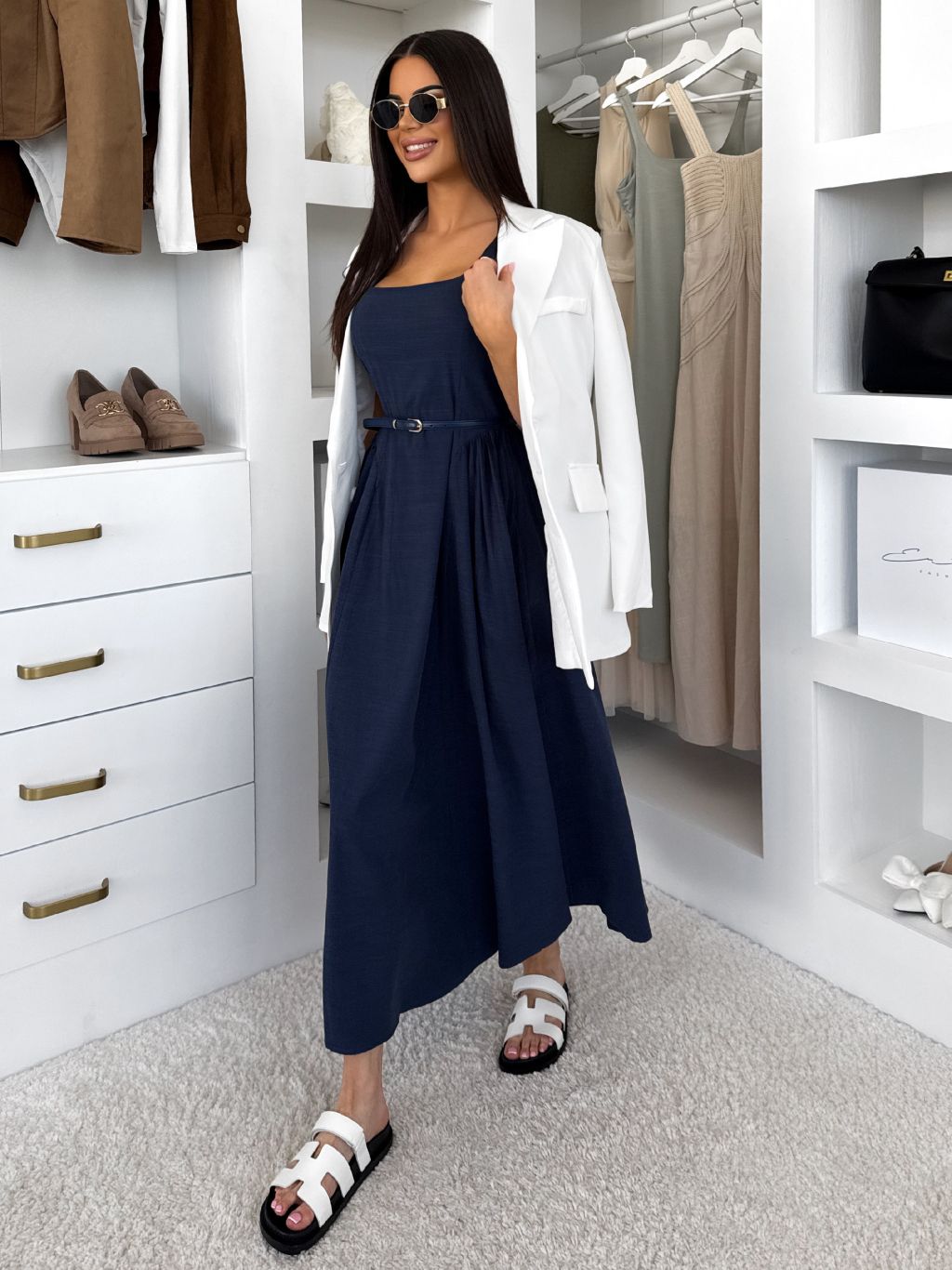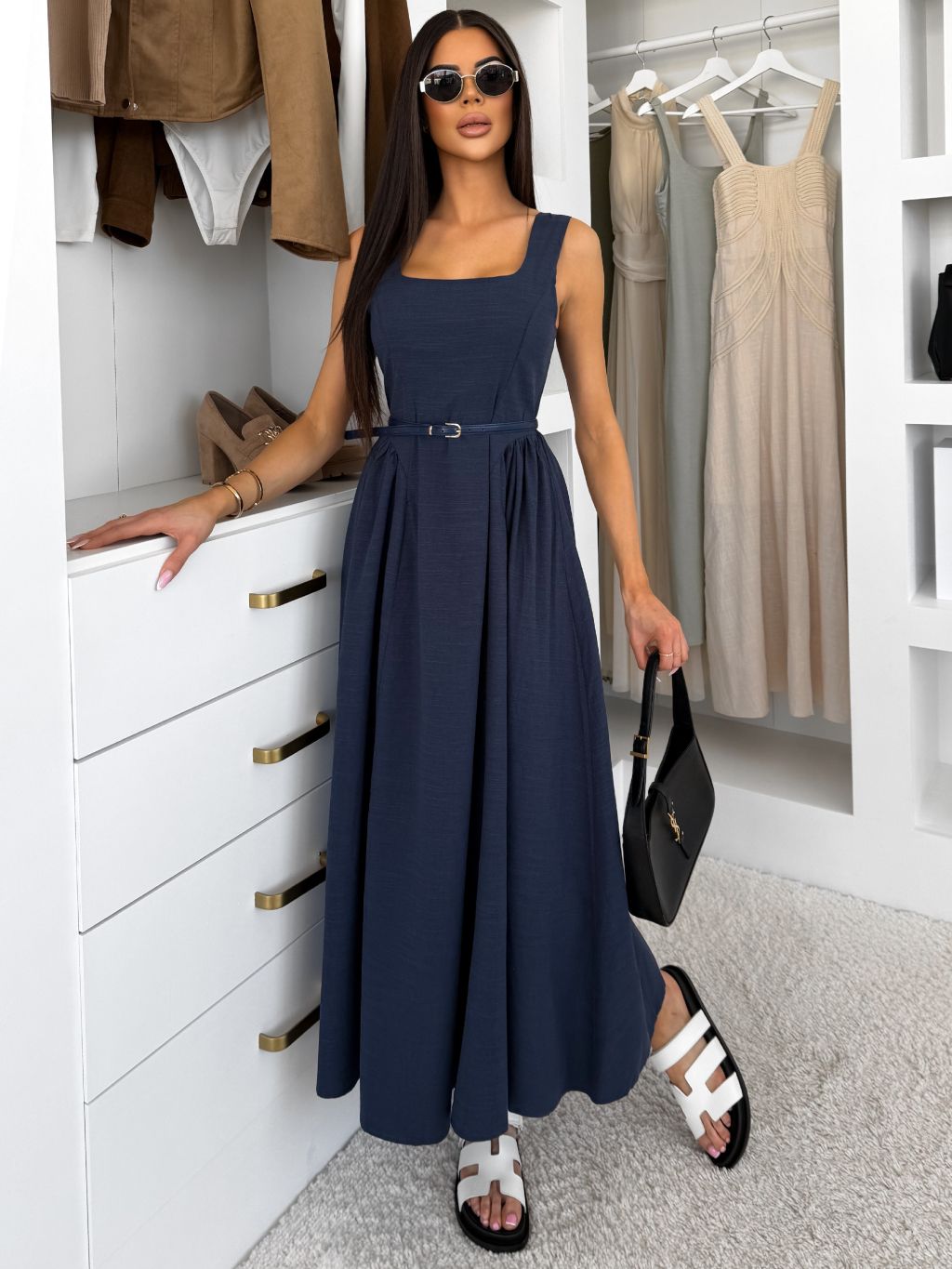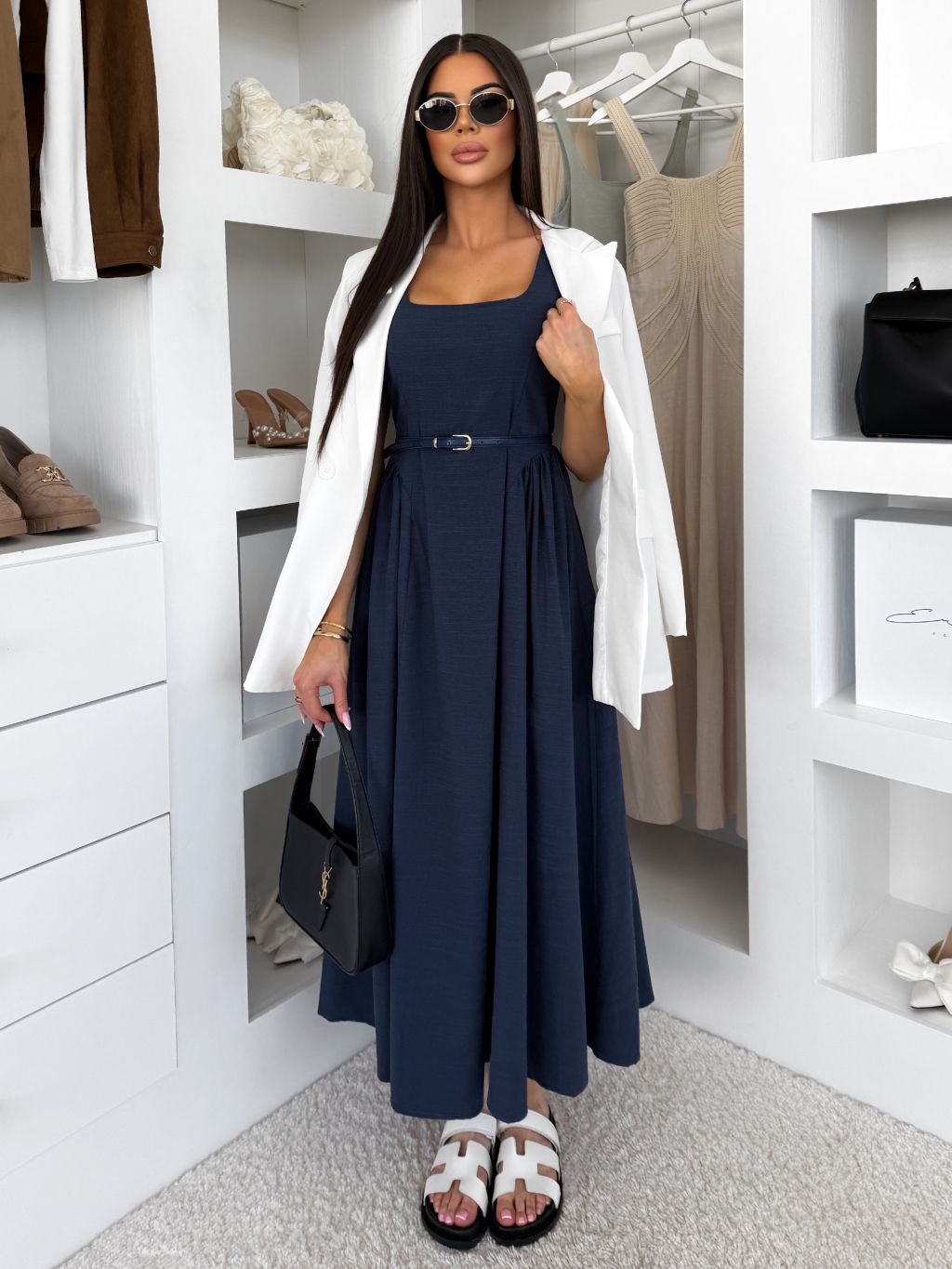 Modré dlouhé pouzdrové letní šaty SENTALIA s páskem