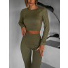 Khaki sportovní elastický komplet KEYA