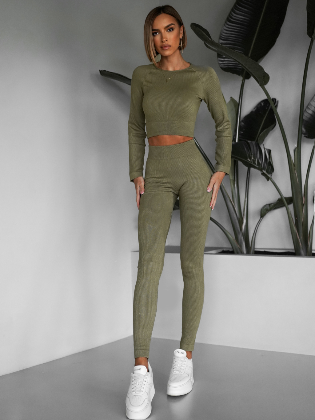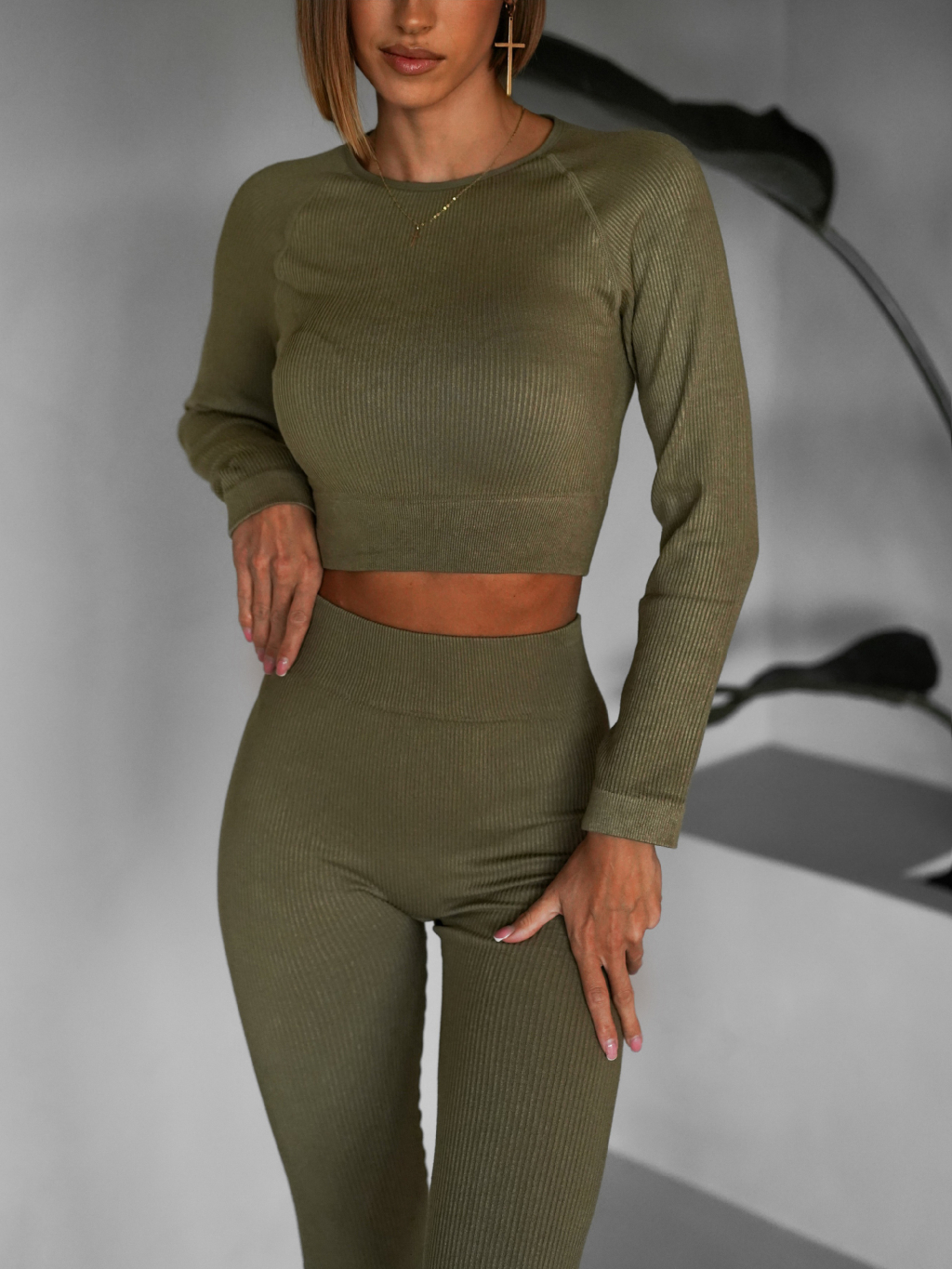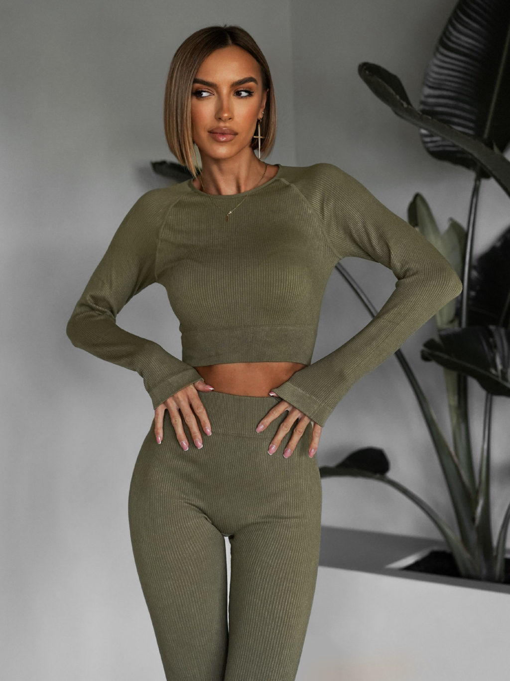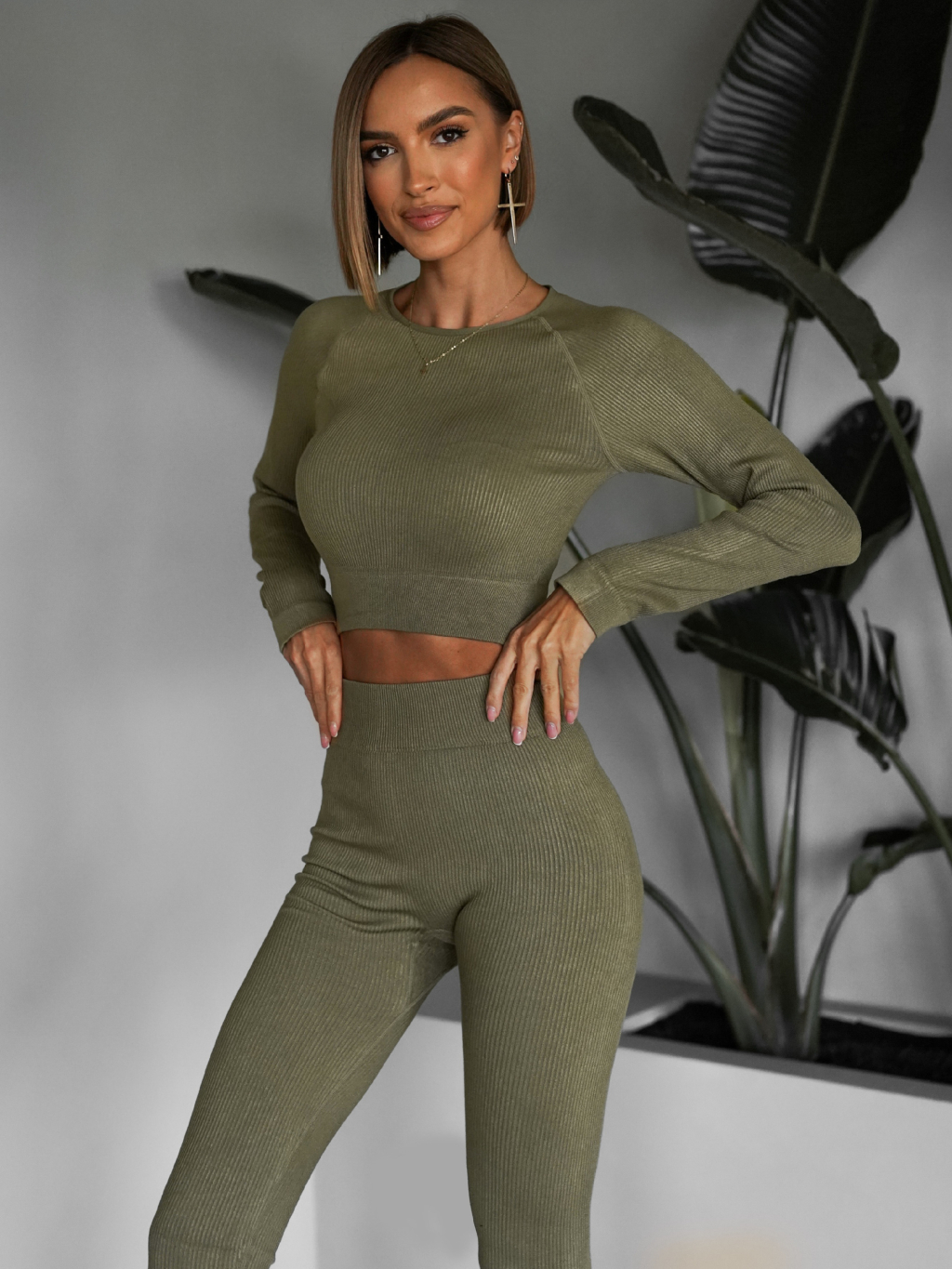 Khaki sportovní elastický komplet KEYA