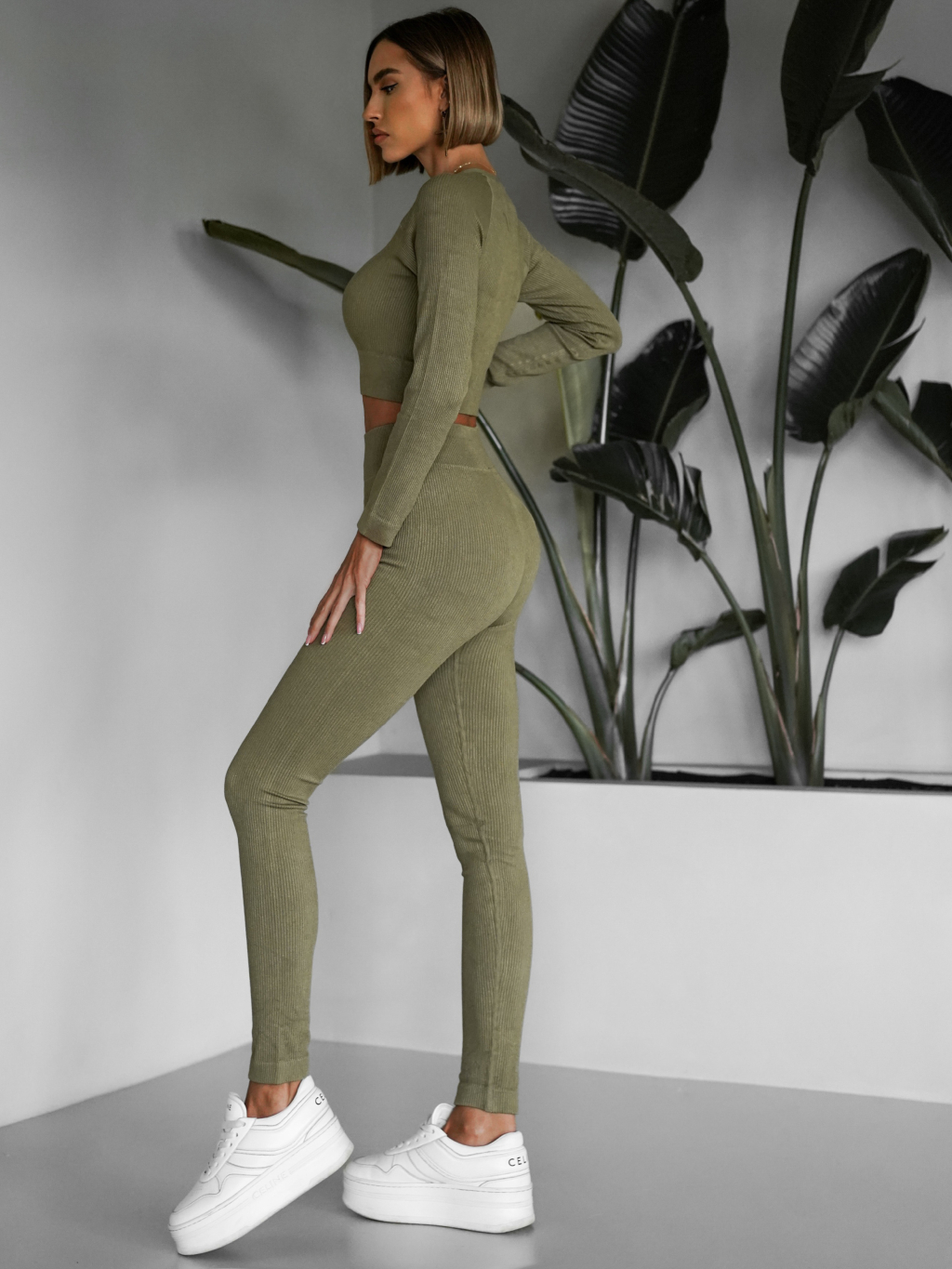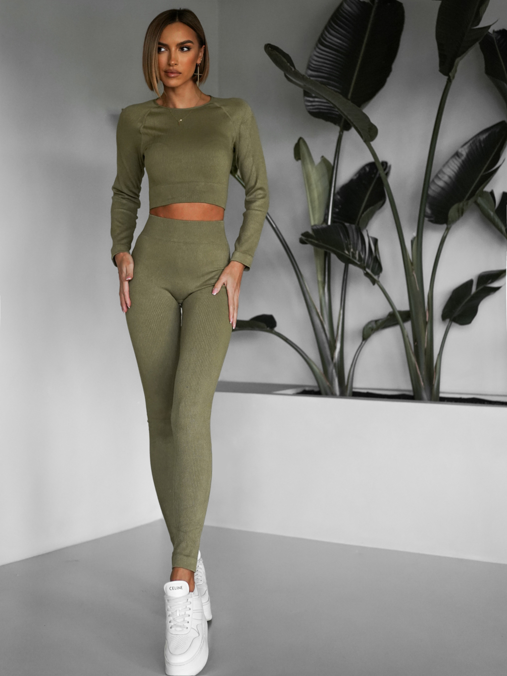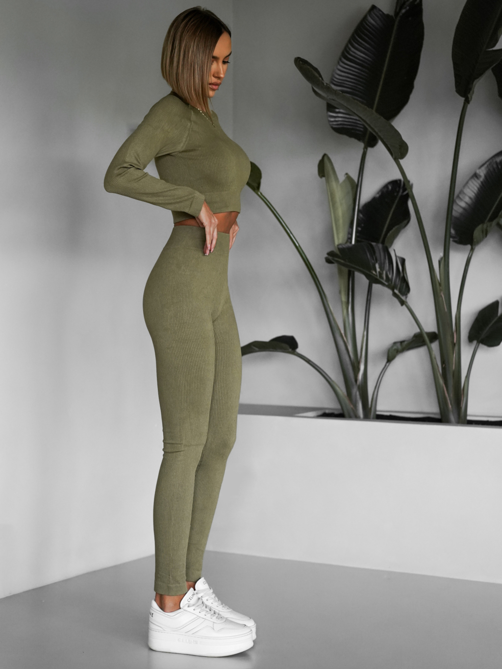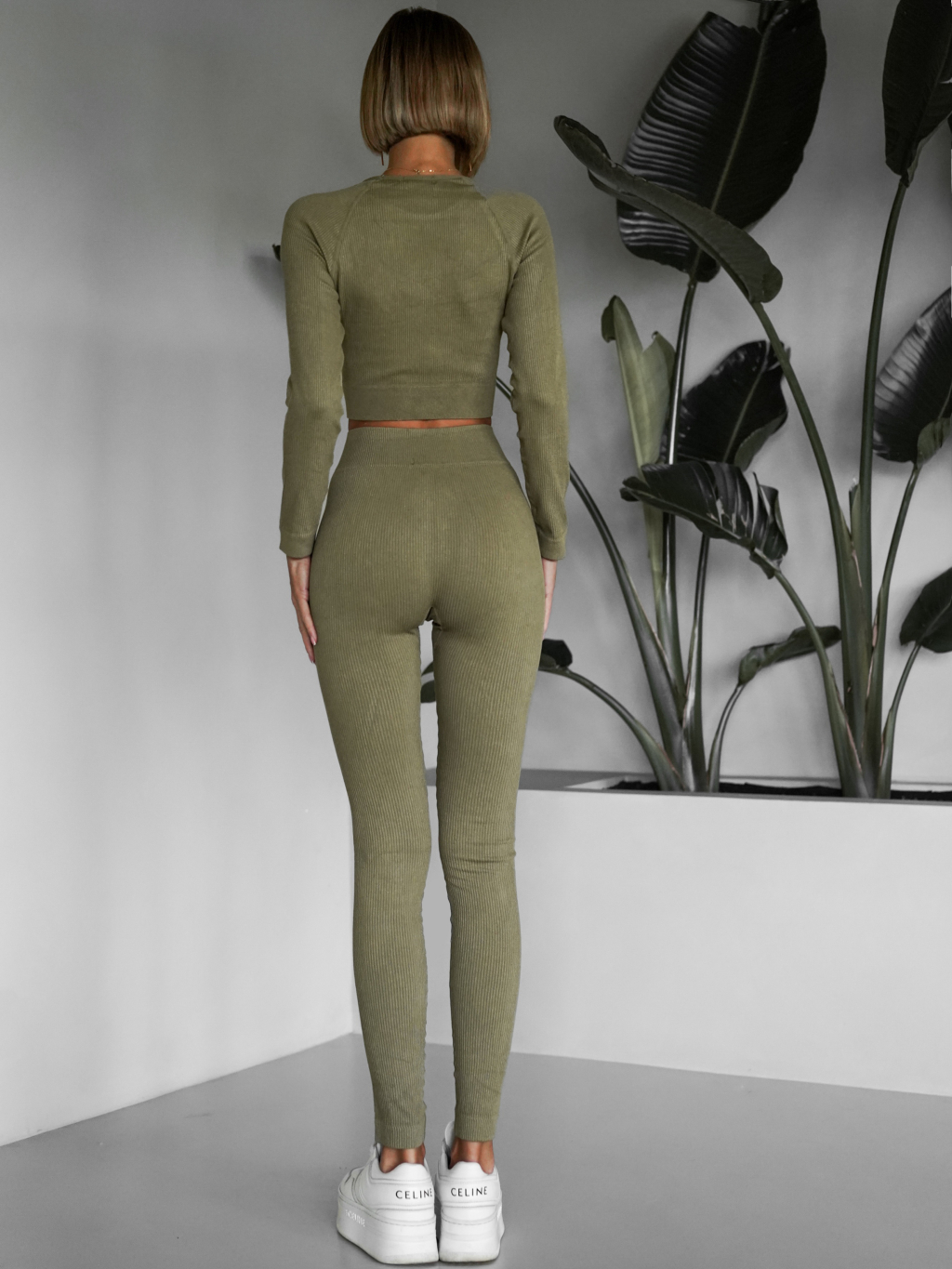 Khaki sportovní elastický komplet KEYA