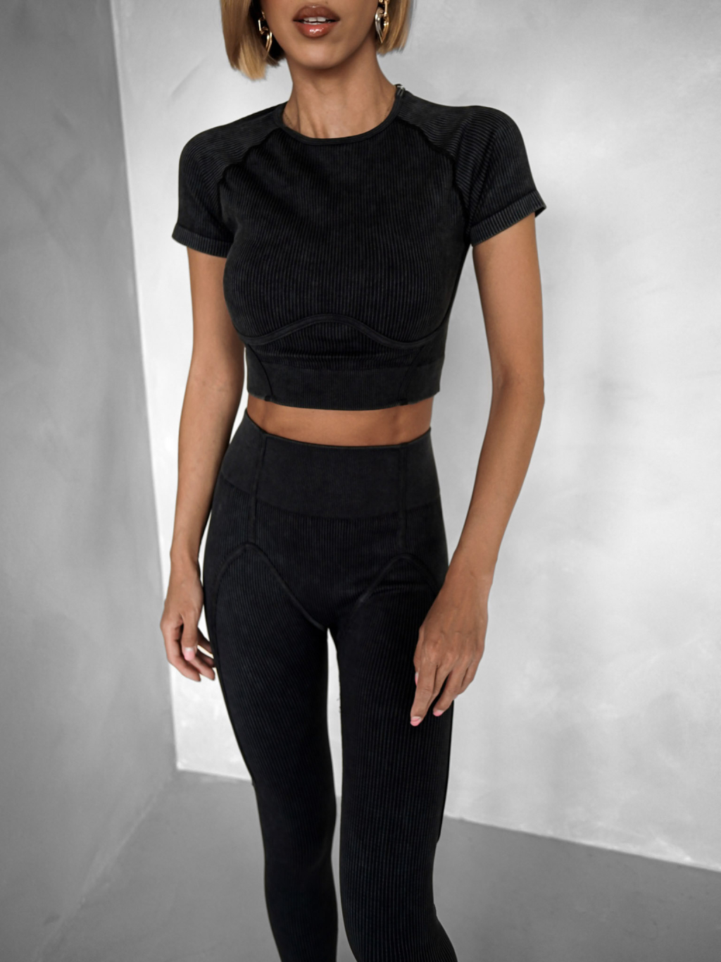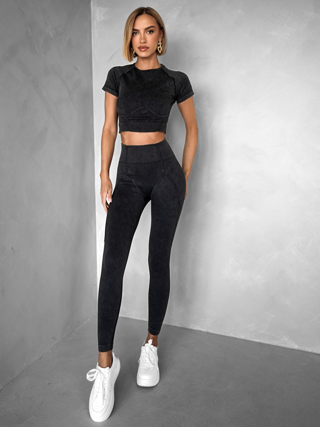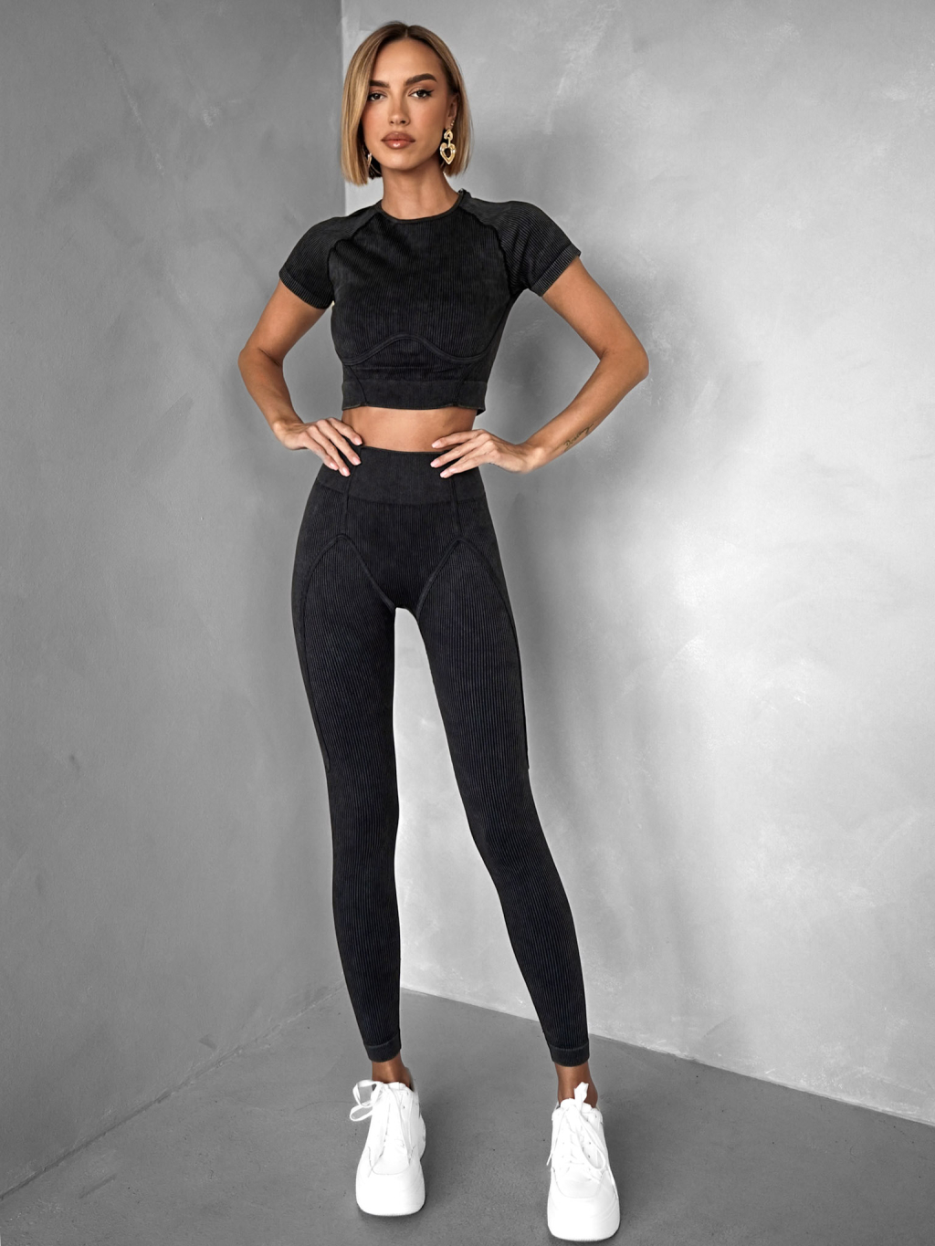 Tmavě šedý sportovní elastický komplet LAOIS s legínami