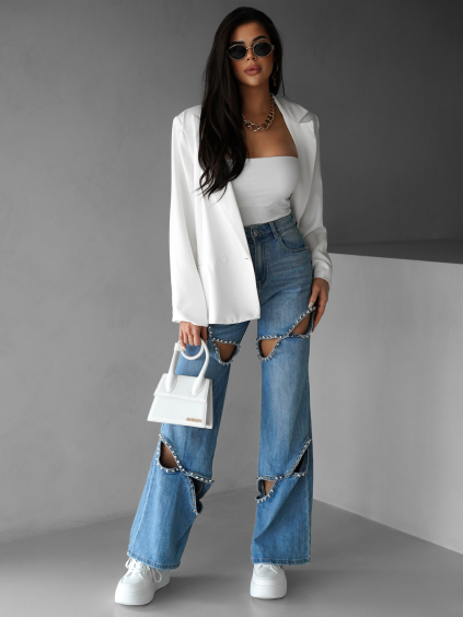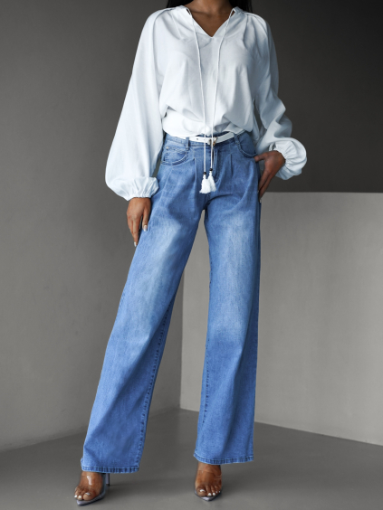 Modré wide leg džíny CHARYTIN s cvoky