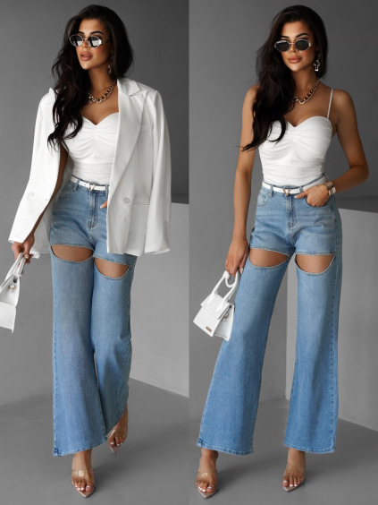 Dámské široké džíny jsou synonymem volnosti a pohodlí. Jedná se o džíny s širokými nohavicemi a často také vysokým pasem. V kolekci Erika Fashion najdeš široké džíny všech barev od klasické modré, bílé, šedé až po šisované džíny. Tento volnější střih nazývaný wide-leg jeans, nabízí dostatek pohodlí a zároveň vytváří výrazný moderní look. Tyto džíny vypadají skvěle s crop topy, volnými košilemi, nebo svetříky zastrčenými do vysokého pasu.