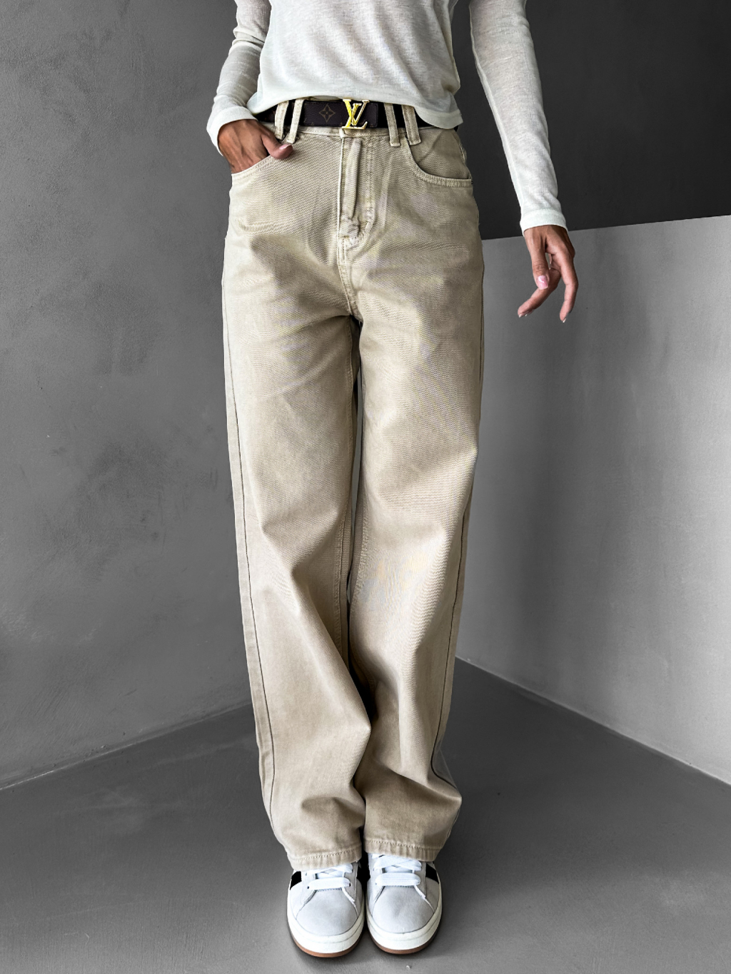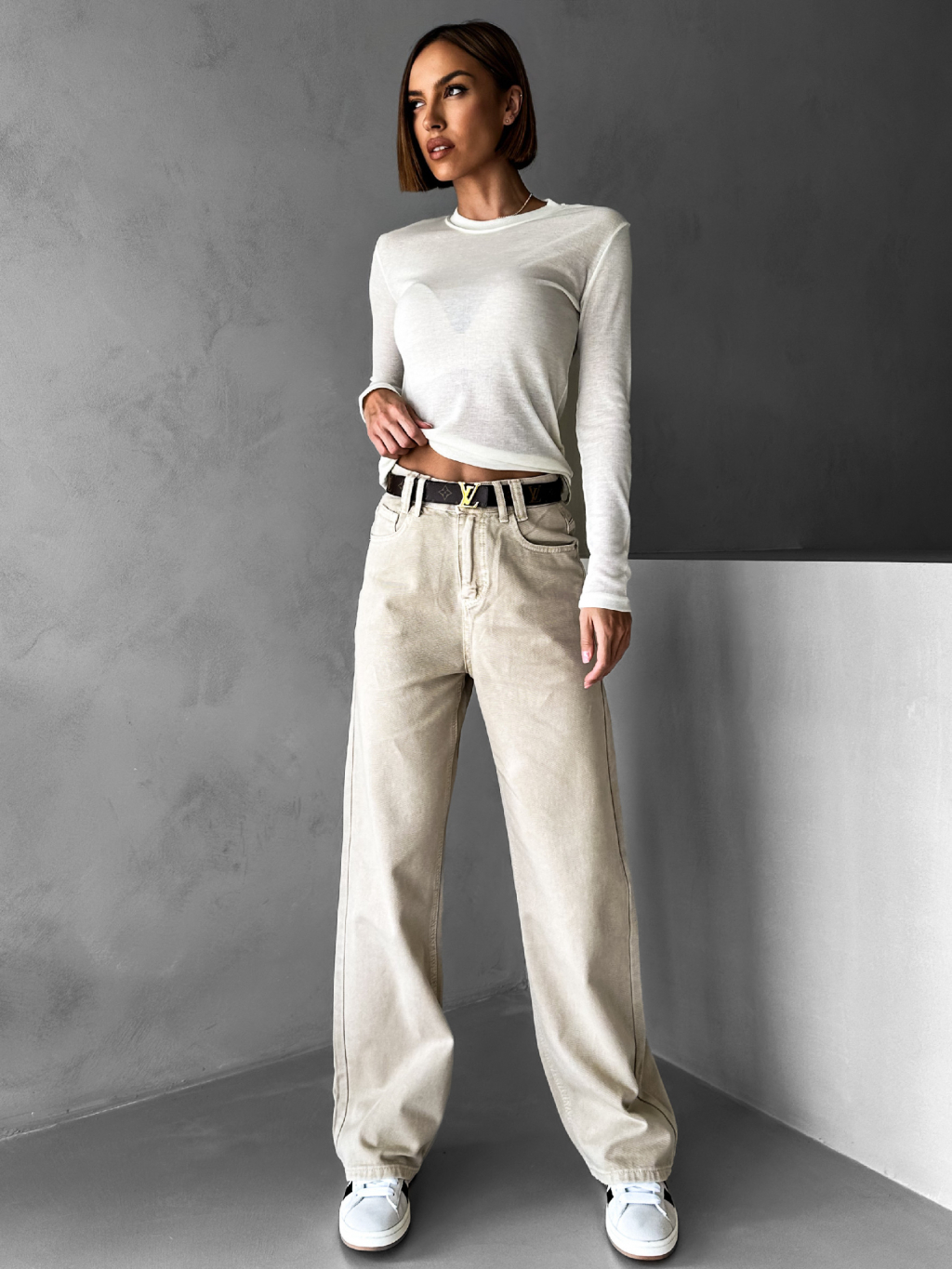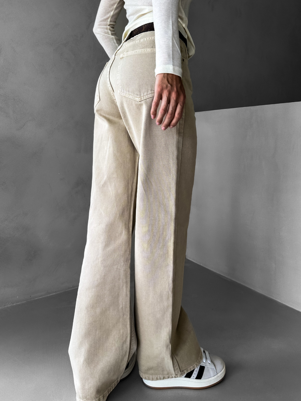 Béžové široké wide leg džíny GIANLUCA