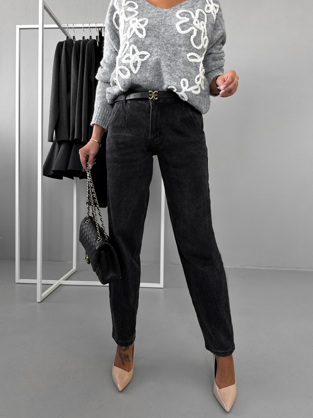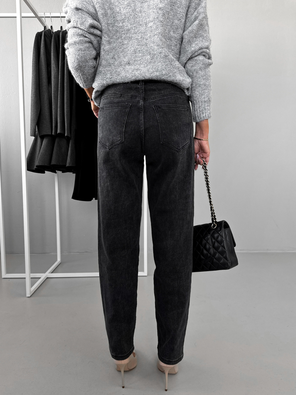 Černé basic široké wide leg džíny DESPINA