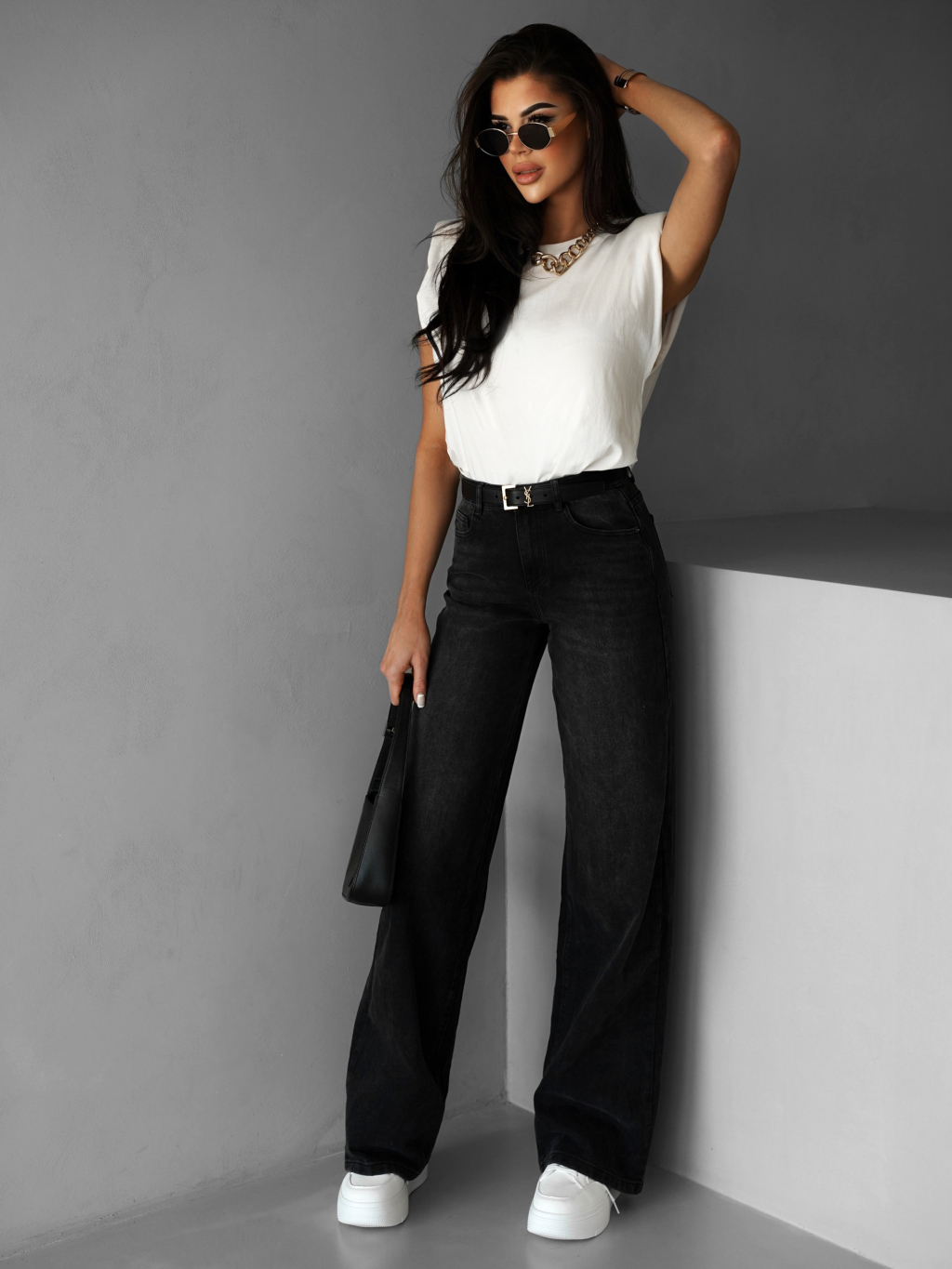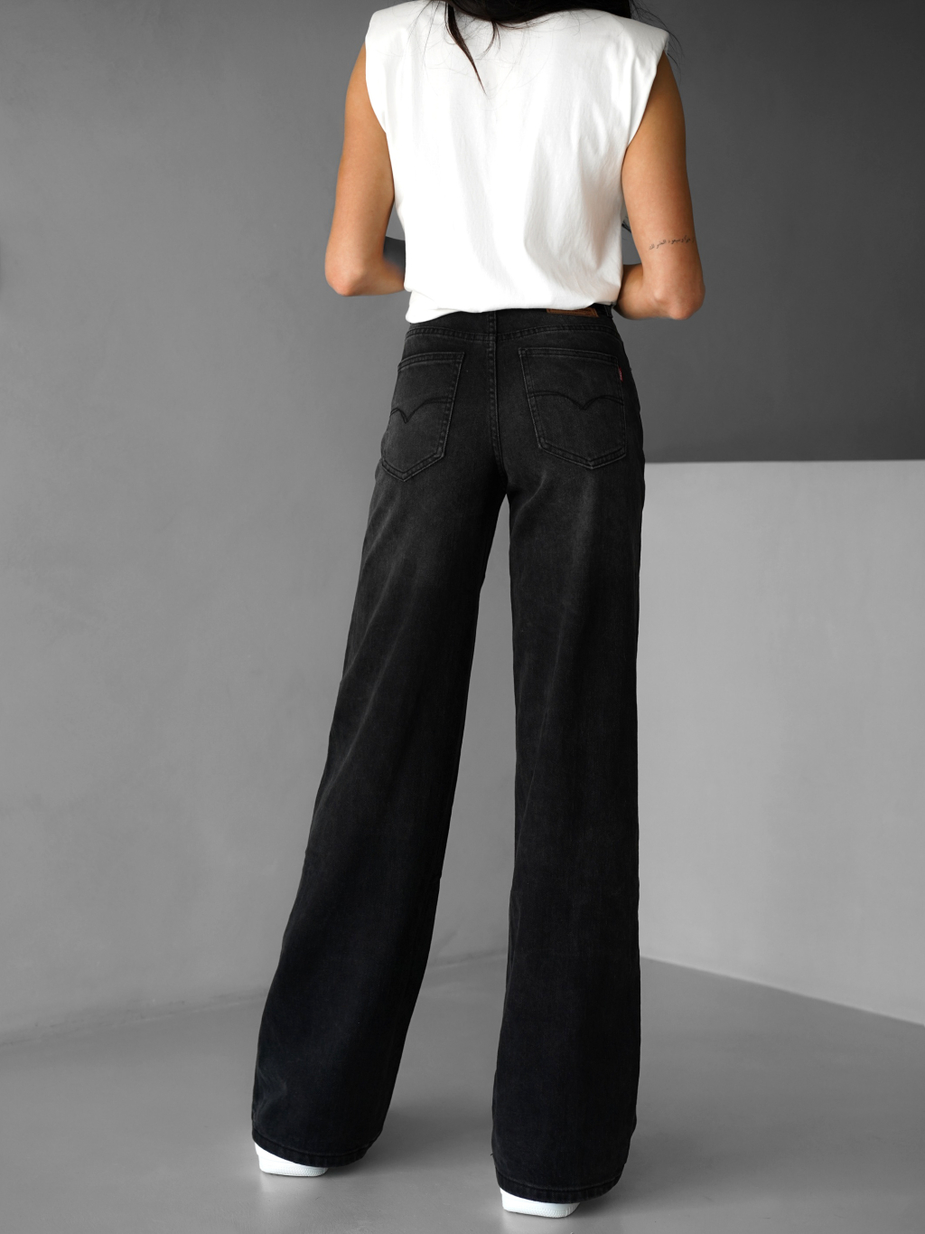 Černé široké wide leg pohodlné džíny CHIMLEA