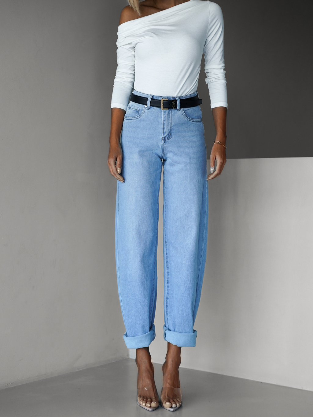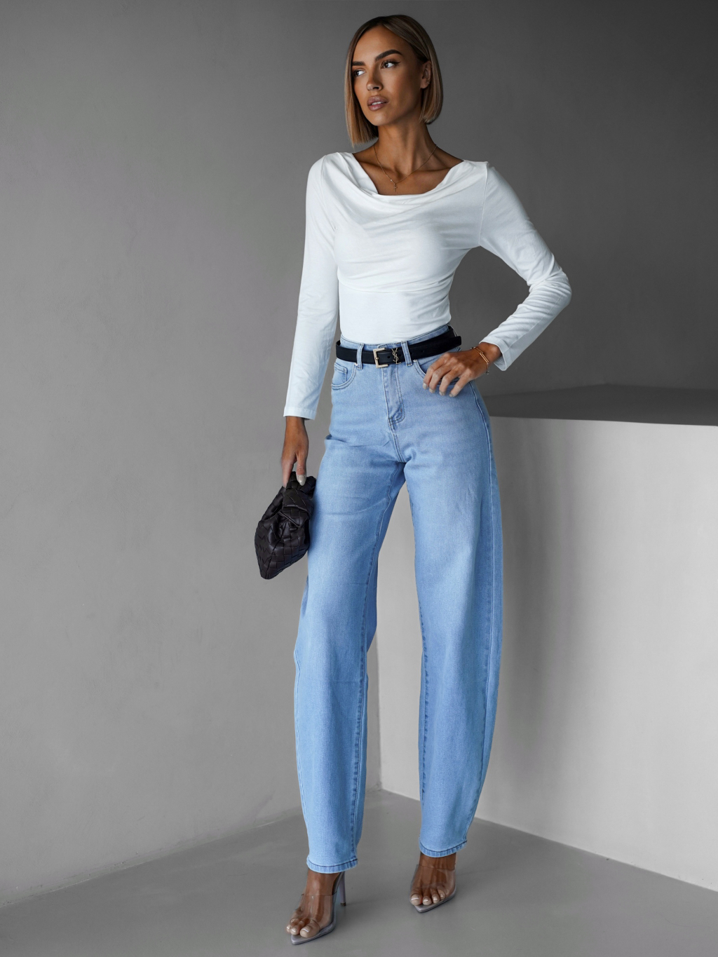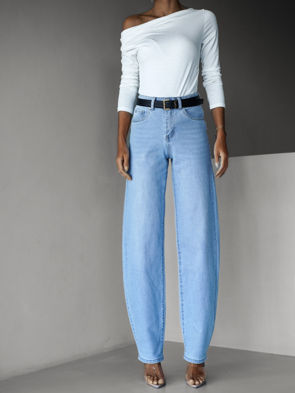 Modré široké mom džíny AGNYTA s vyšším pasem