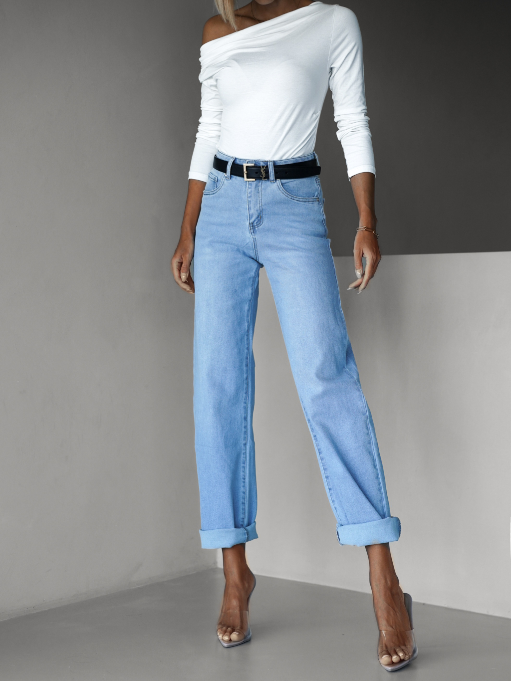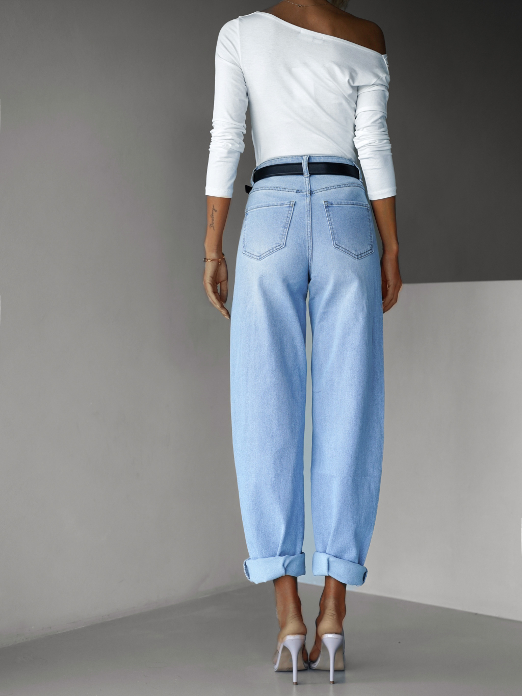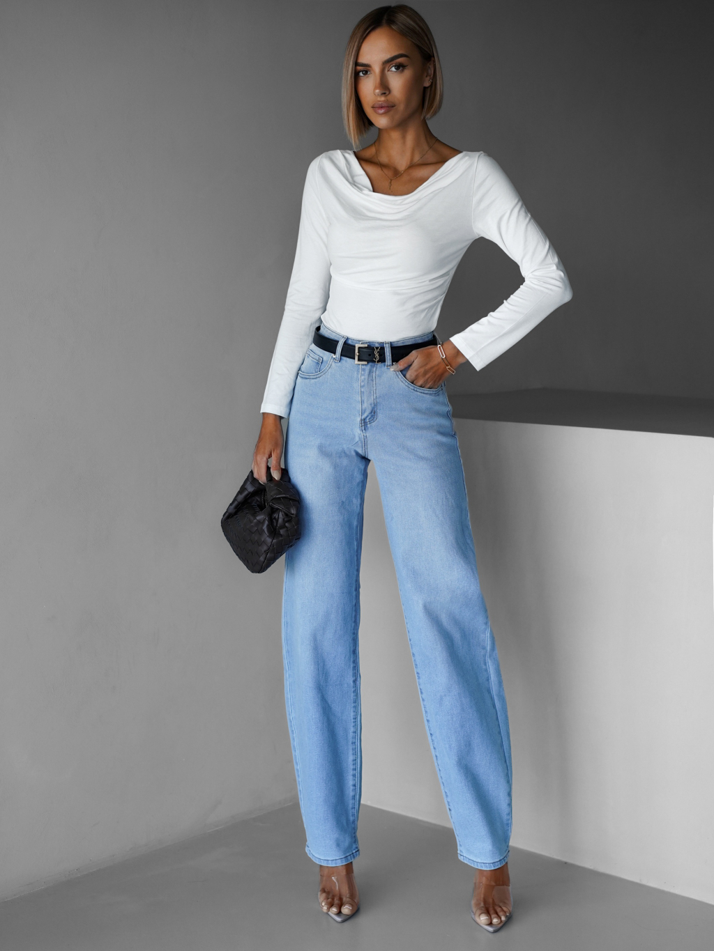 Modré široké mom džíny AGNYTA s vyšším pasem