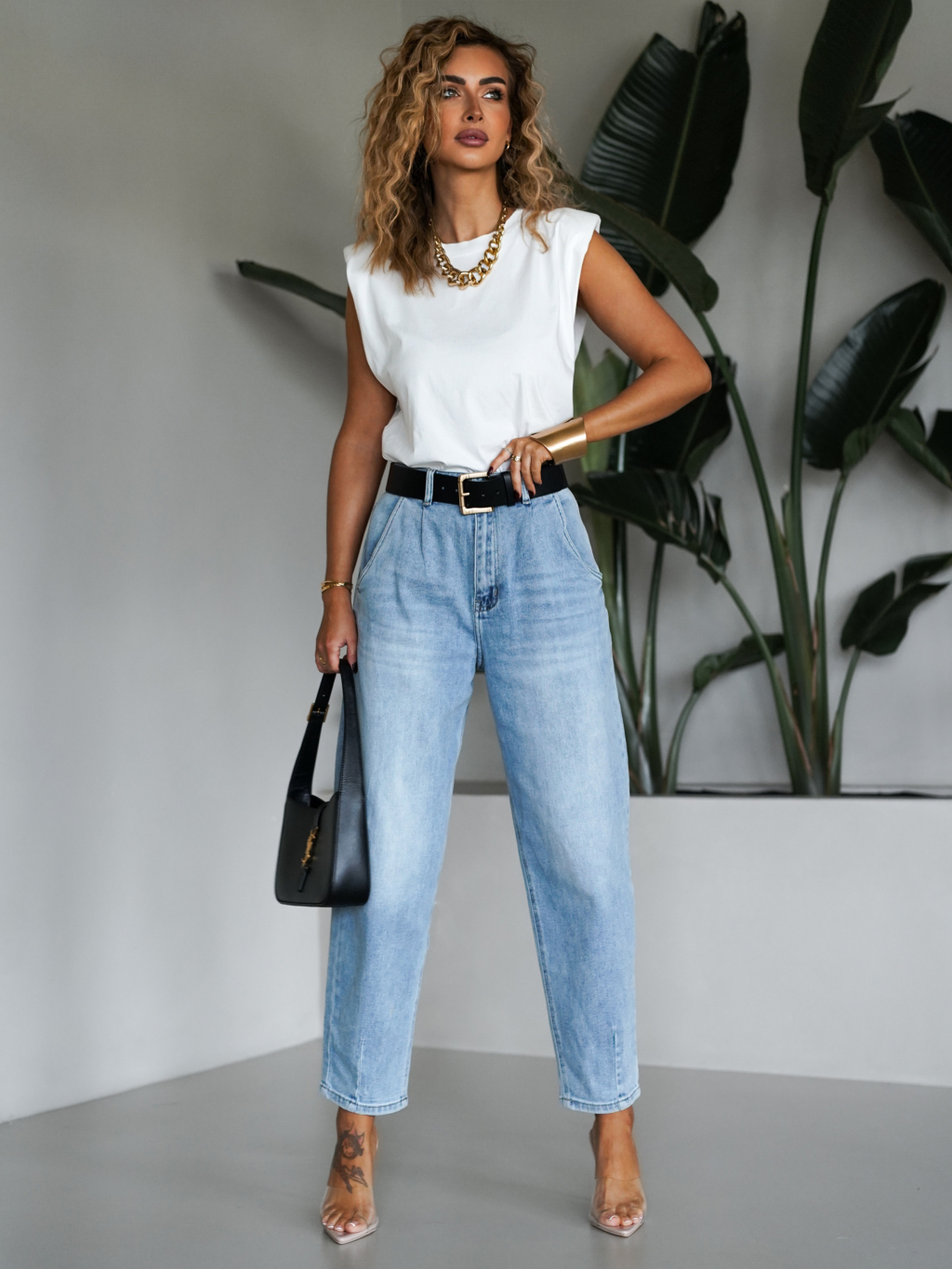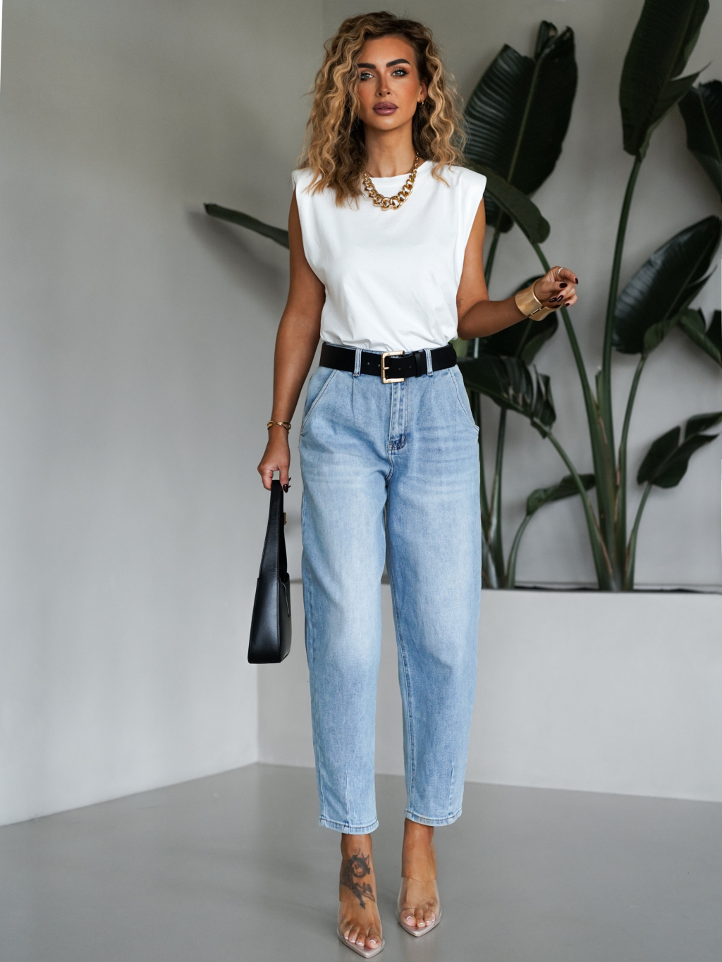 Modré široké mom džíny CASSIAN