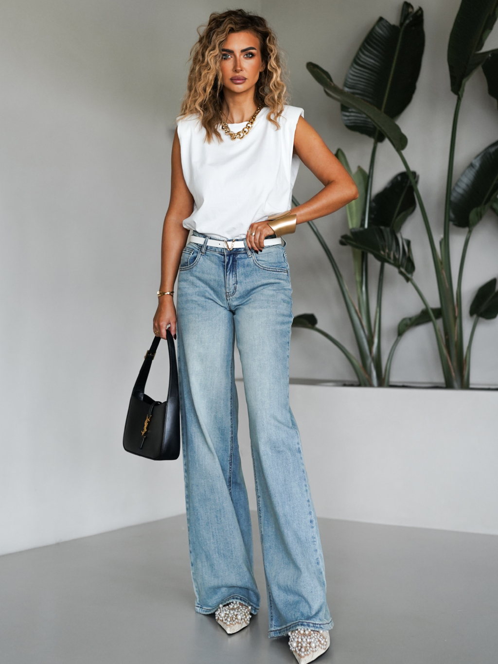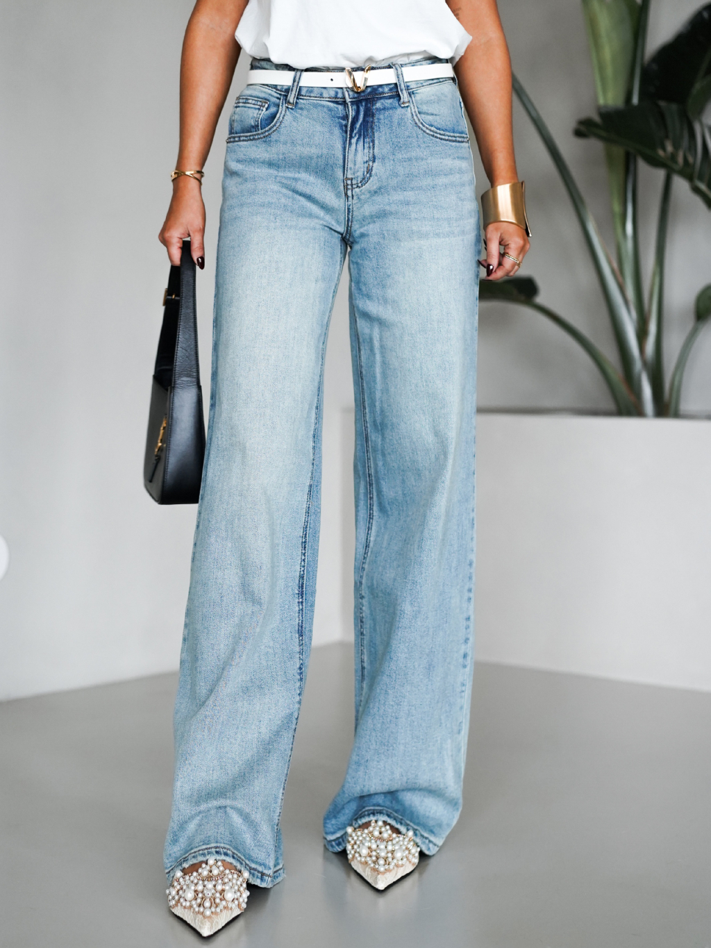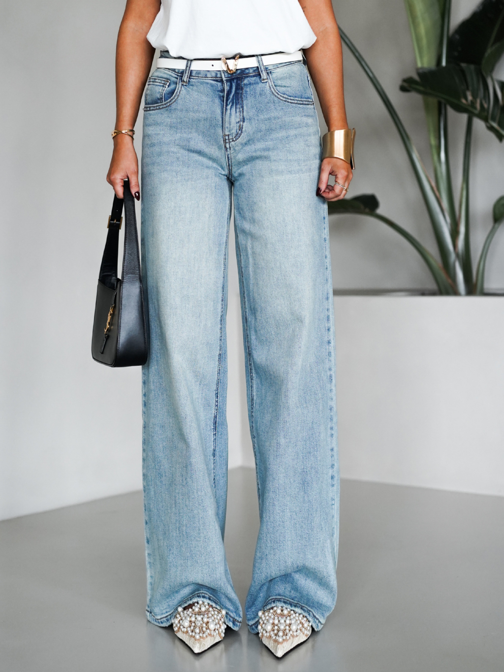 Modré široké wide leg džíny THESAN