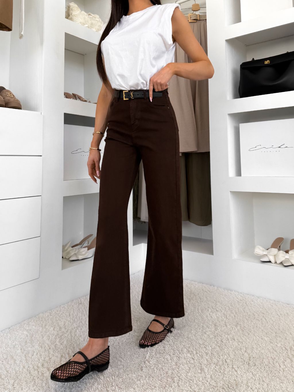Tmavě hnědé wide leg široké džíny CALYDRA
