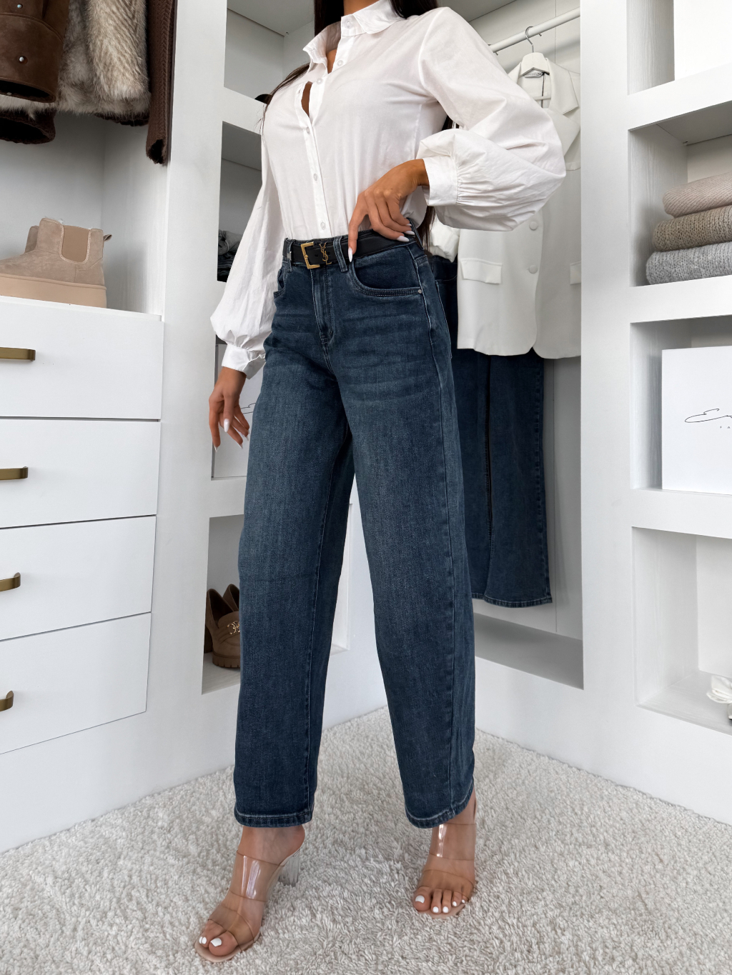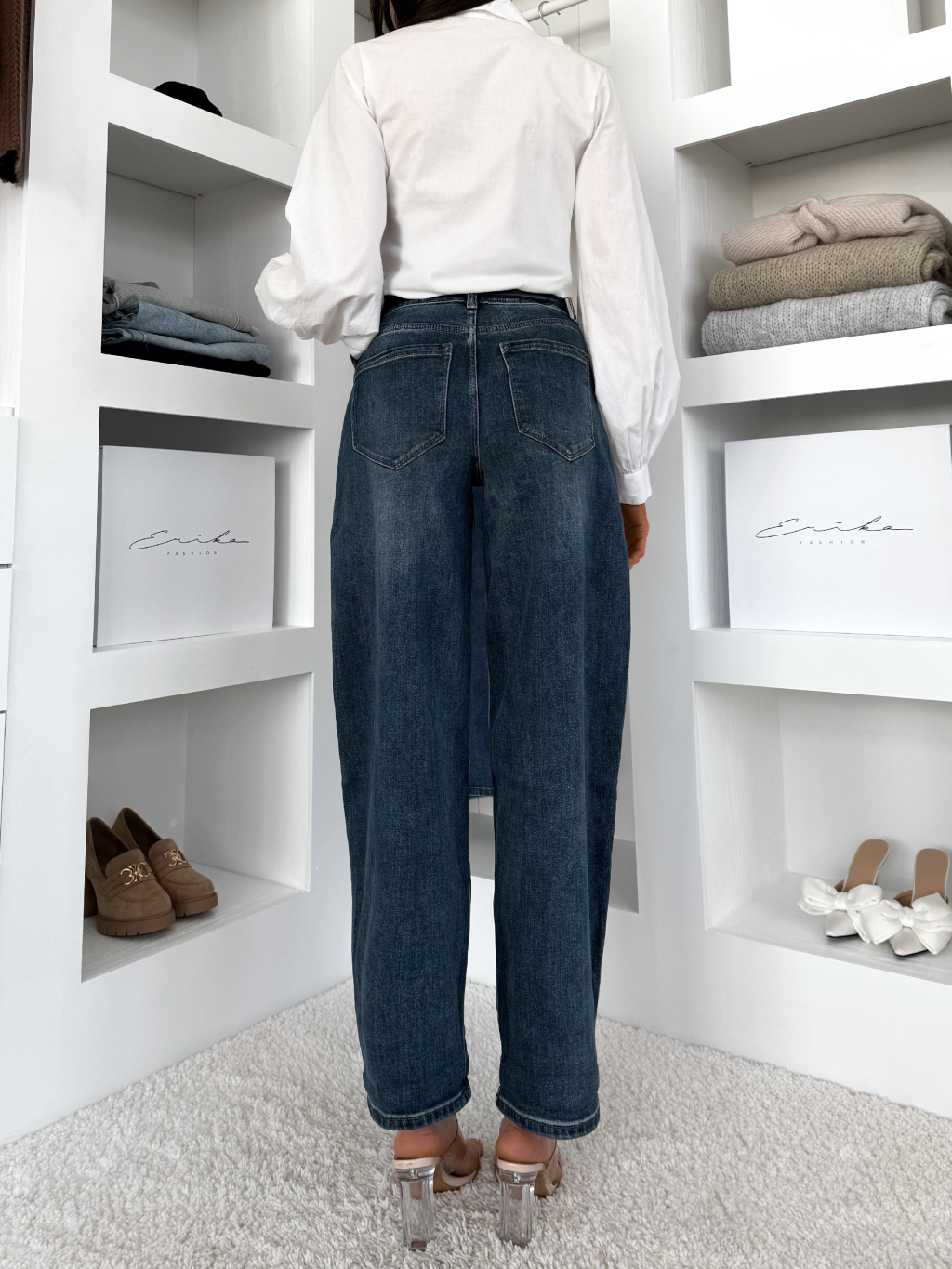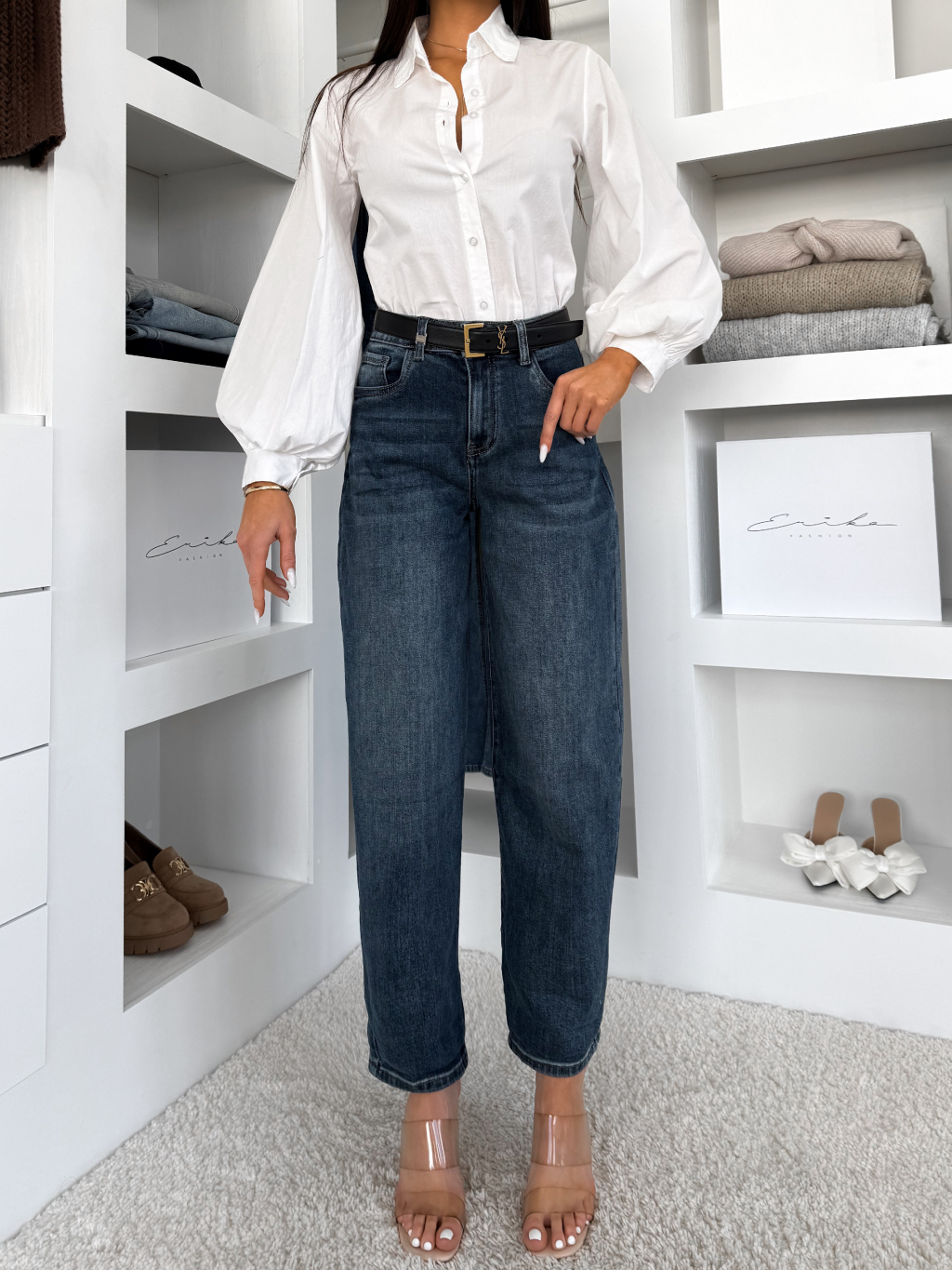 Tmavě modré barrel široké džíny BRONDA
