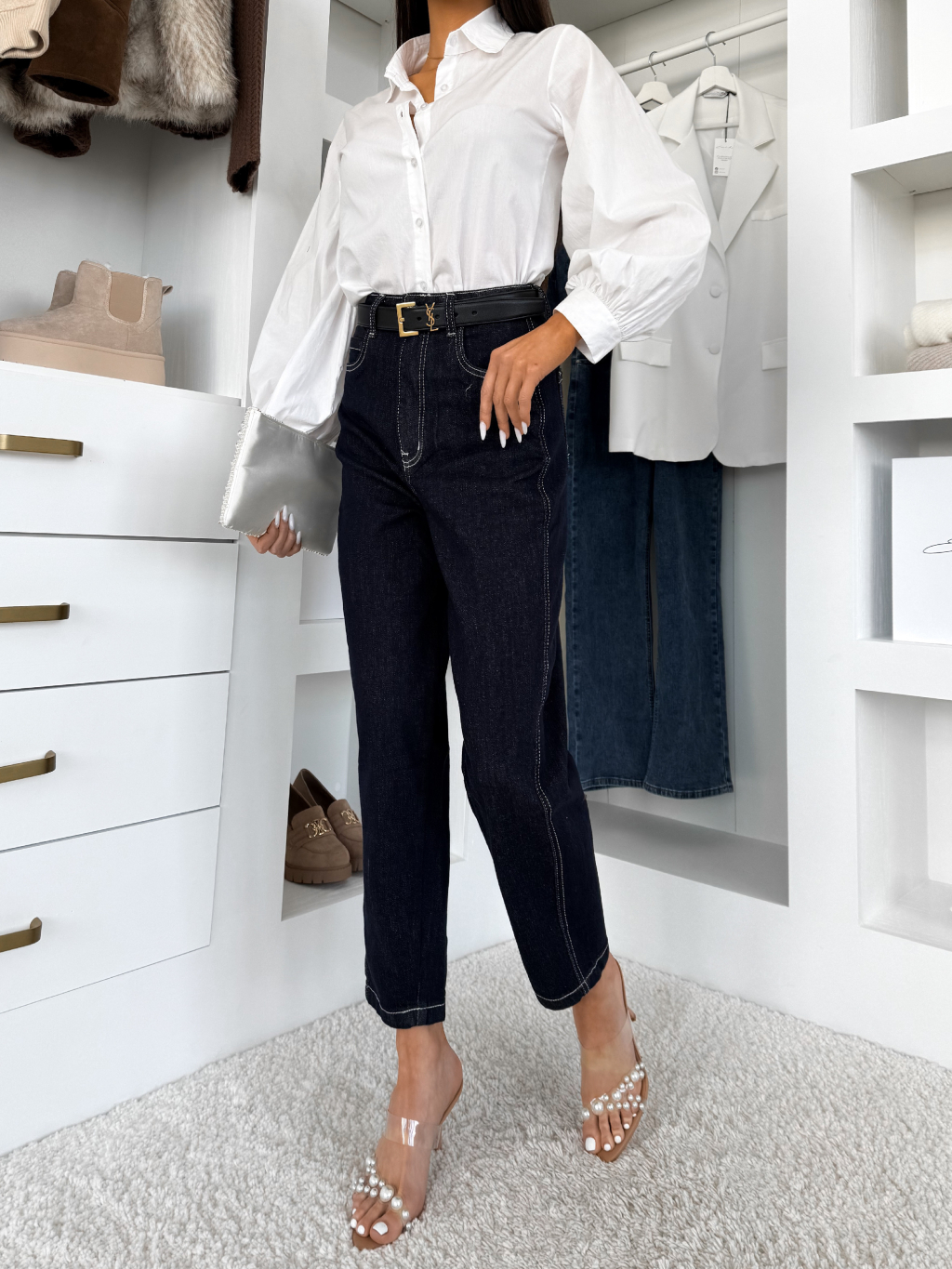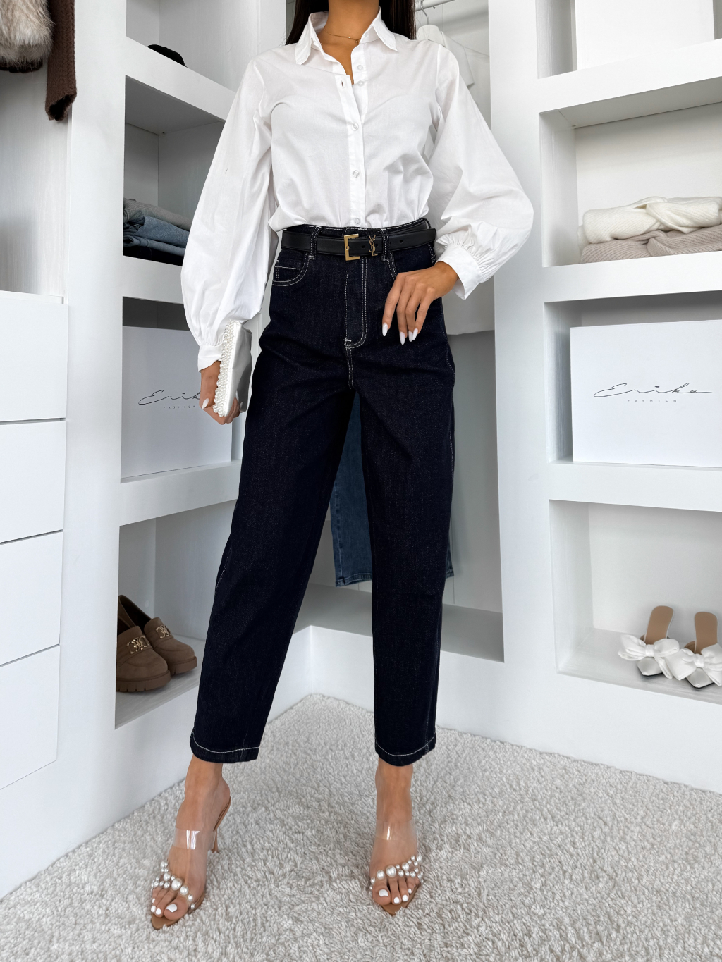 Tmavě modré široké mom džíny FUSTON