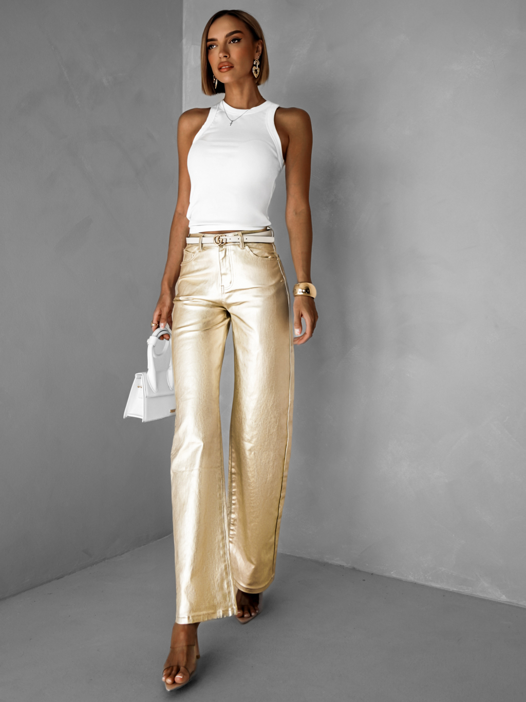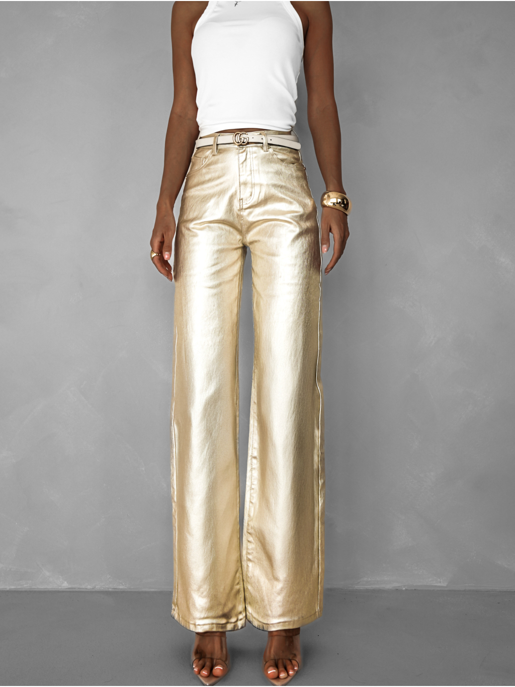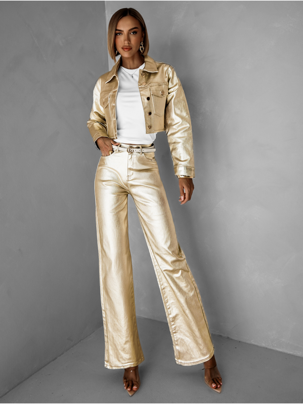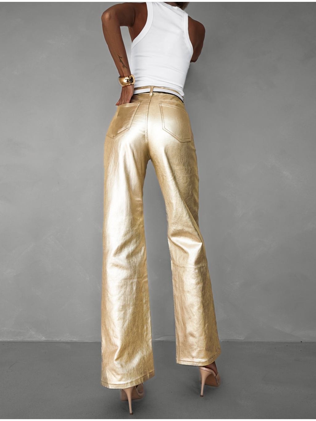 Zlaté stylové straight džíny FALES