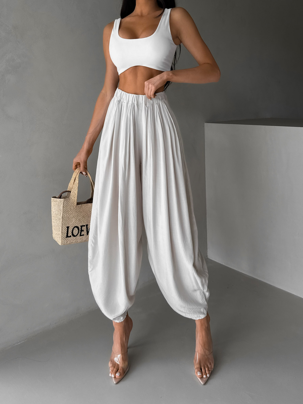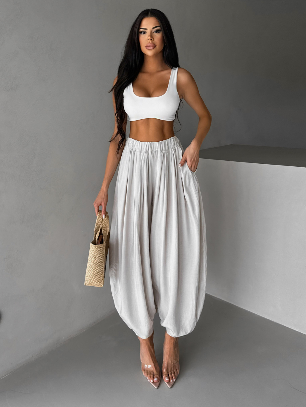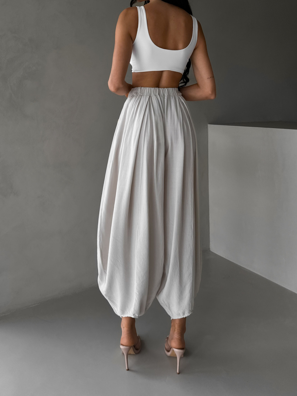 Béžové široké harémky vzdušné kalhoty MYRAEL