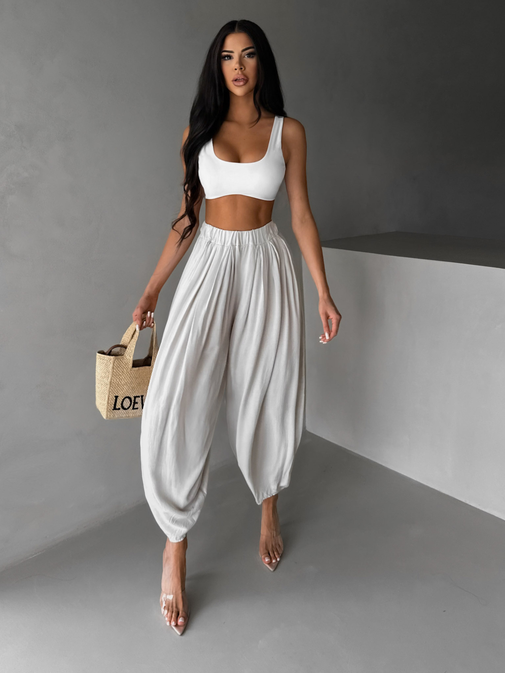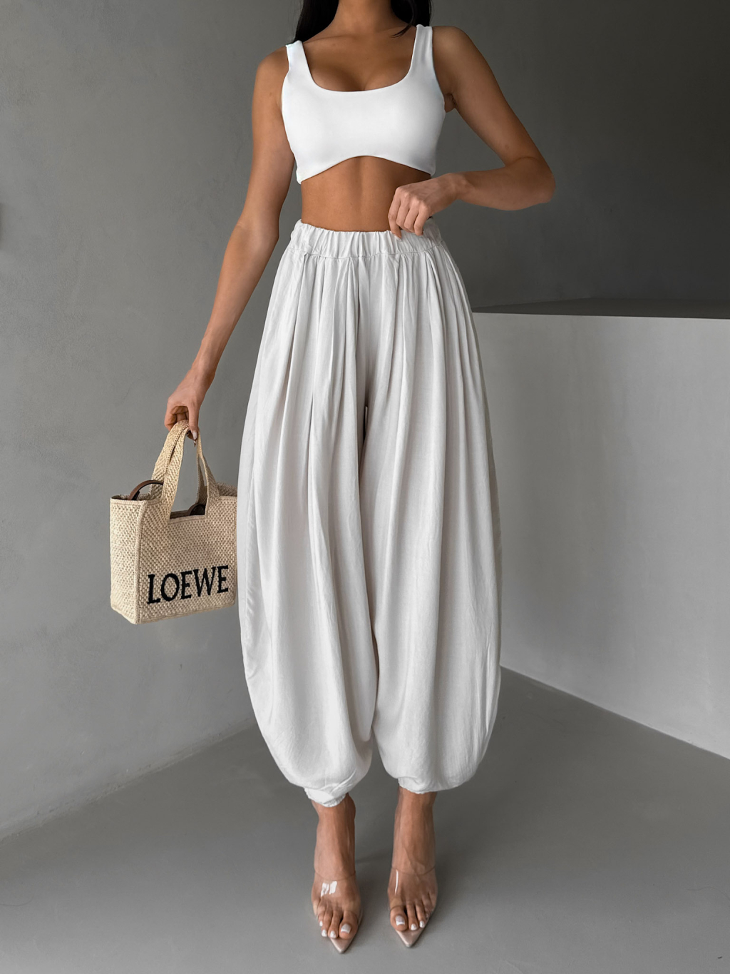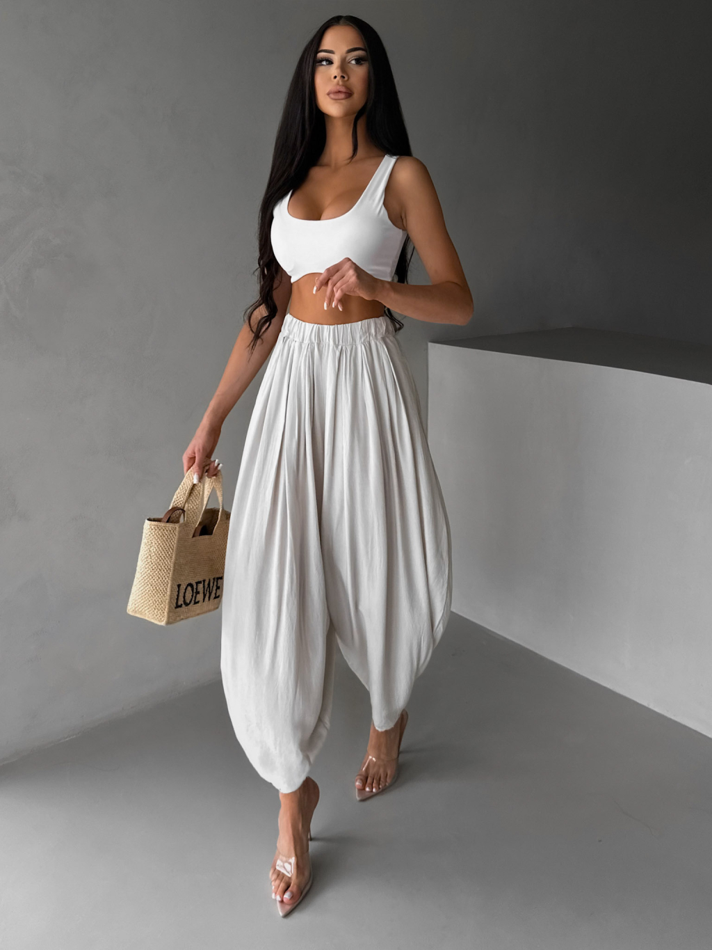 Béžové široké harémky vzdušné kalhoty MYRAEL
