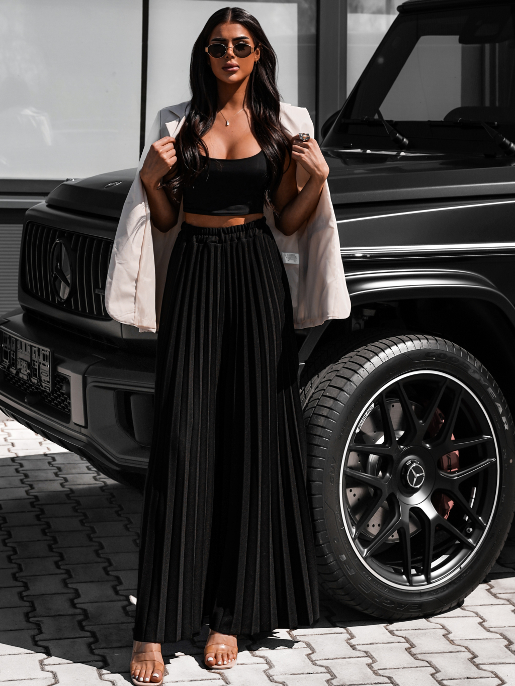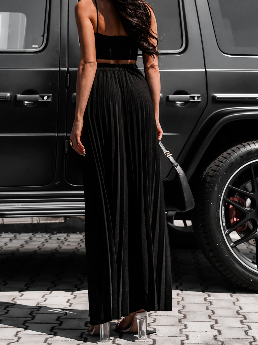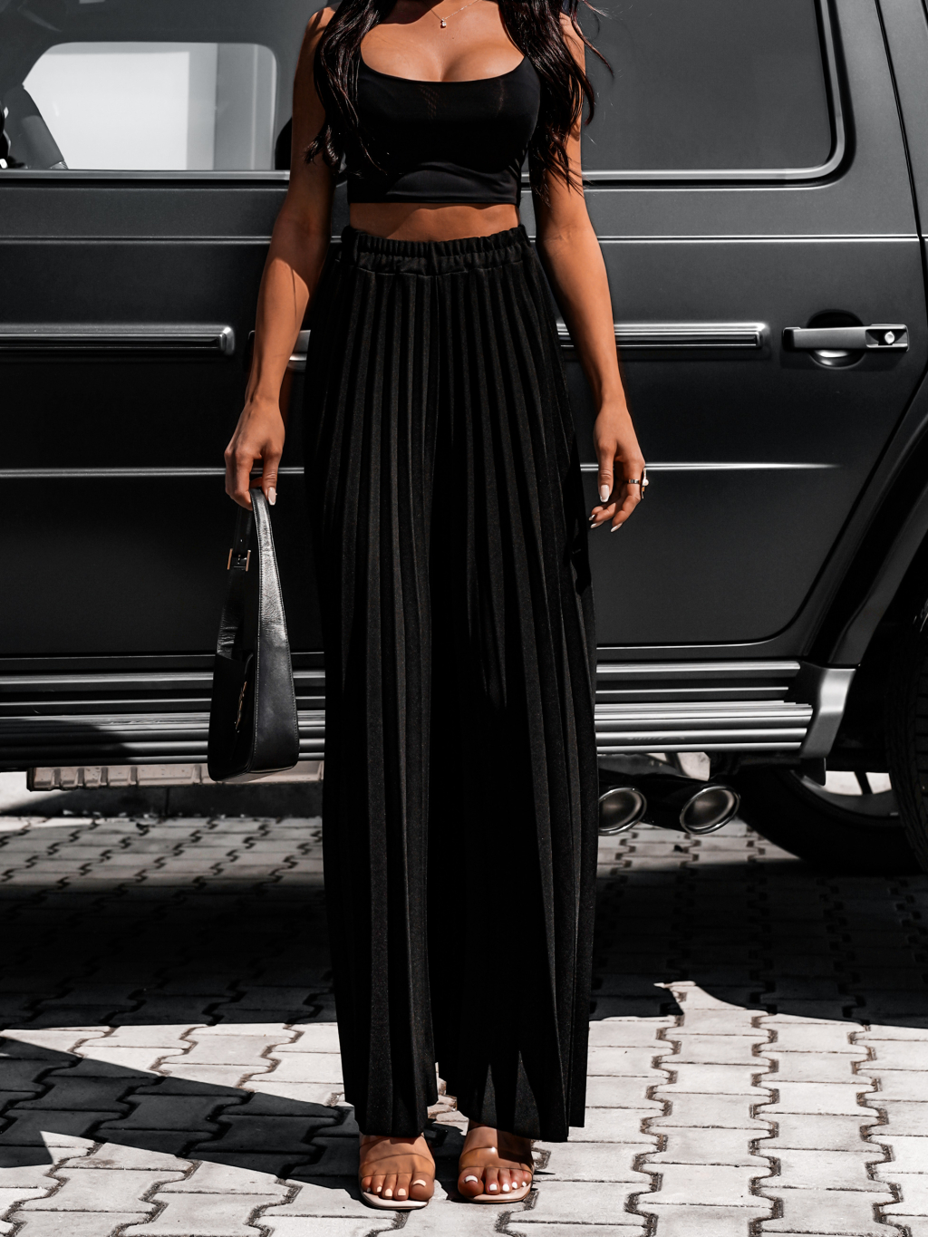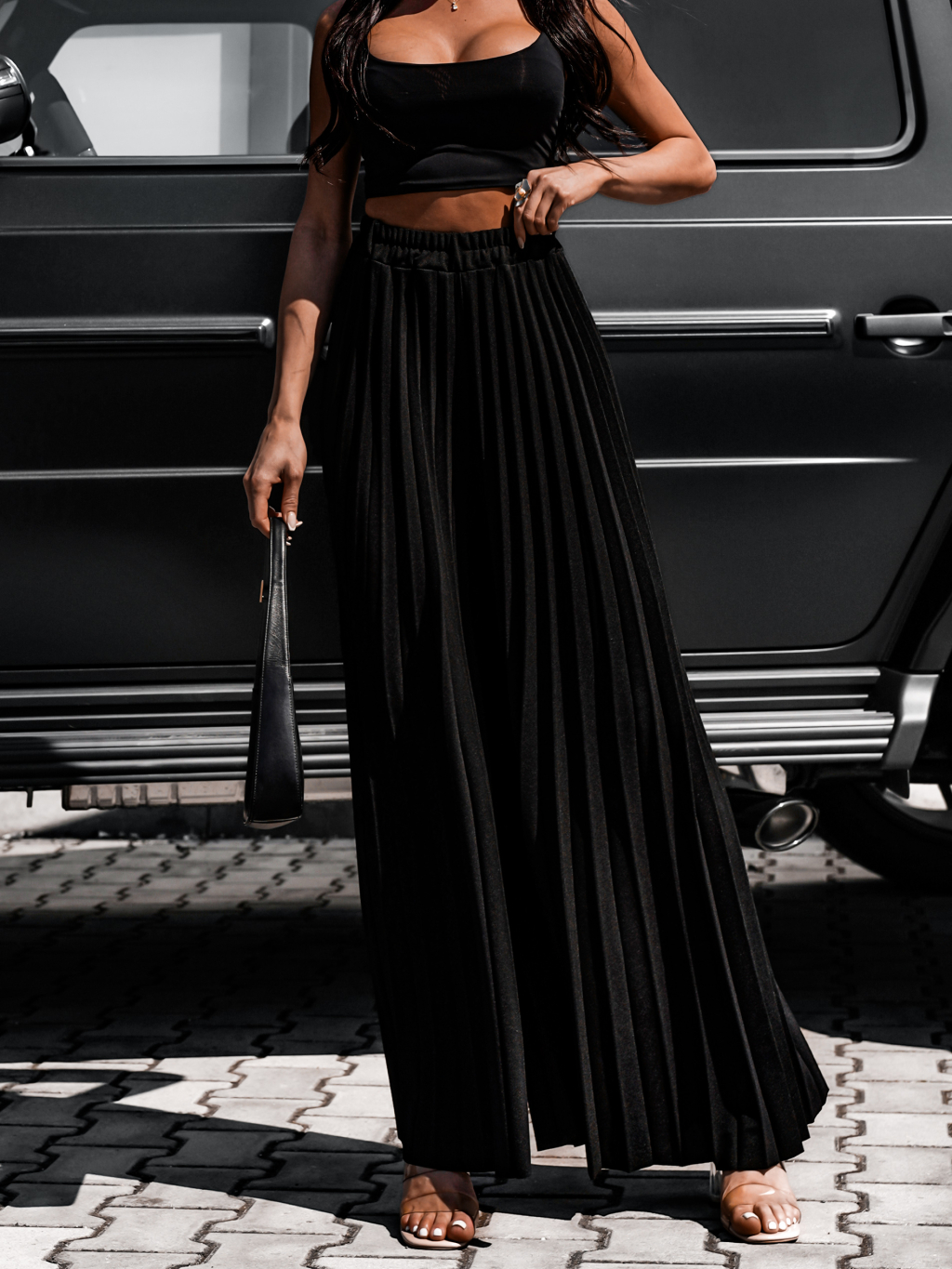 Černé dlouhé plisované letní kalhoty STARKY