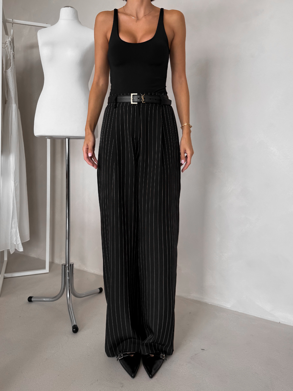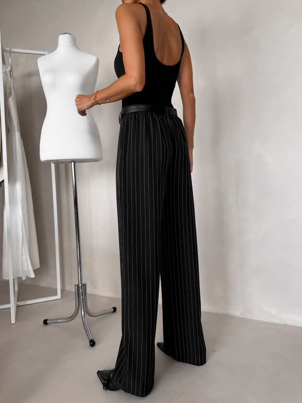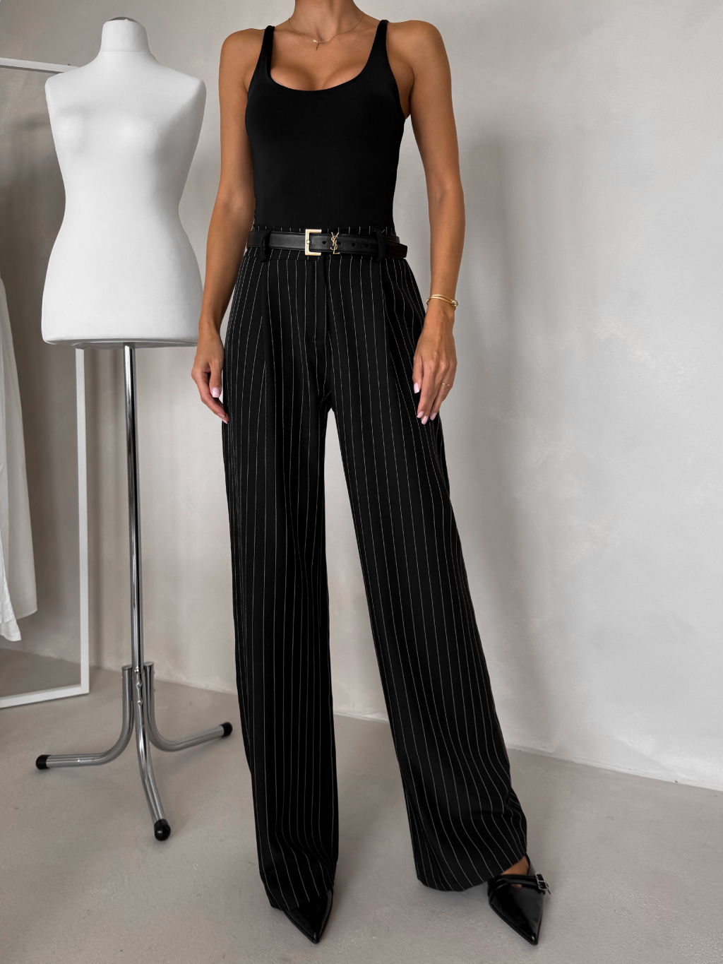Černé pruhované široké kalhoty NELORA