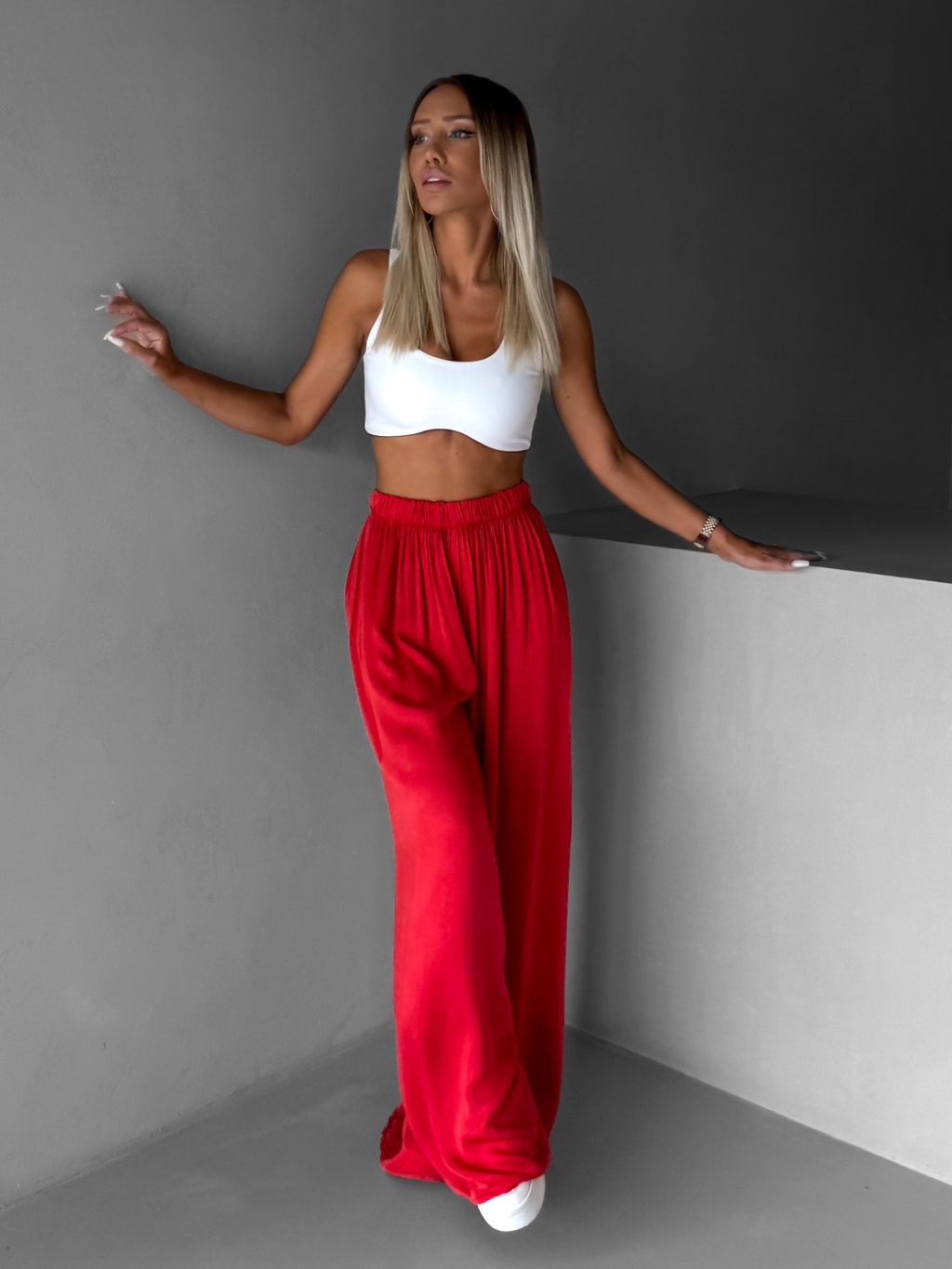 Nadčasové volné kalhoty, které krásně přiléhají k postavě. Díky svému pružnému materiálu v pase a své pohodlnosti jsou vhodné na každodenní nošení.