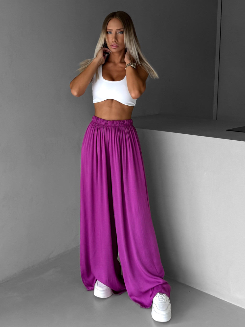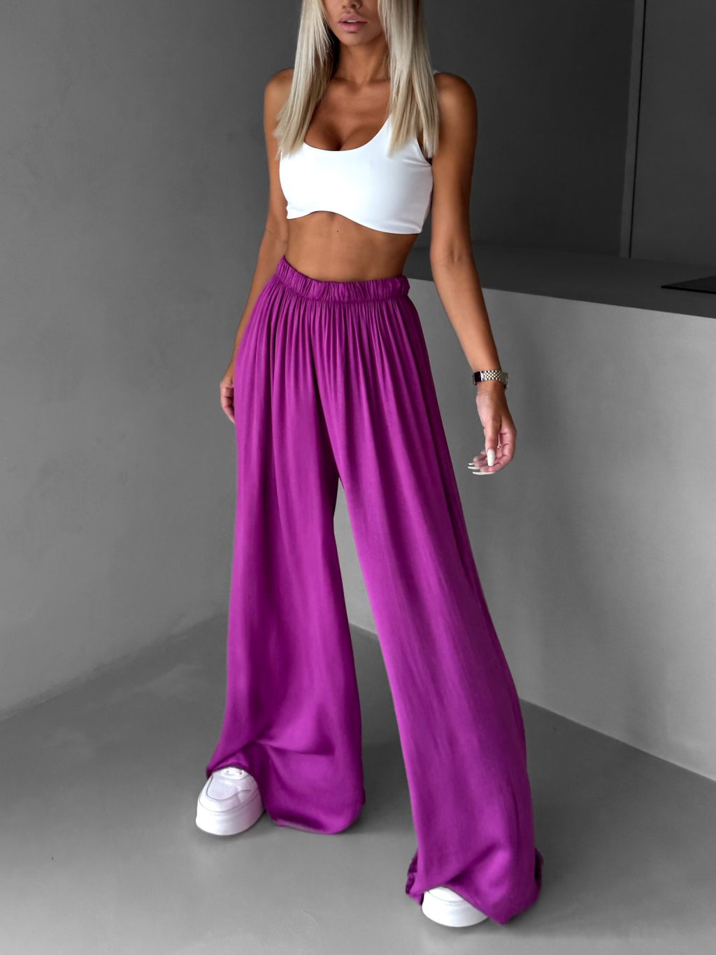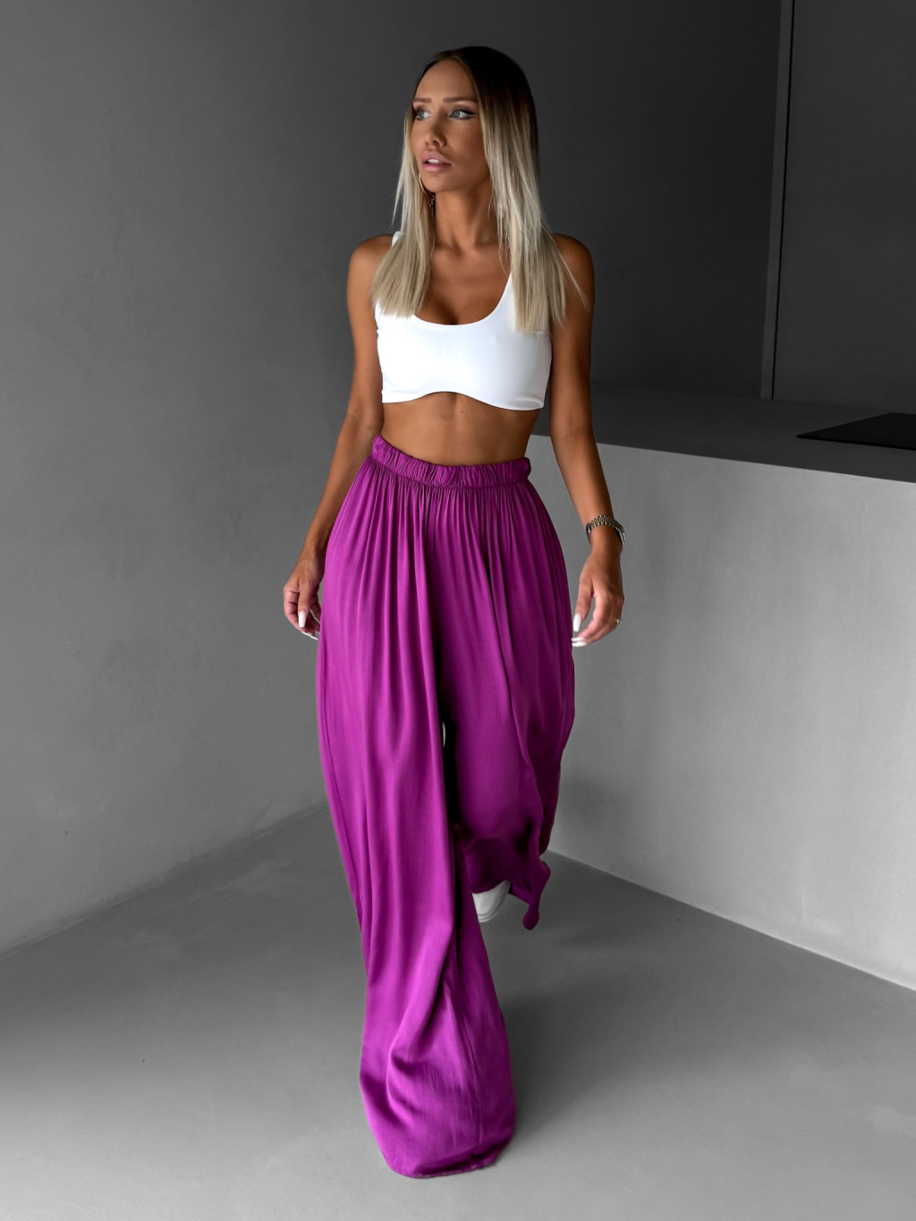 Fialové široké volné dlouhé kalhoty OLVIRA