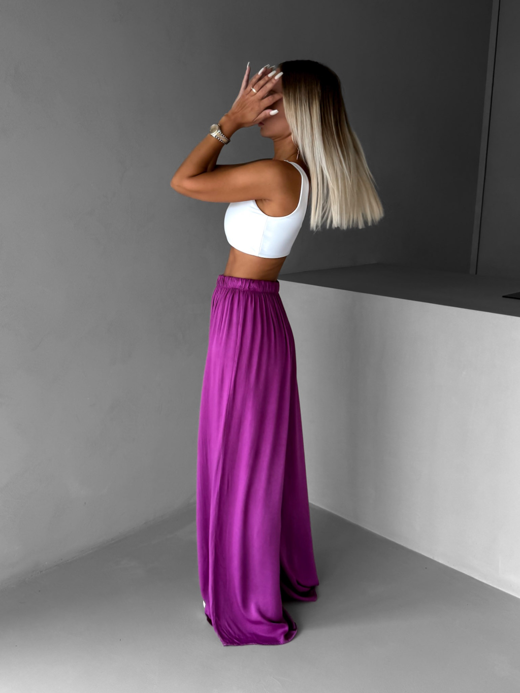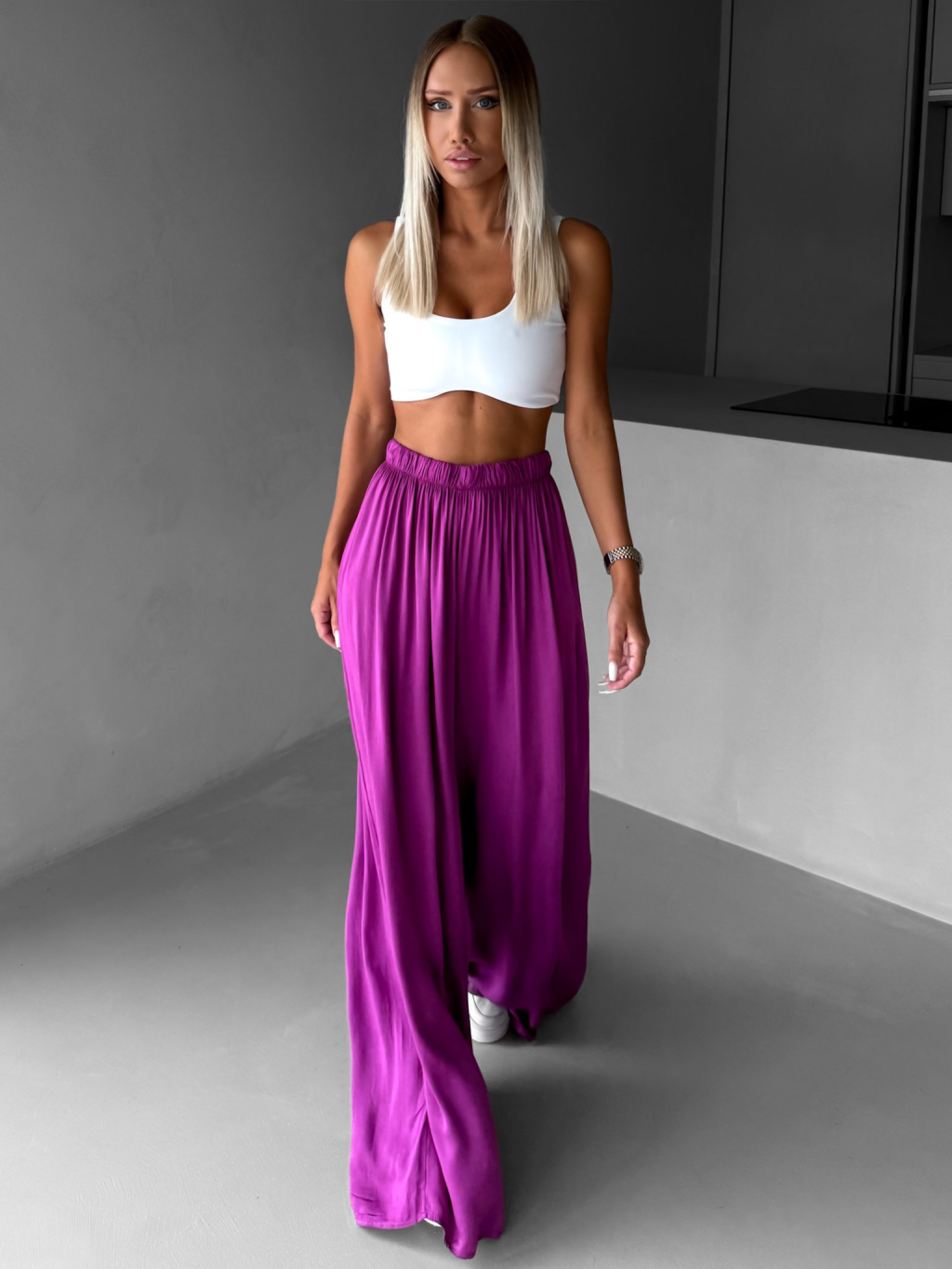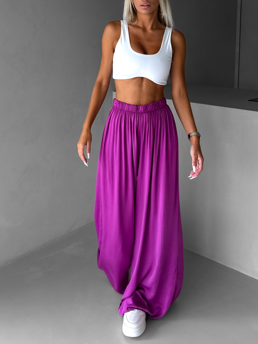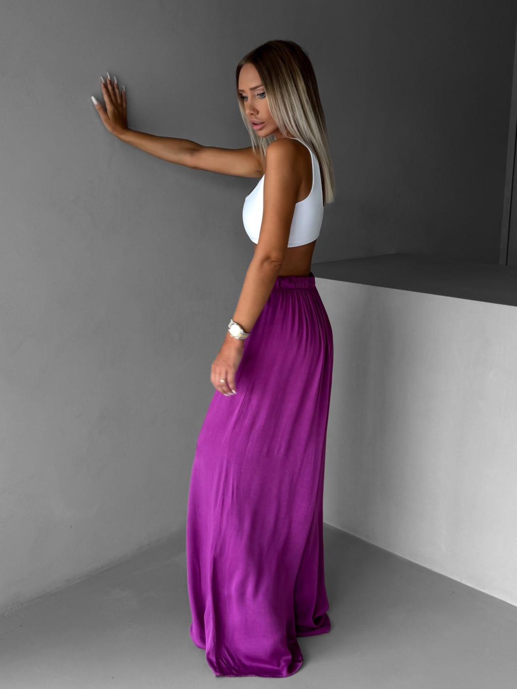 Fialové široké volné dlouhé kalhoty OLVIRA