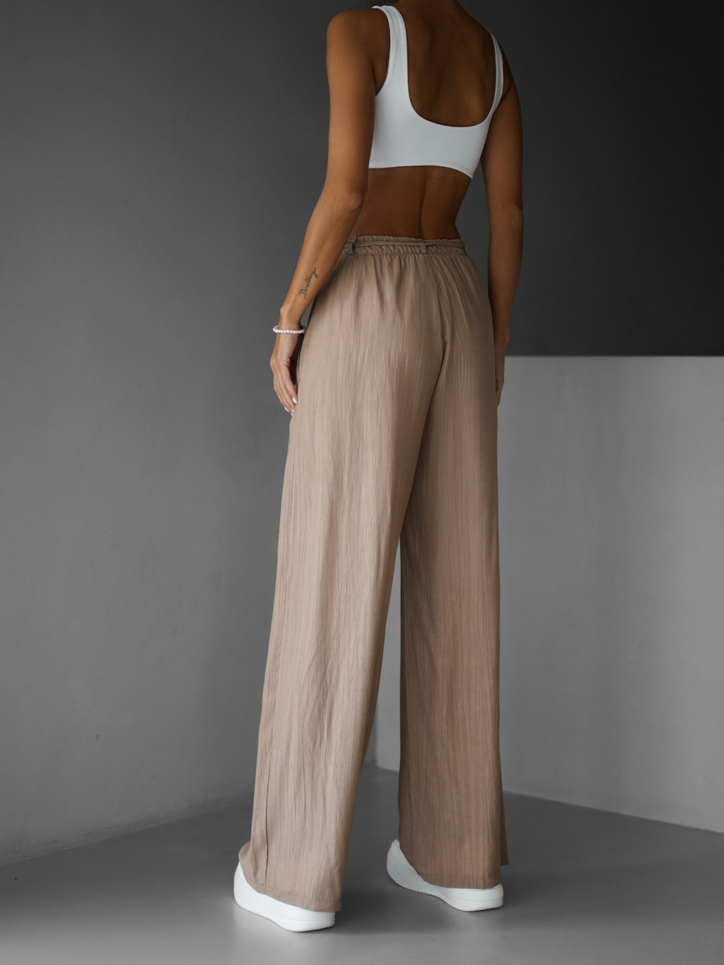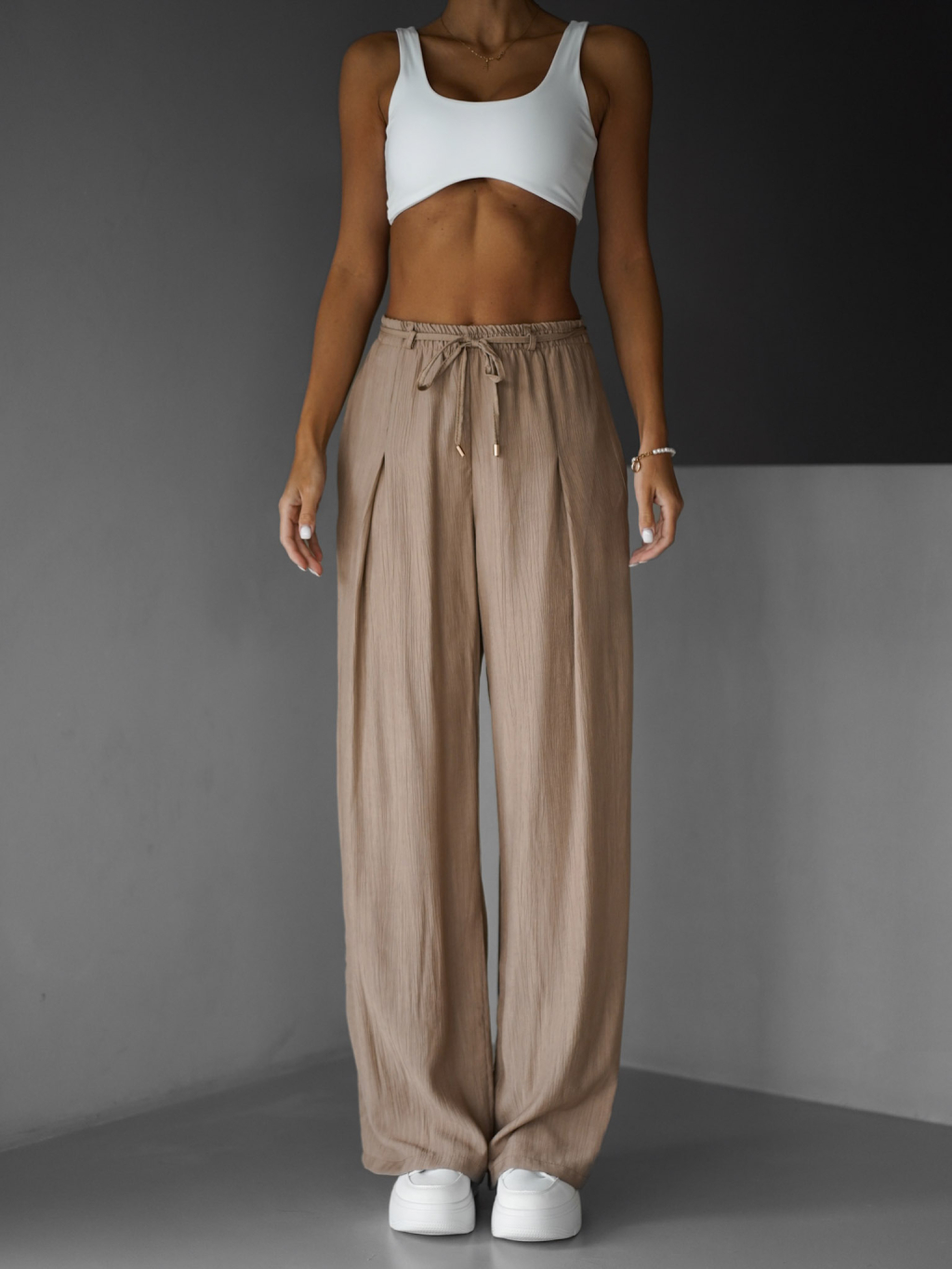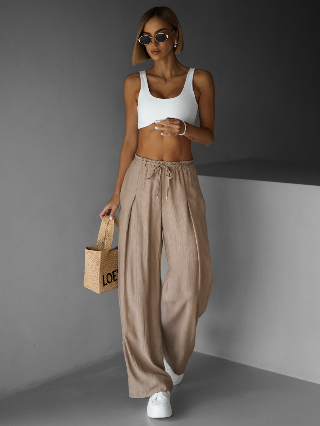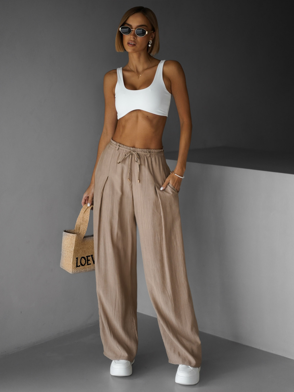 Hnědé lehké široké kalhoty LARYS se šňůrkou