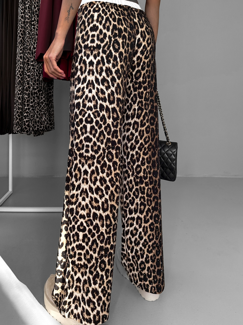 Leopardí elegantní kalhoty IMRISKA s kamínky