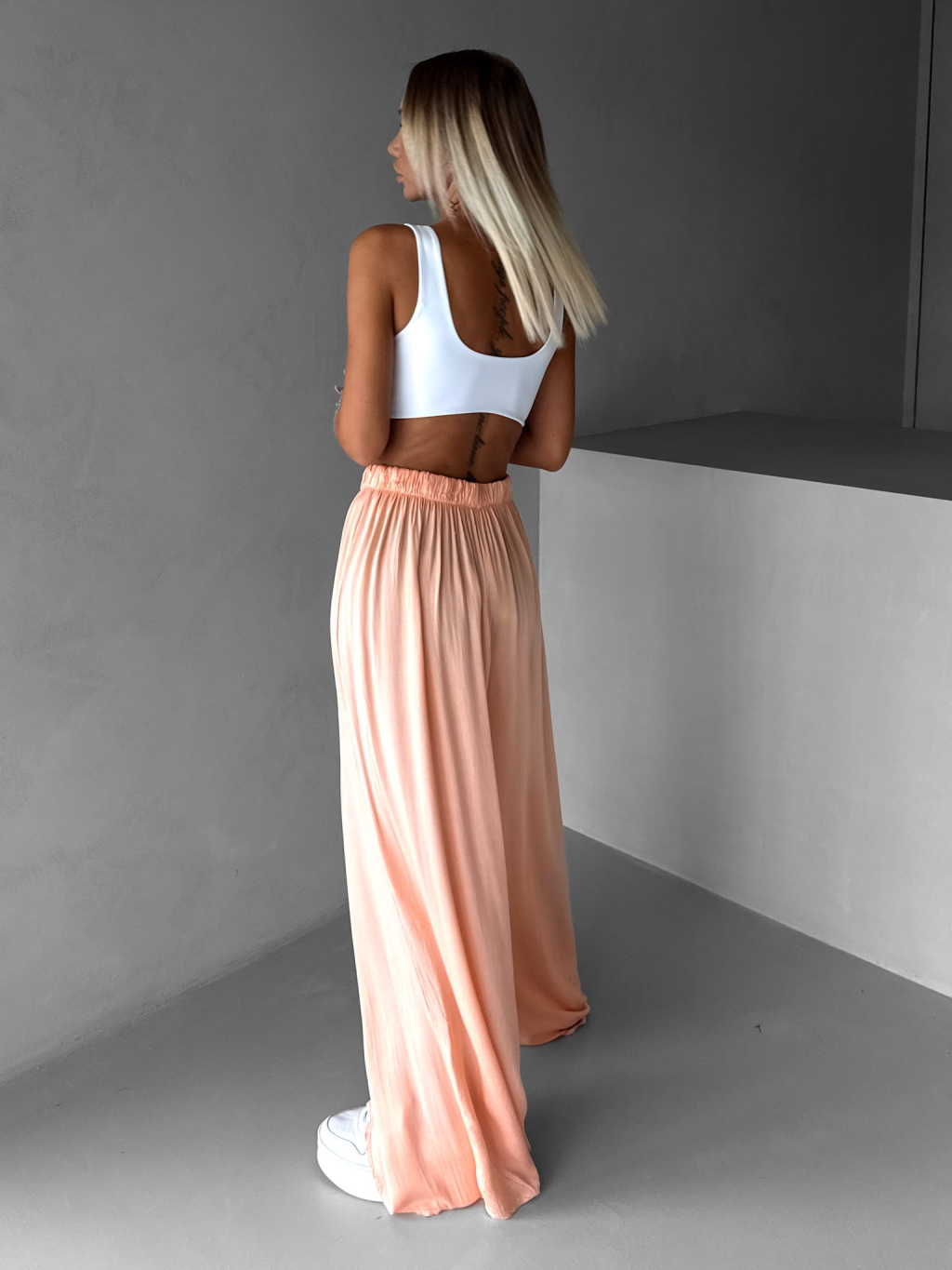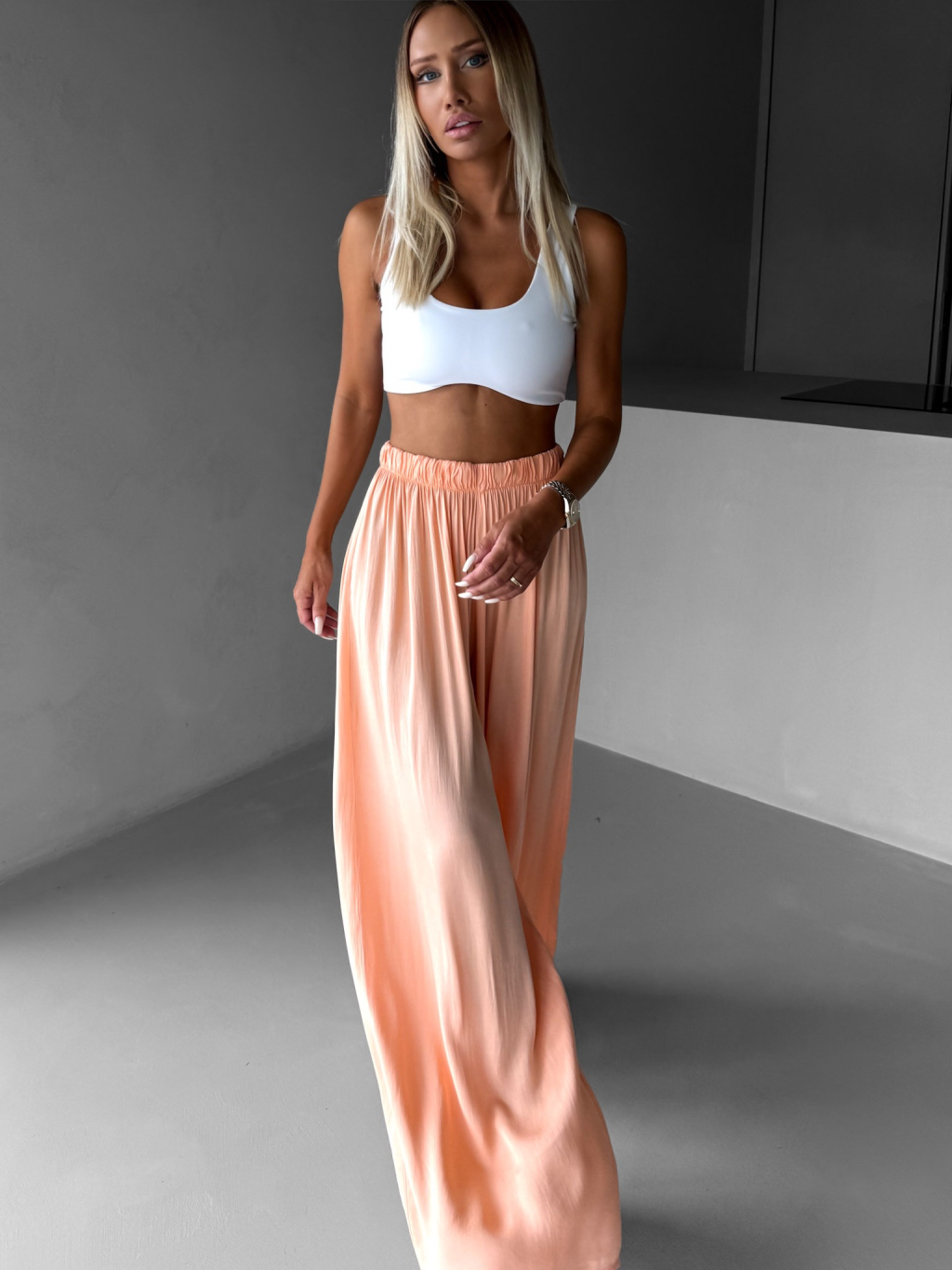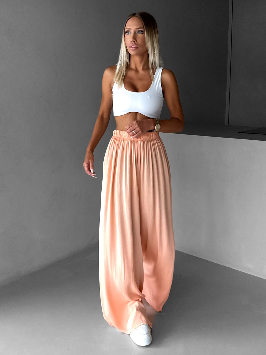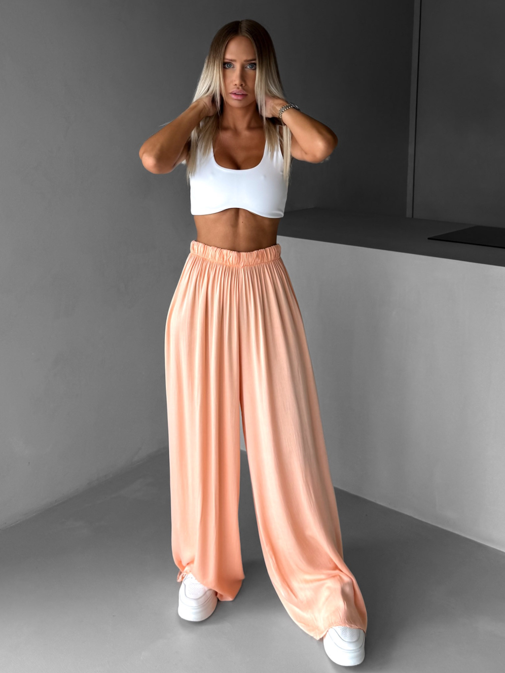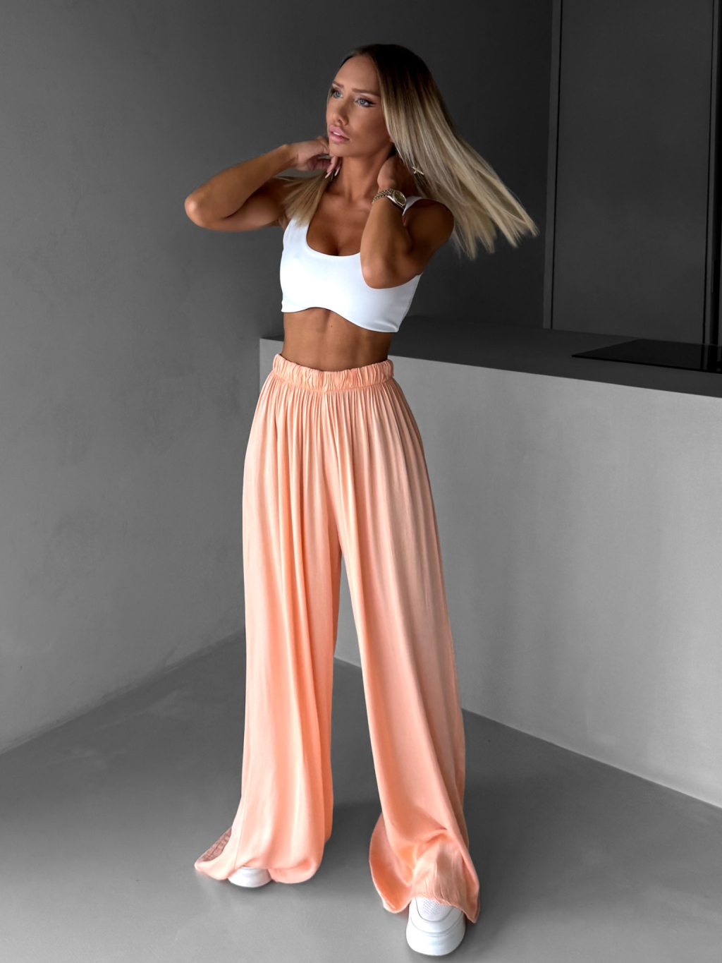 Meruňkové široké volné dlouhé kalhoty OLVIRA