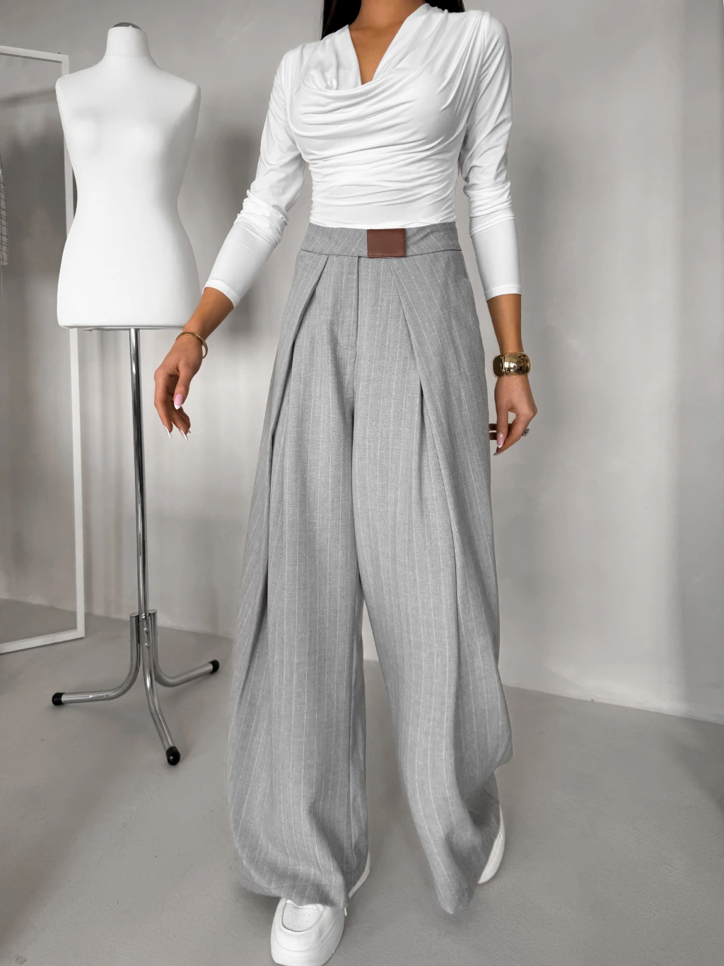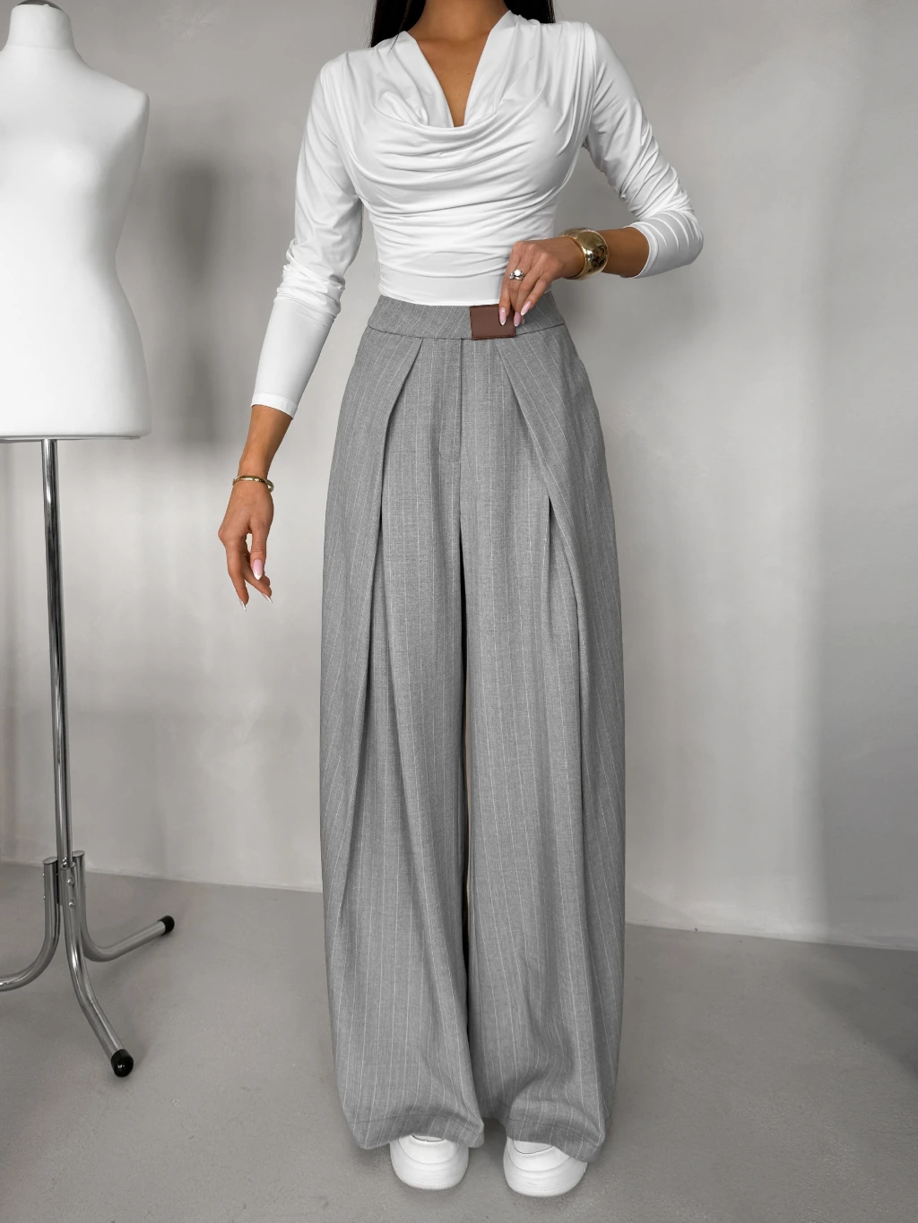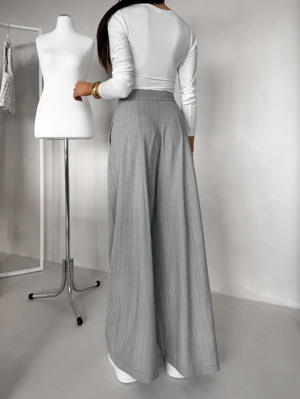 Šedé elegantní široké dlouhé kalhoty FENDRIS