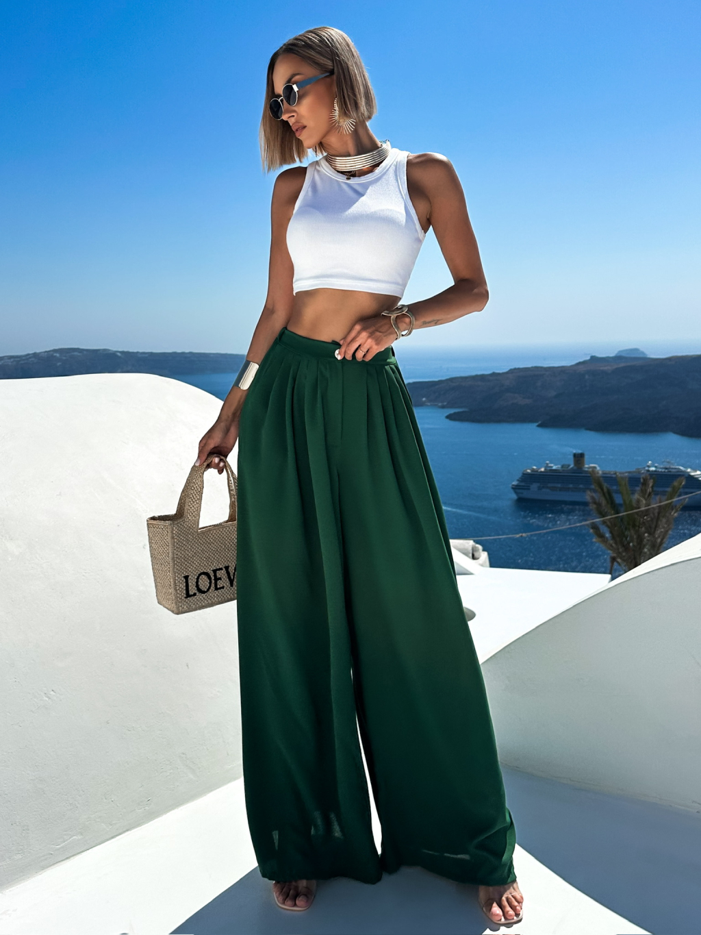 Smaragdové široké extra wide leg kalhoty VATIKA