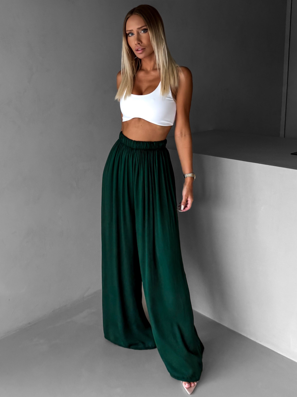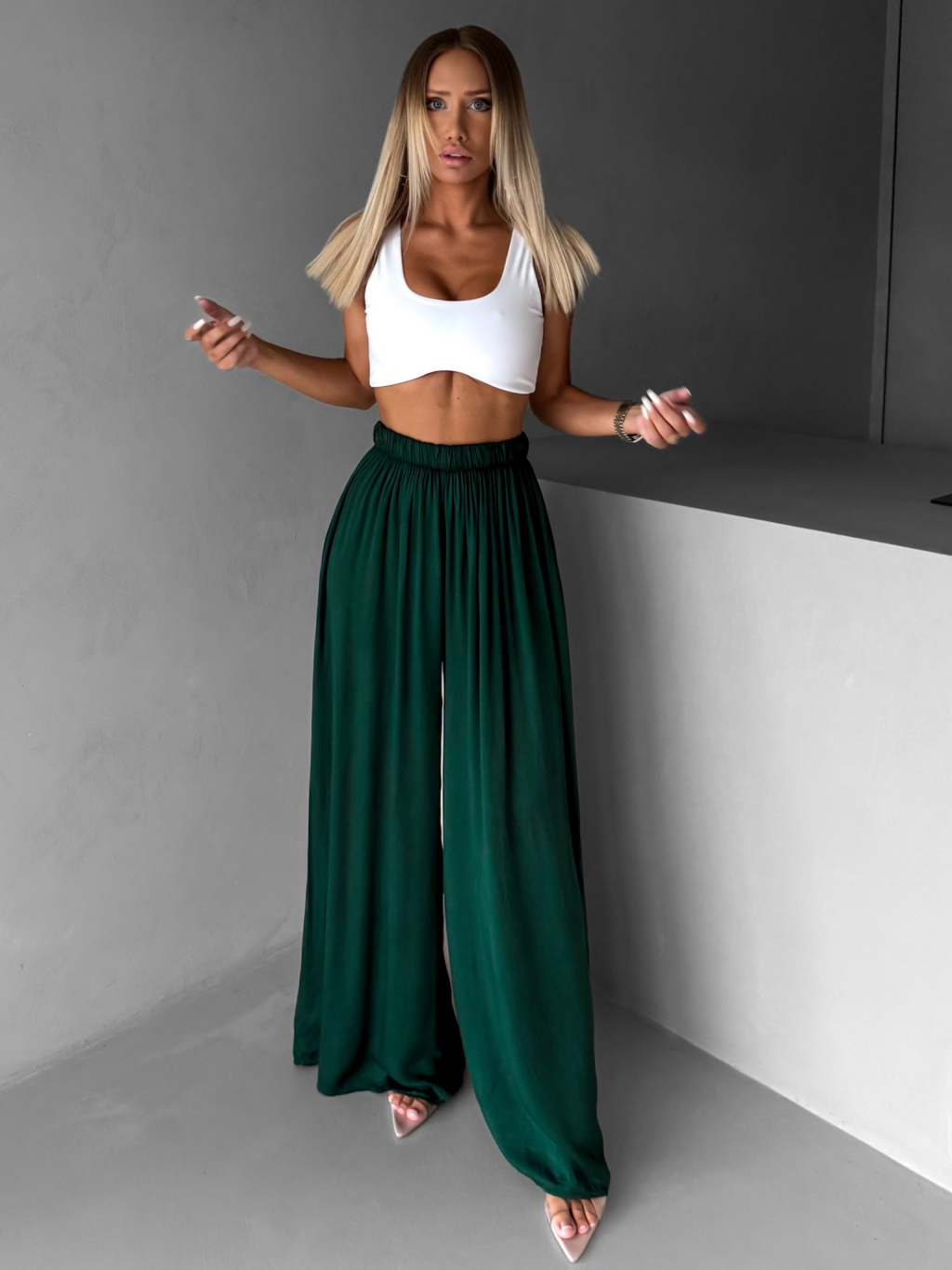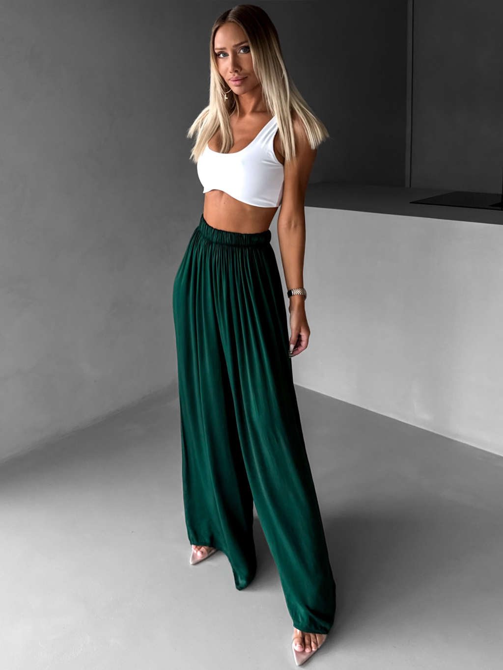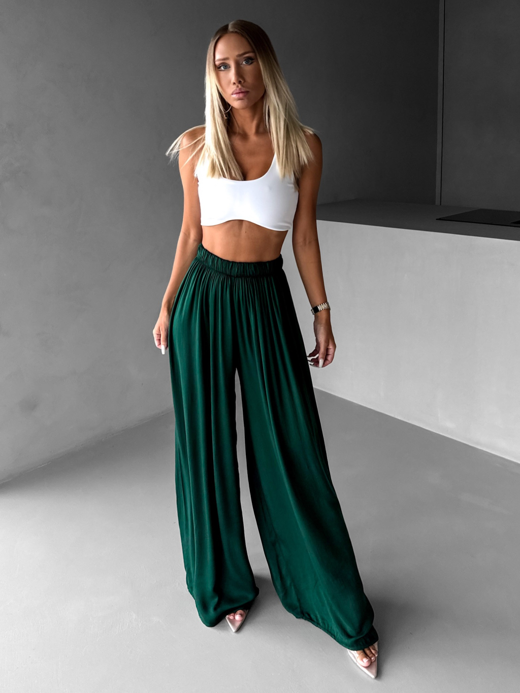 Smaragdové široké volné dlouhé kalhoty OLVIRA