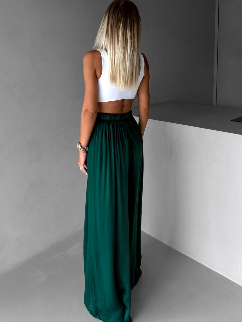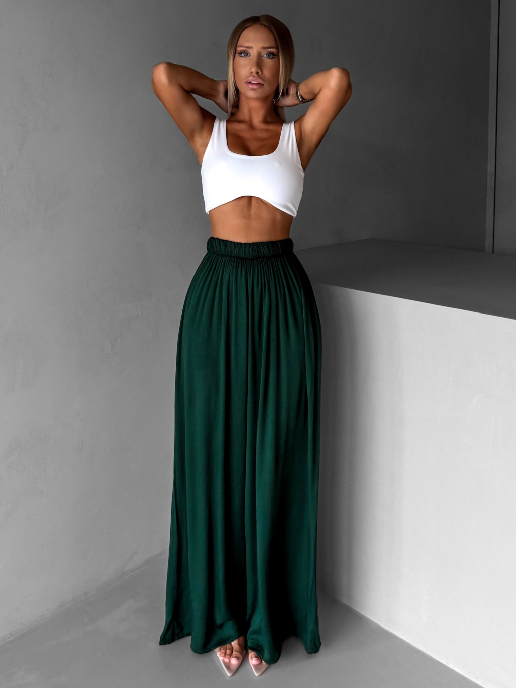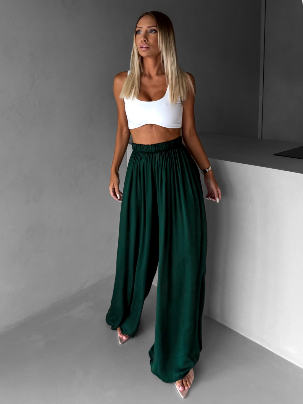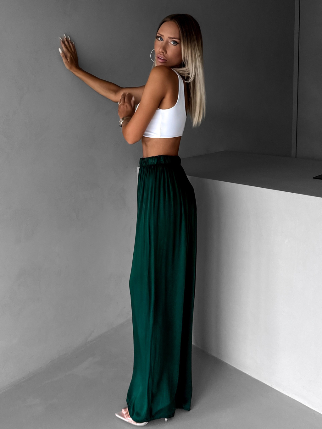 Smaragdové široké volné dlouhé kalhoty OLVIRA