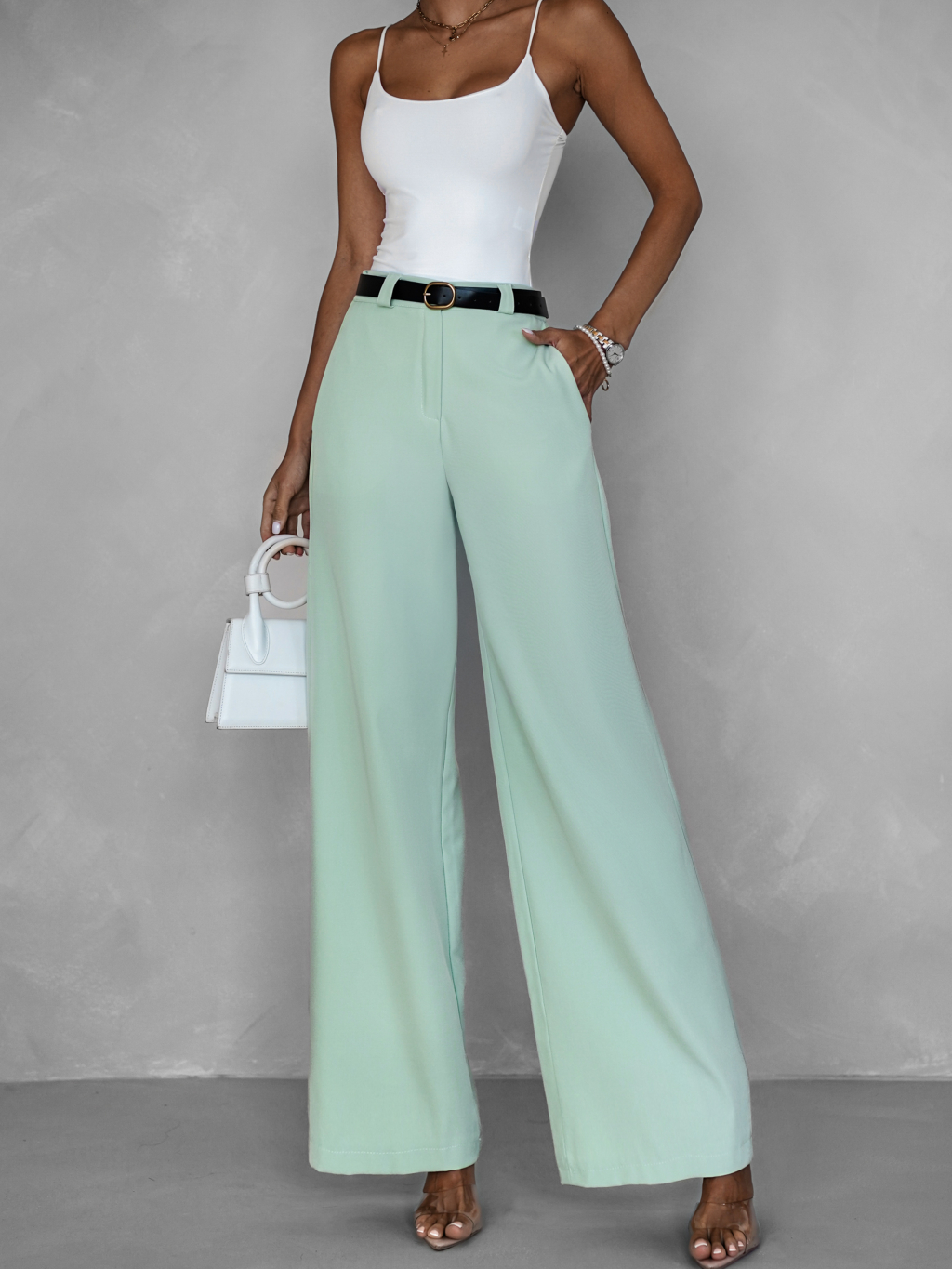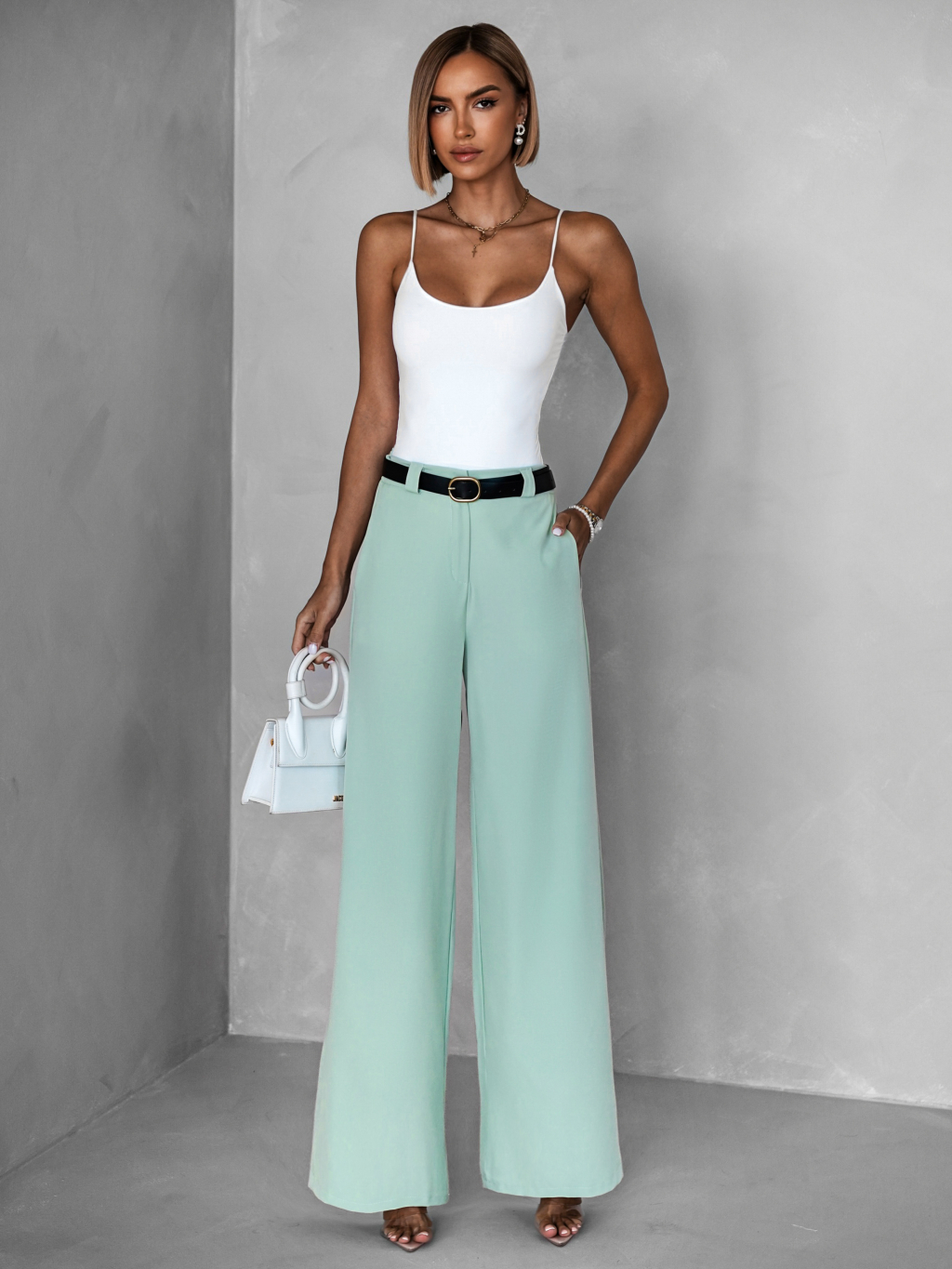 Světle zelené elegantní široké kalhoty ORWYLE