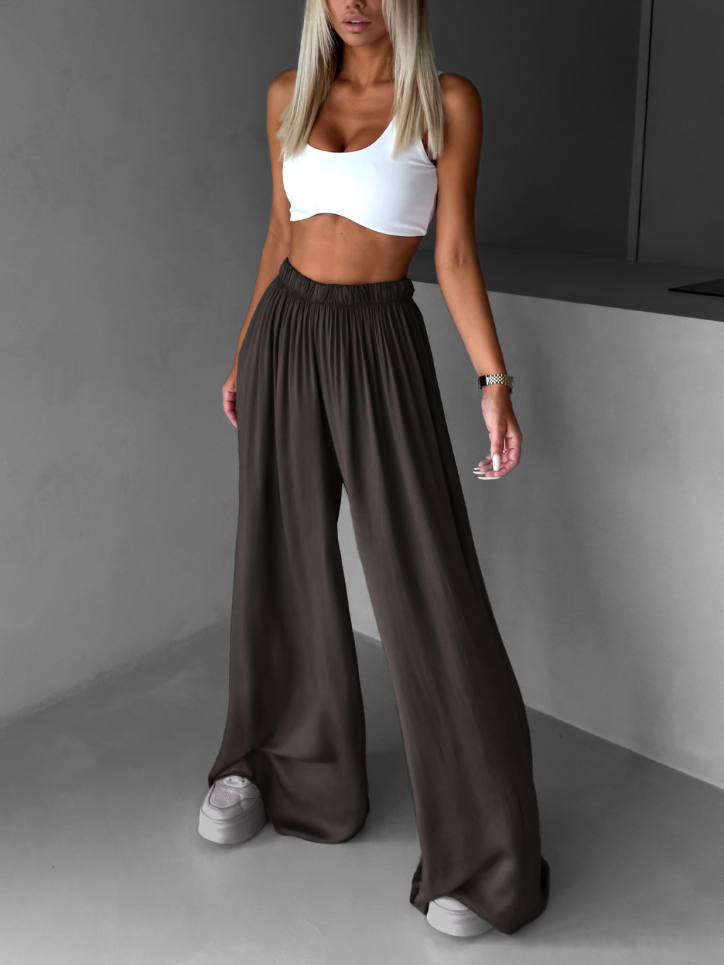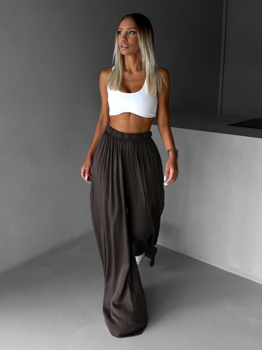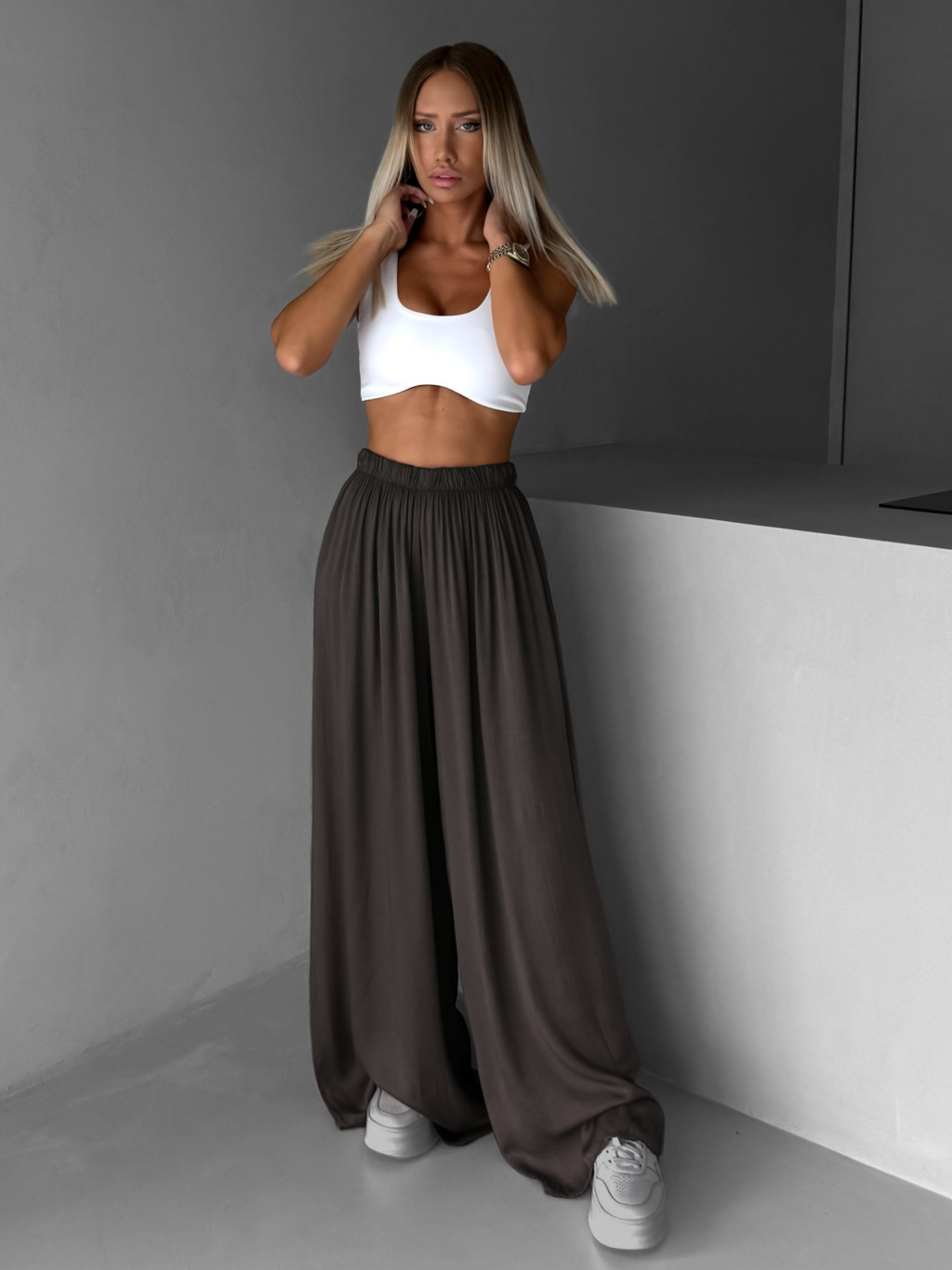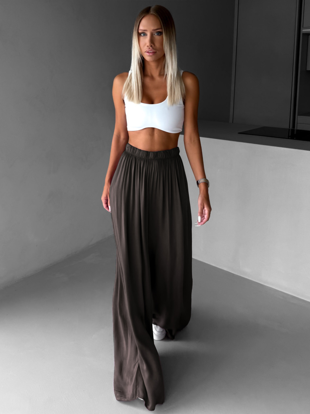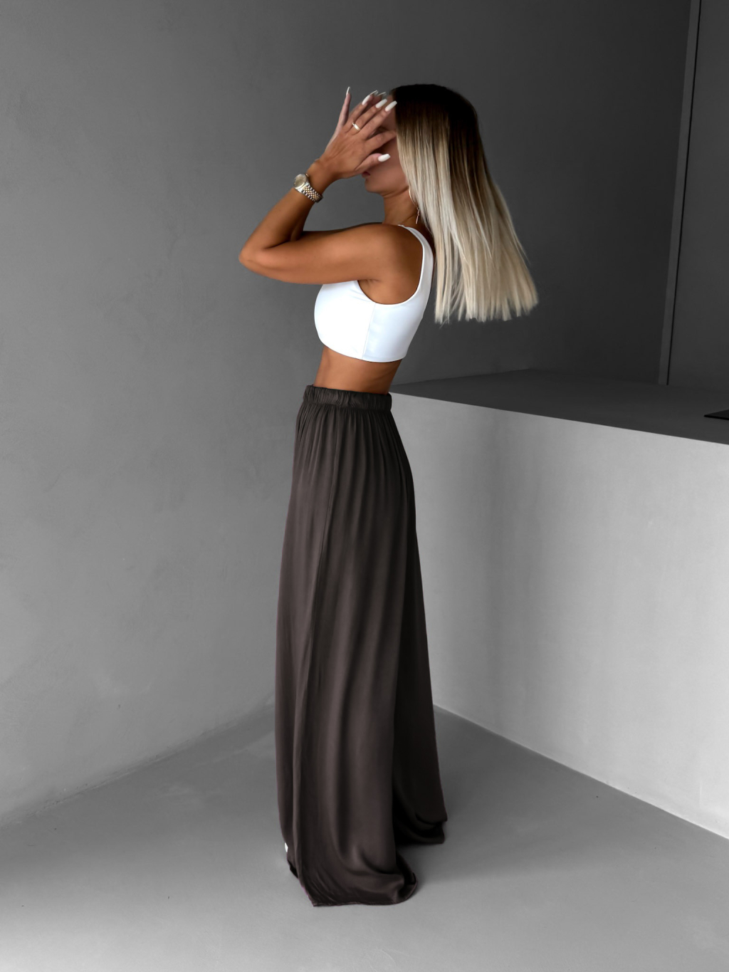 Tmavě hnědé široké volné dlouhé kalhoty OLVIRA