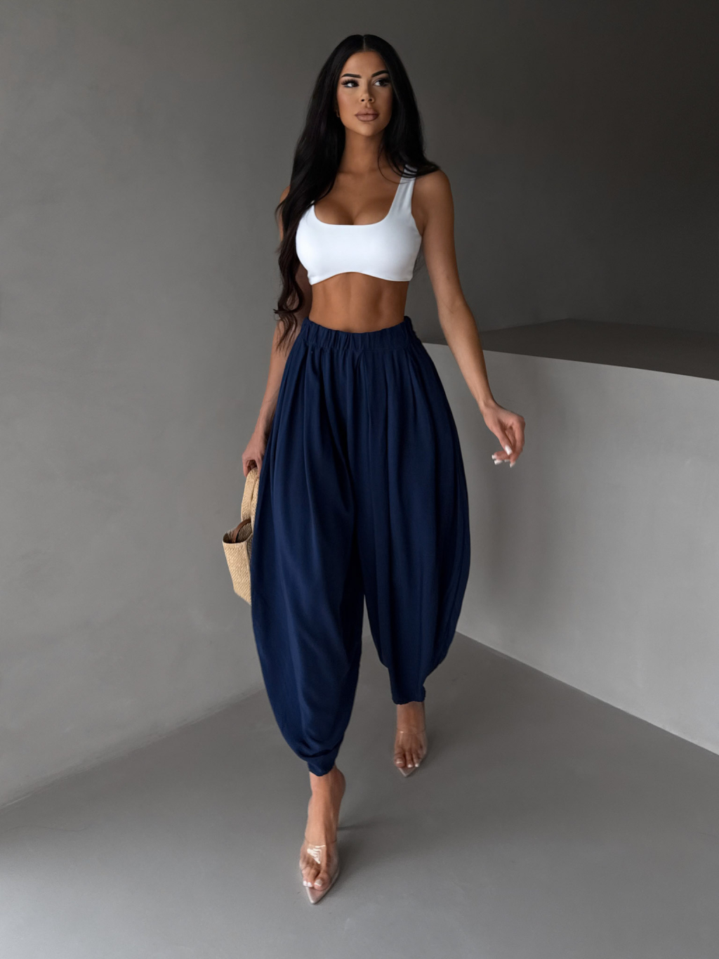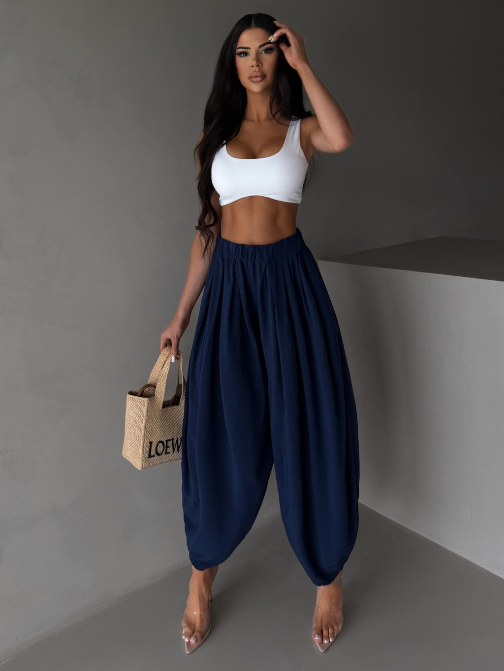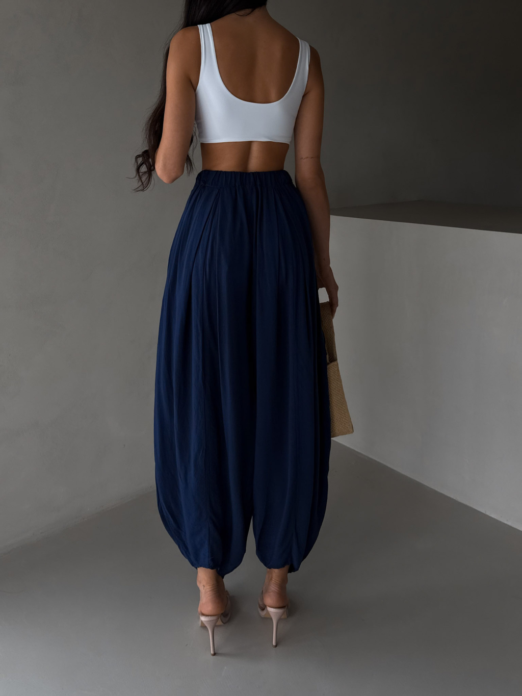 Tmavě modré široké harémové vzdušné kalhoty MYRAEL