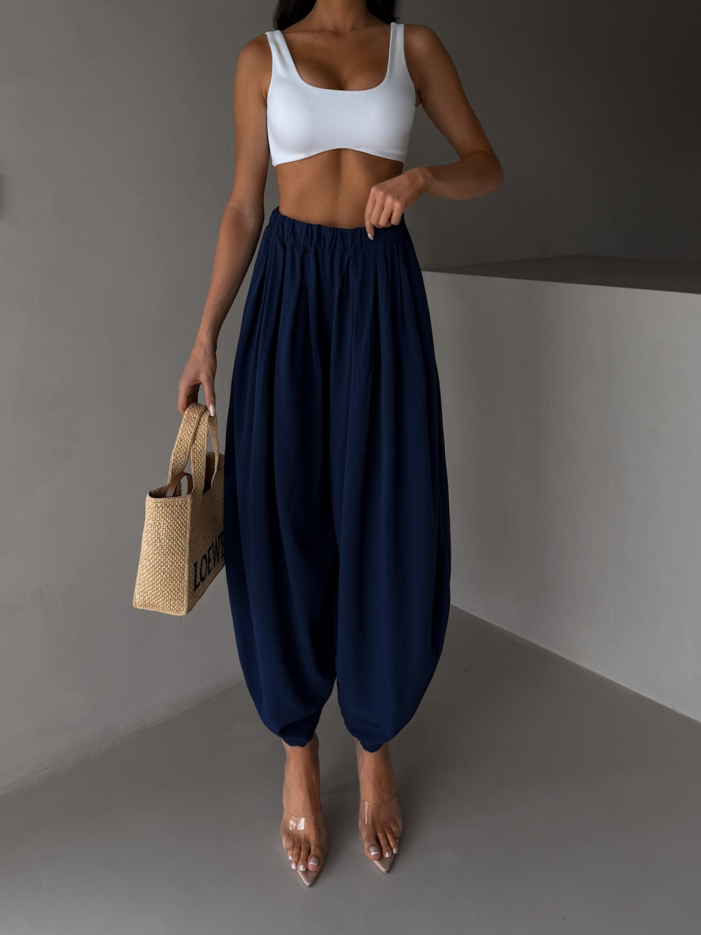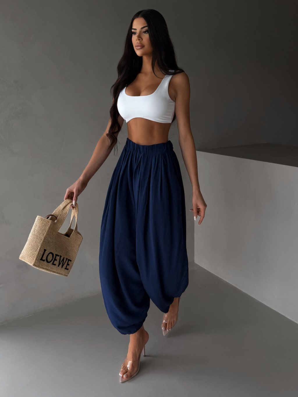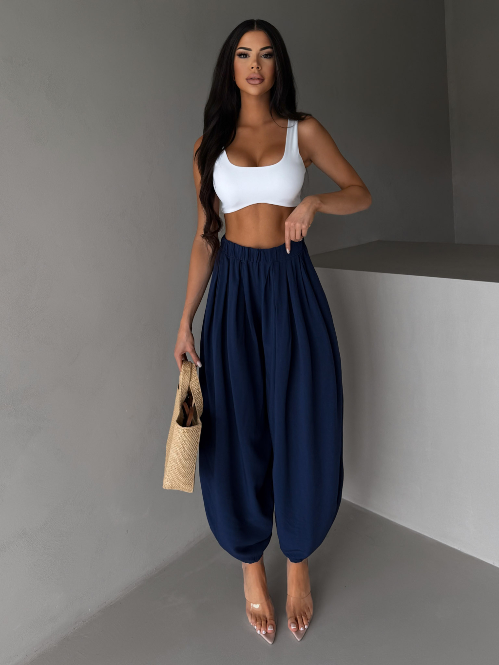 Tmavě modré široké harémové vzdušné kalhoty MYRAEL