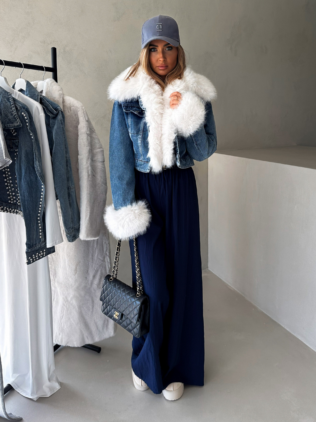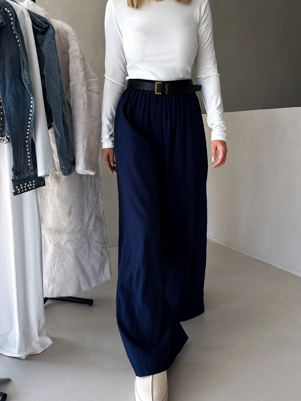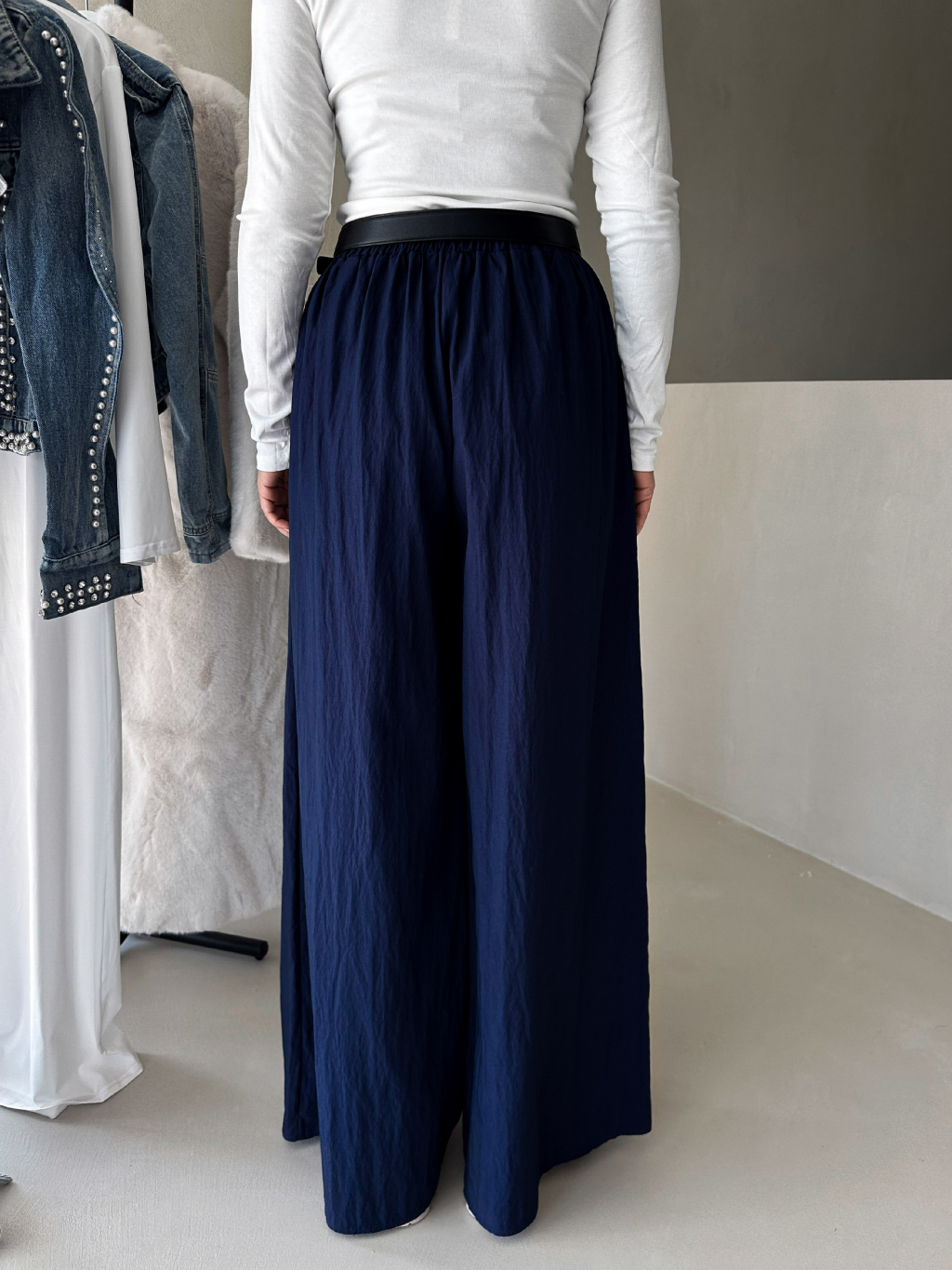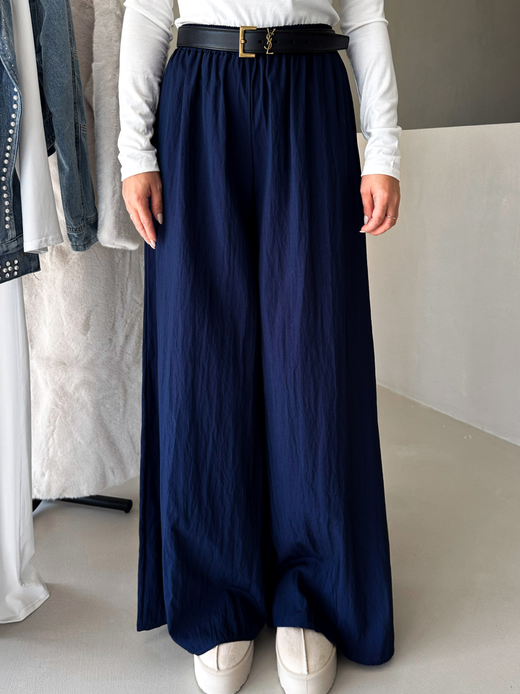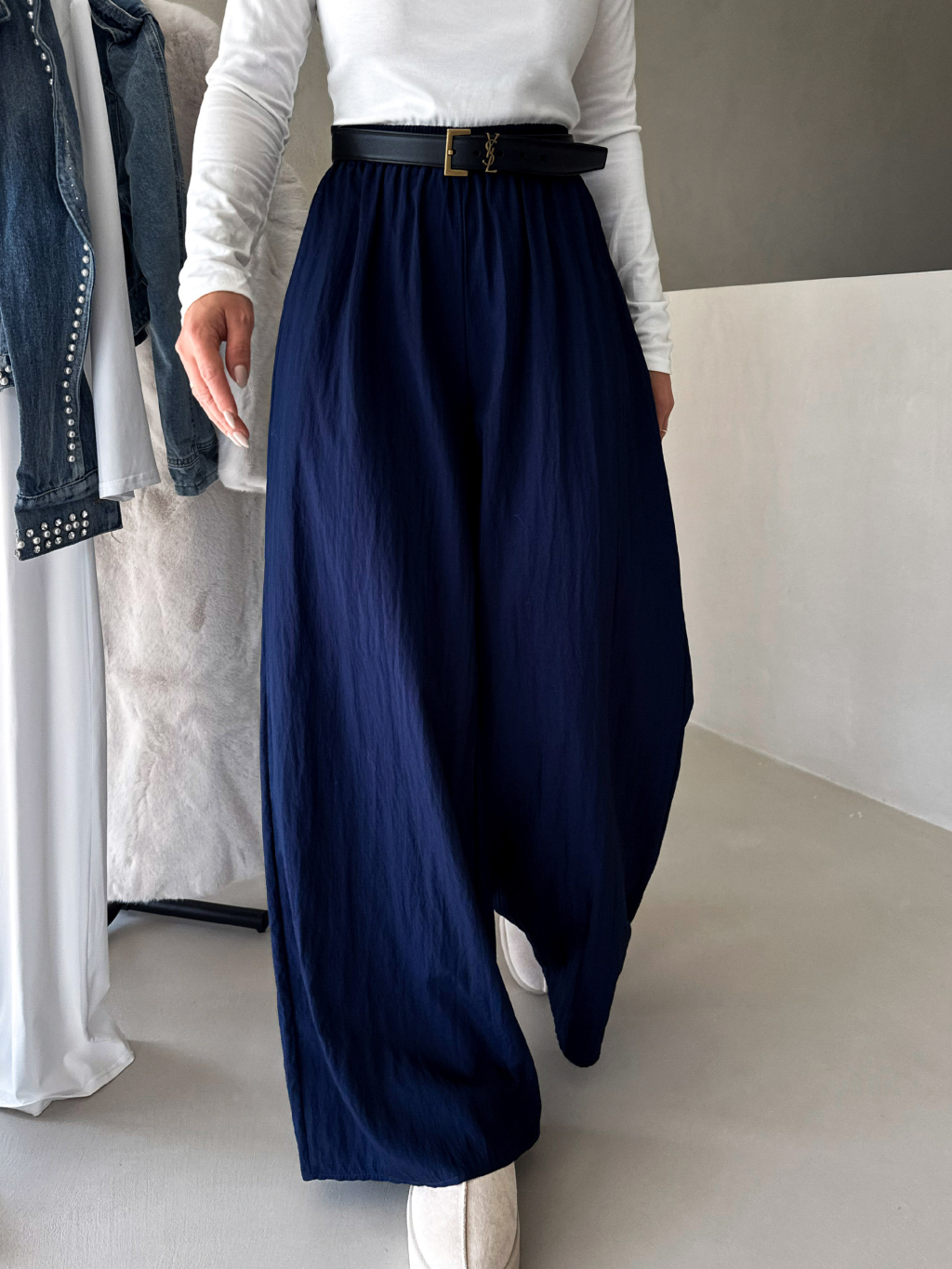 Tmavě modré široké pohodlné kalhoty ROCKEFEN