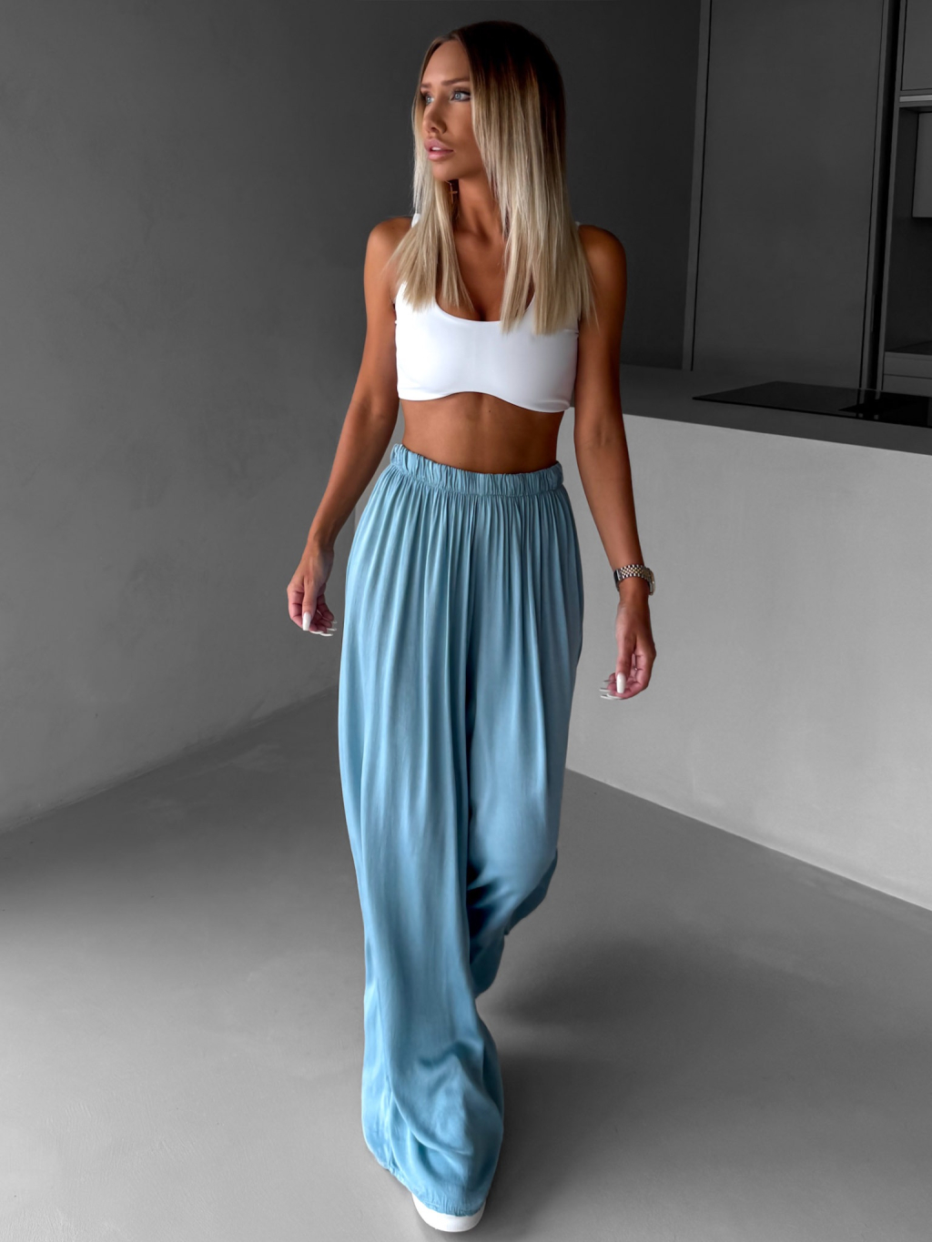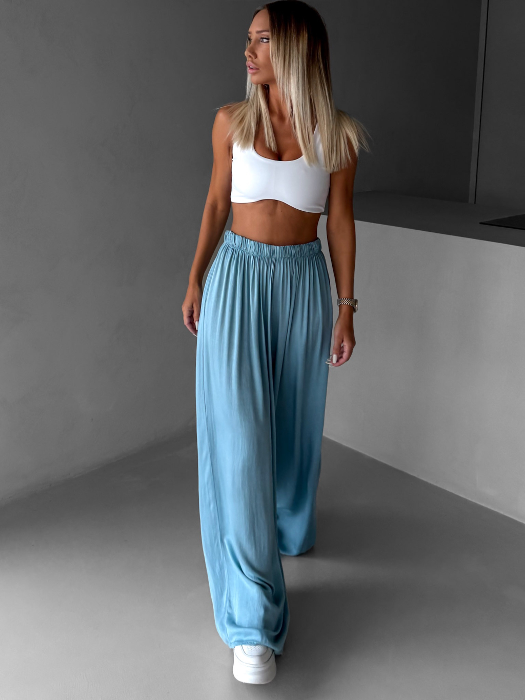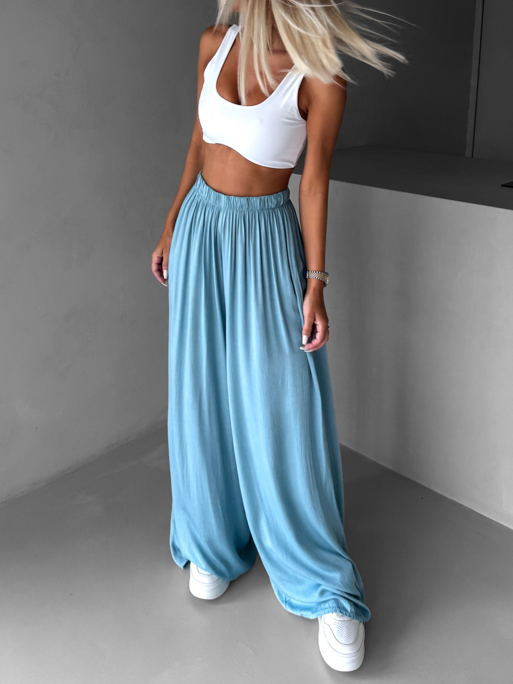 Tyrkysové široké volné dlouhé kalhoty OLVIRA