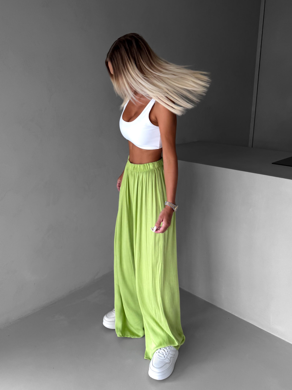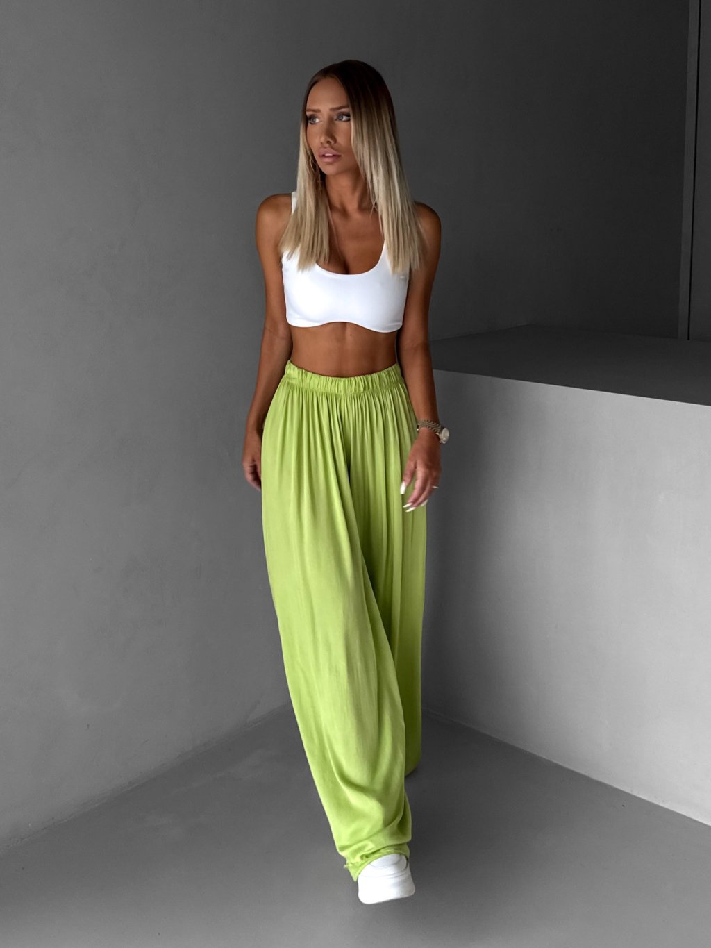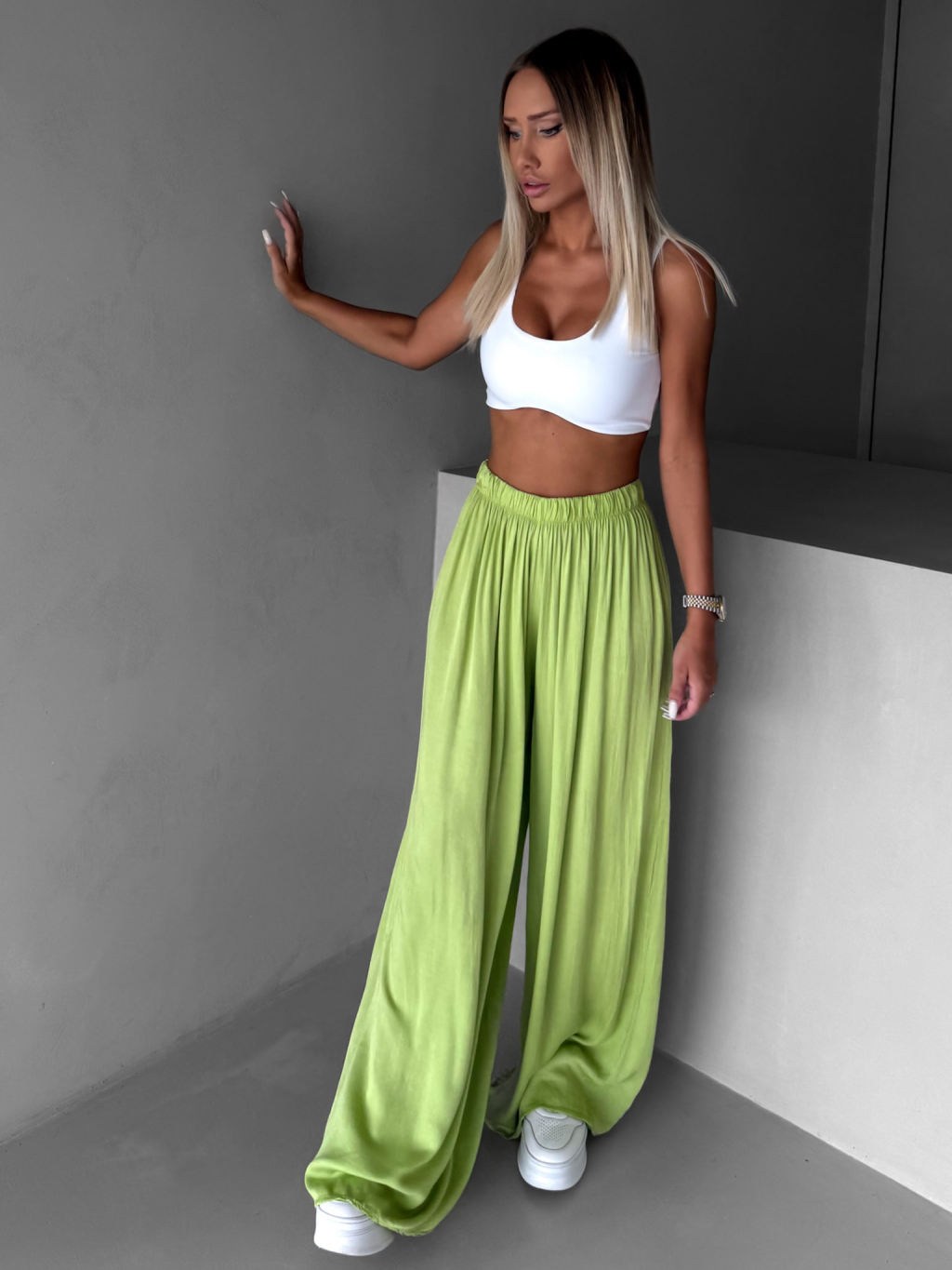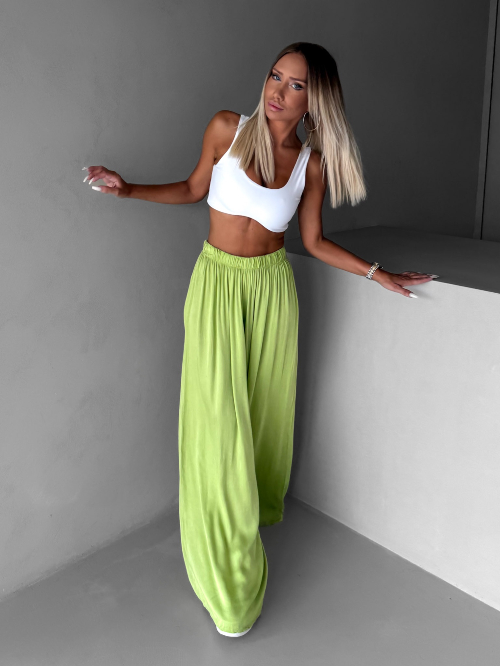 Zelené široké volné dlouhé kalhoty OLVIRA